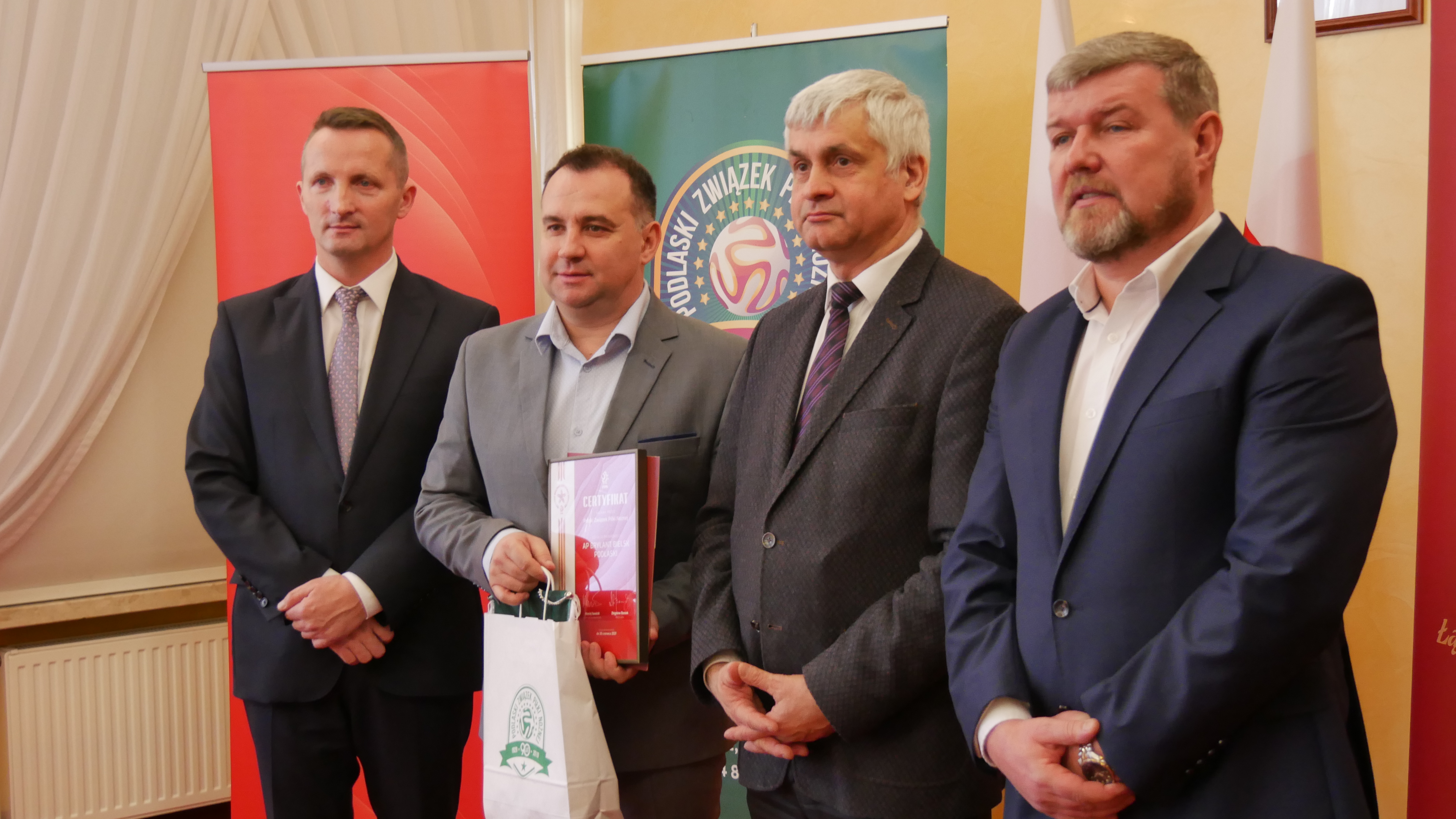 Wręczenia dokonał wojewoda podlaski Bohdan Paszkowski oraz prezes Podlaskiego Związku Piłki Nożnej Sławomir Kopczewski. W sumie w naszym regionie certyfikat uzyskały 22 szkółki, które przeszły pomyślnie proces zakończony przyznaniem gwiazdki. Dzięki współpracy Ministerstwa Sportu i Turystyki z PZPN możliwe było wdrożenie projektu.