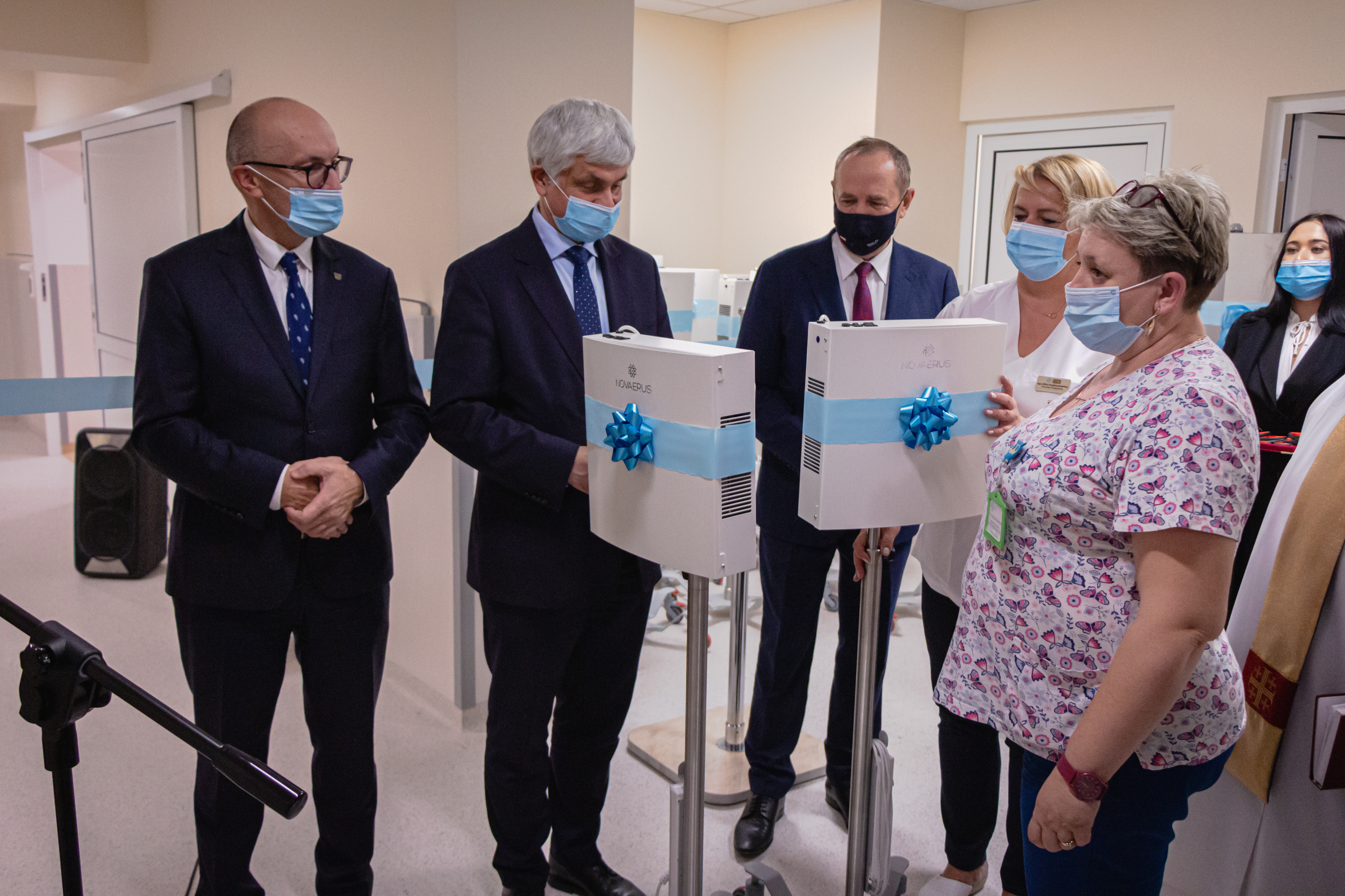 Na oddziałach covidowych pojawią się nowe aparaty do intensywnej tlenoterapii, dozowniki na tlen, przyłóżkowy aparat RTG, respiratory, kardiomonitory oraz urządzenia do dekontaminacji powietrza. Szpital otrzymał też urządzenie wyposażone w lampy UVC służące do dezynfekcji pomieszczeń. Każdy oddział otrzymał również urządzenia do dekontaminacji powietrza oraz specjalistyczne materace przeciwodleżynowe.