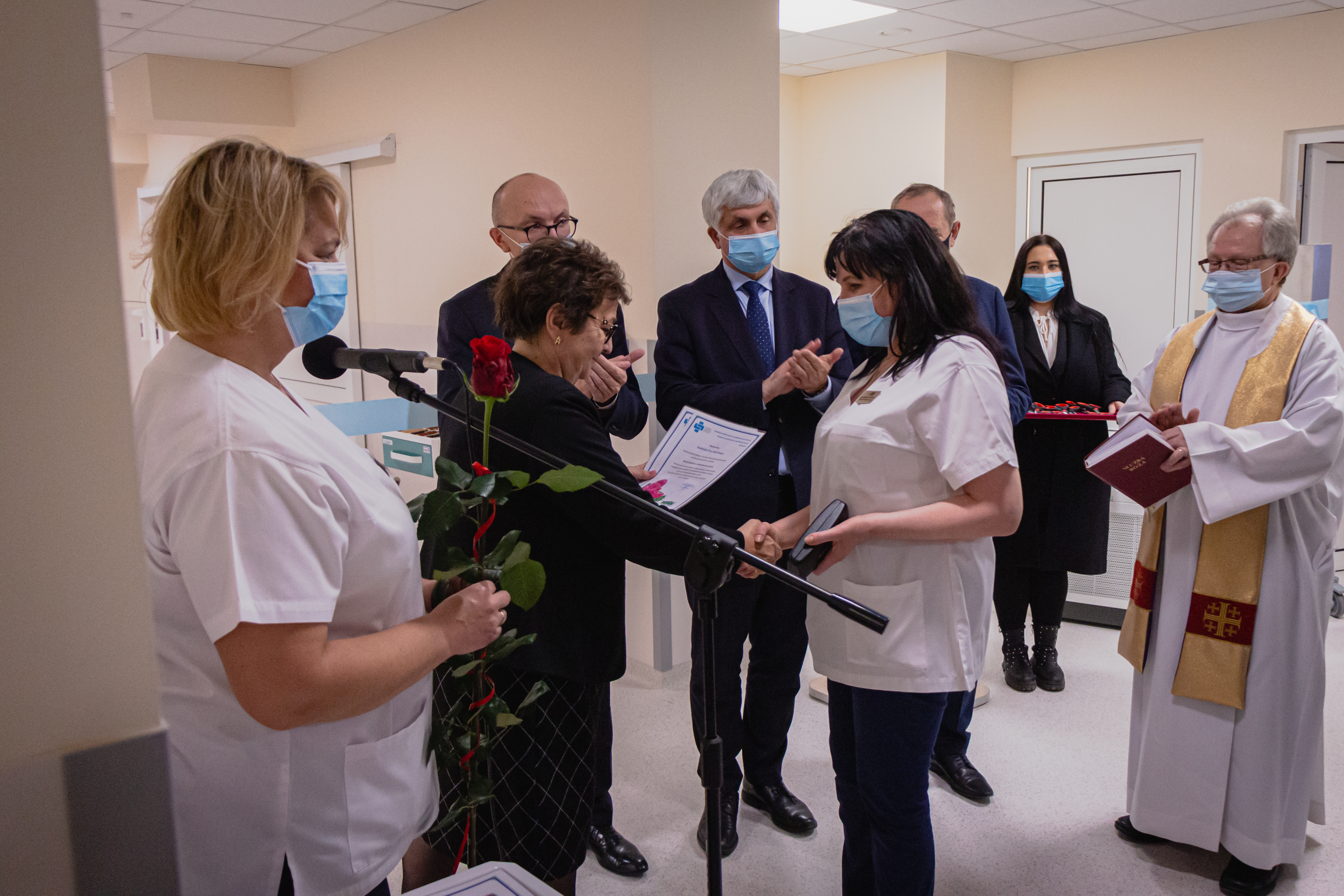 Podczas uroczystości dyrekcja szpitala serdecznie pogratulowała oraz wręczyła dyplomy lekarzom i pielęgniarkom, którzy uzyskali specjalizacje, zaś zaproszeni goście przekazali szpitalowi sprzęt medyczny.