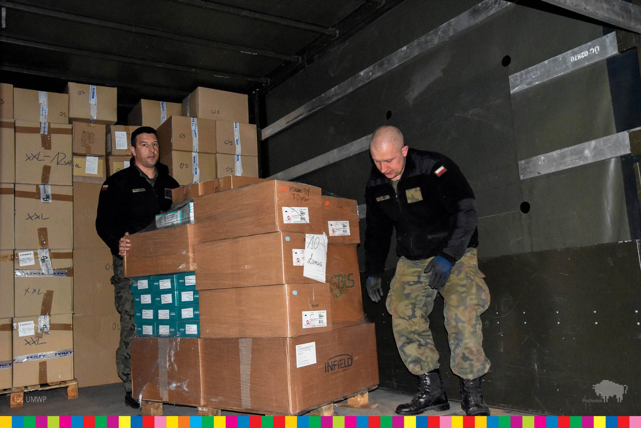 Do łomżyńskiego szpitala trafiły m.in: kombinezony izolacyjne (ok.1 tys.), maski, półmaski, okulary typu gogle, specjalistyczne rękawice. Sprzęt przywiozła do Łomży wojskowa ciężarówka z Opola. Będzie on sukcesywnie dowożony i uzupełniany.