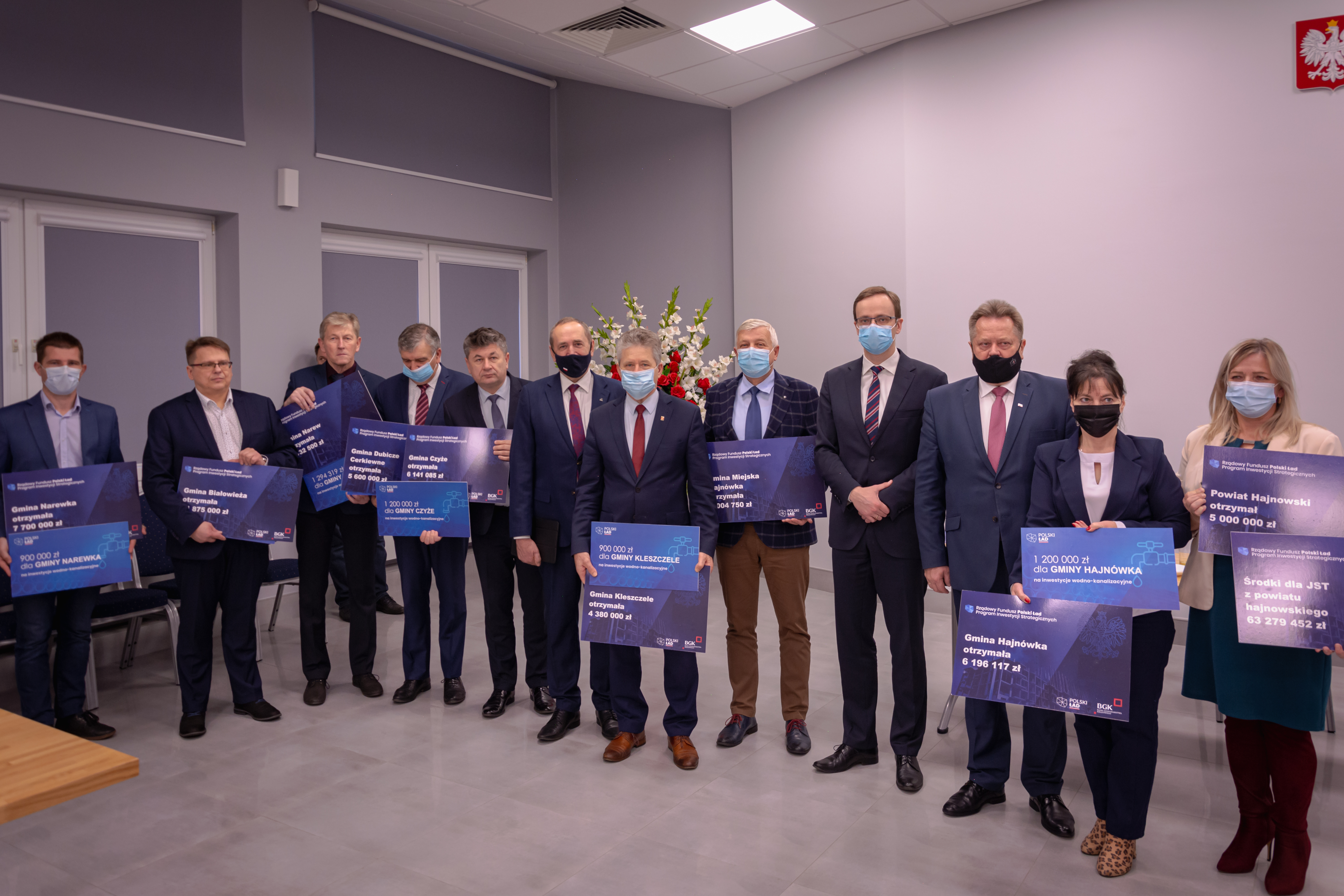 Dodatkowo samorządowcy z obu powiatów odebrali czeki na cele związane z inwestycjami wodno-kanalizacyjnymi - subwencja zostanie zwiększona o ponad 20 mln zł.