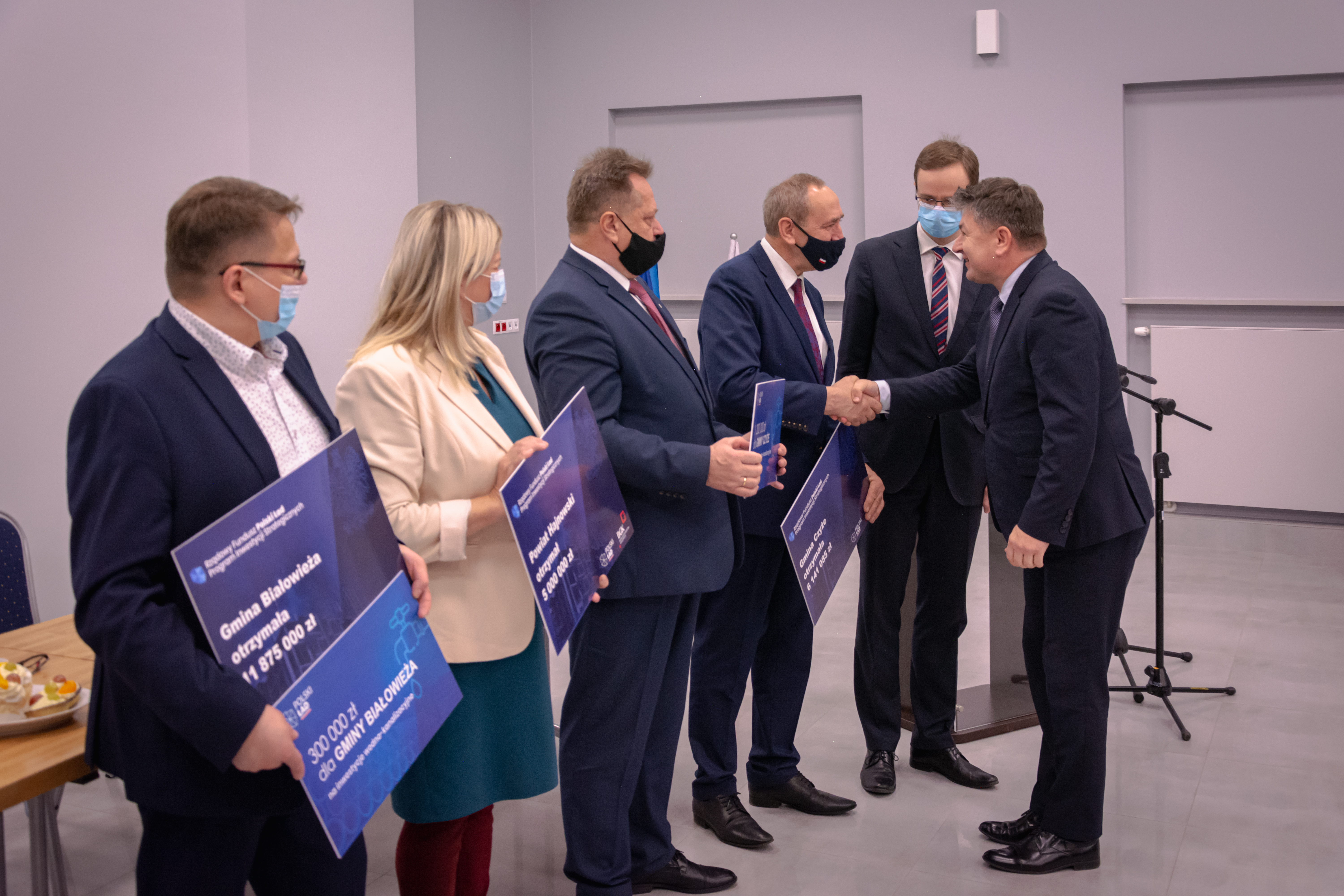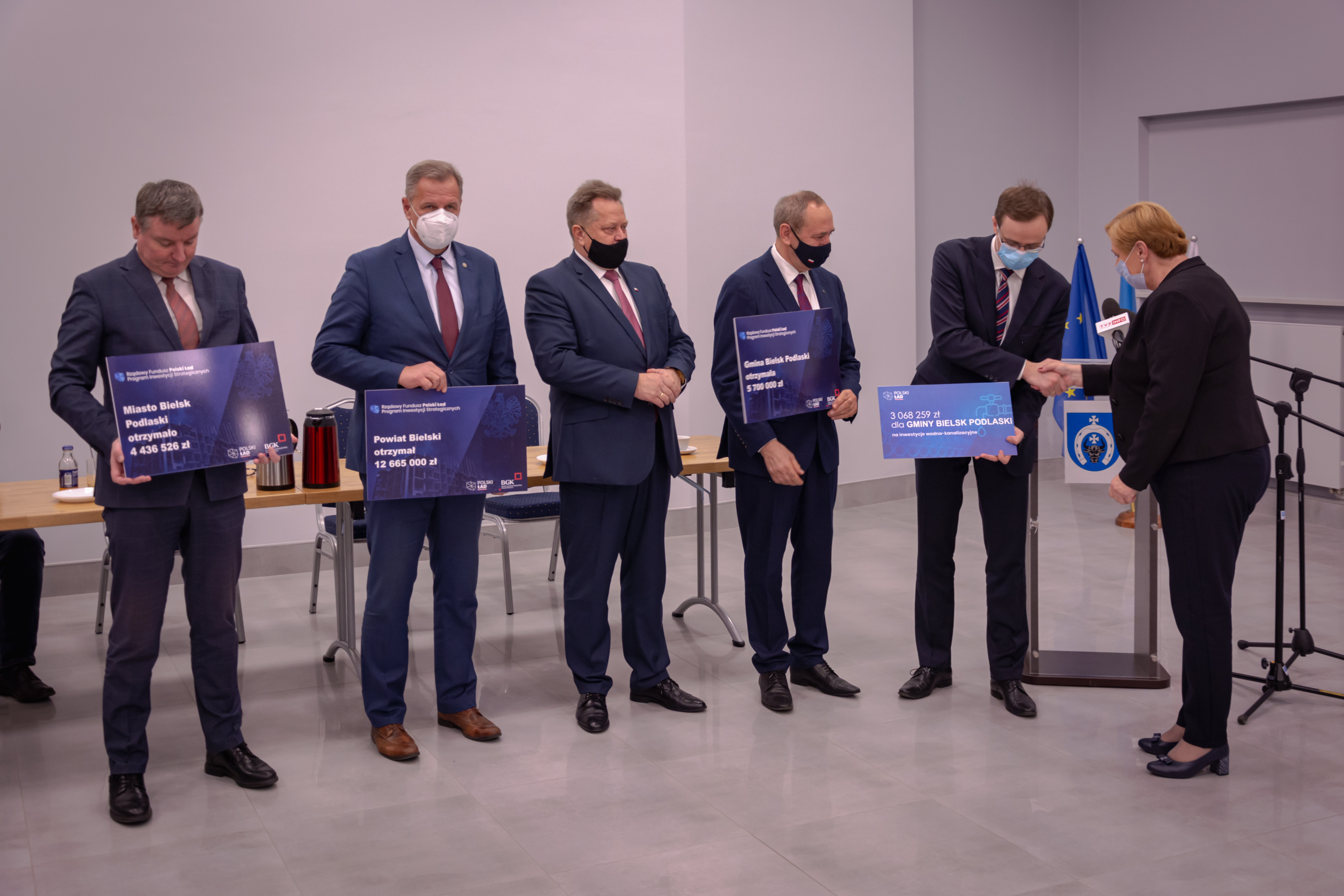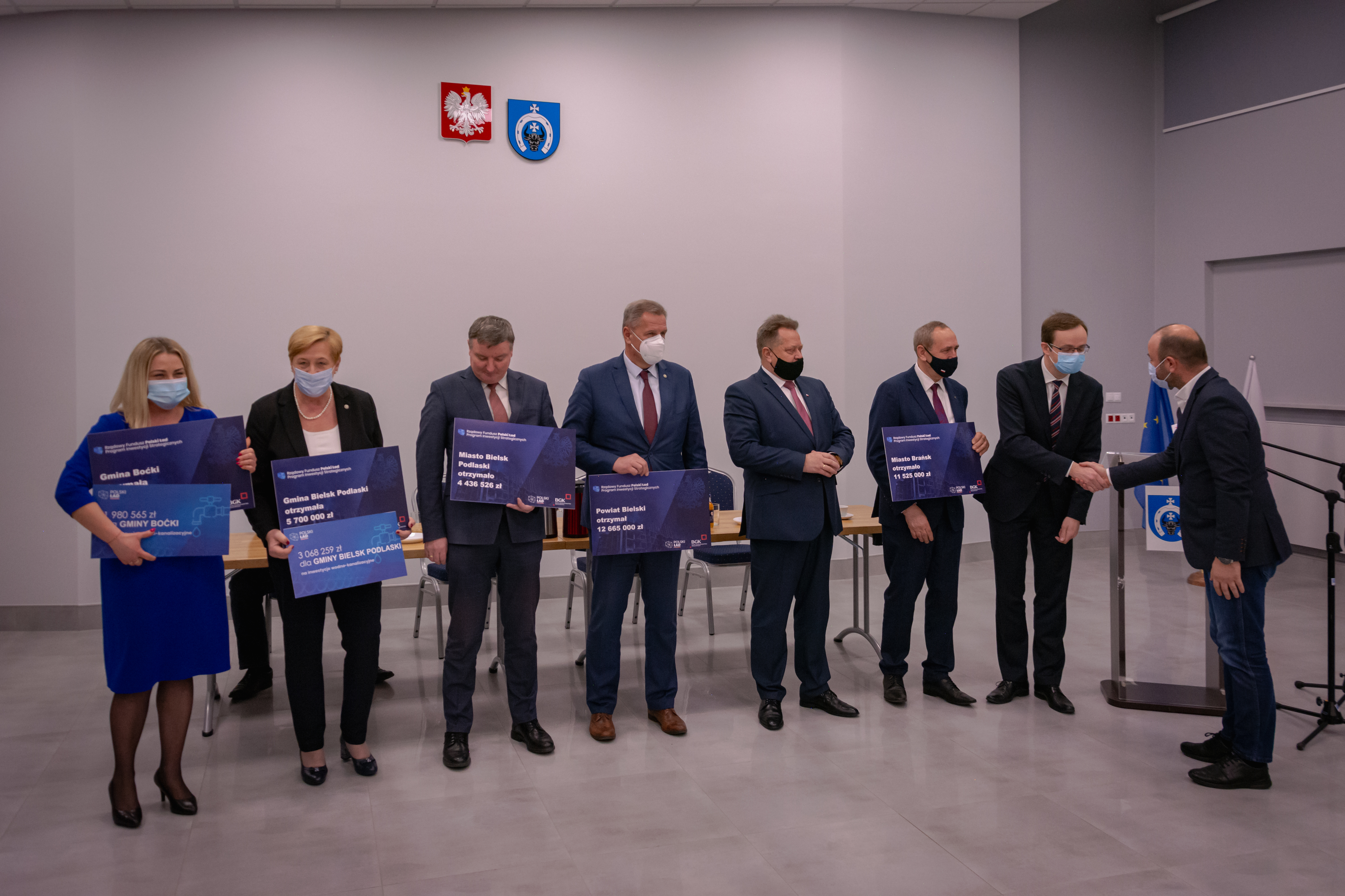 Powiat Bielski - przebudowa i rozbudowa budynku internatu przy ul. Hołowieskiej 18 w Bielsku Podlaskim wraz z zapleczami i Izbą Pamięci - 8 457 500 zł, rozbudowa i przebudowa budynku użyteczności publicznej przy ul. Widowskiej 1 w Bielsku Podlaskim - 4 207 500 zł,