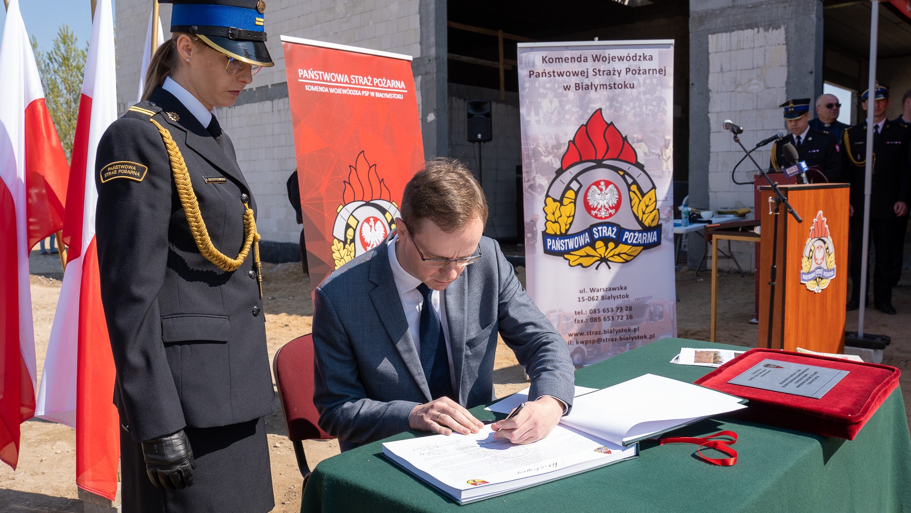 Do 2025 roku w Białymstoku powstanie nowa jednostka Państwowej Straży Pożarnej. W poniedziałek (24.04) przy ulicy Plażowej uroczyście wmurowano akt erekcyjny i kamień węgielny w jej budowę. Pieniądze na inwestycję pochodzą z "Programu modernizacji Policji, Straży Granicznej, Państwowej Straży Pożarnej i Służby Ochrony Państwa na lata 2022-2025". W wydarzeniu wzięli udział wojewoda podlaski Bohdan Paszkowski oraz wicewojewoda Tomasz Madras.