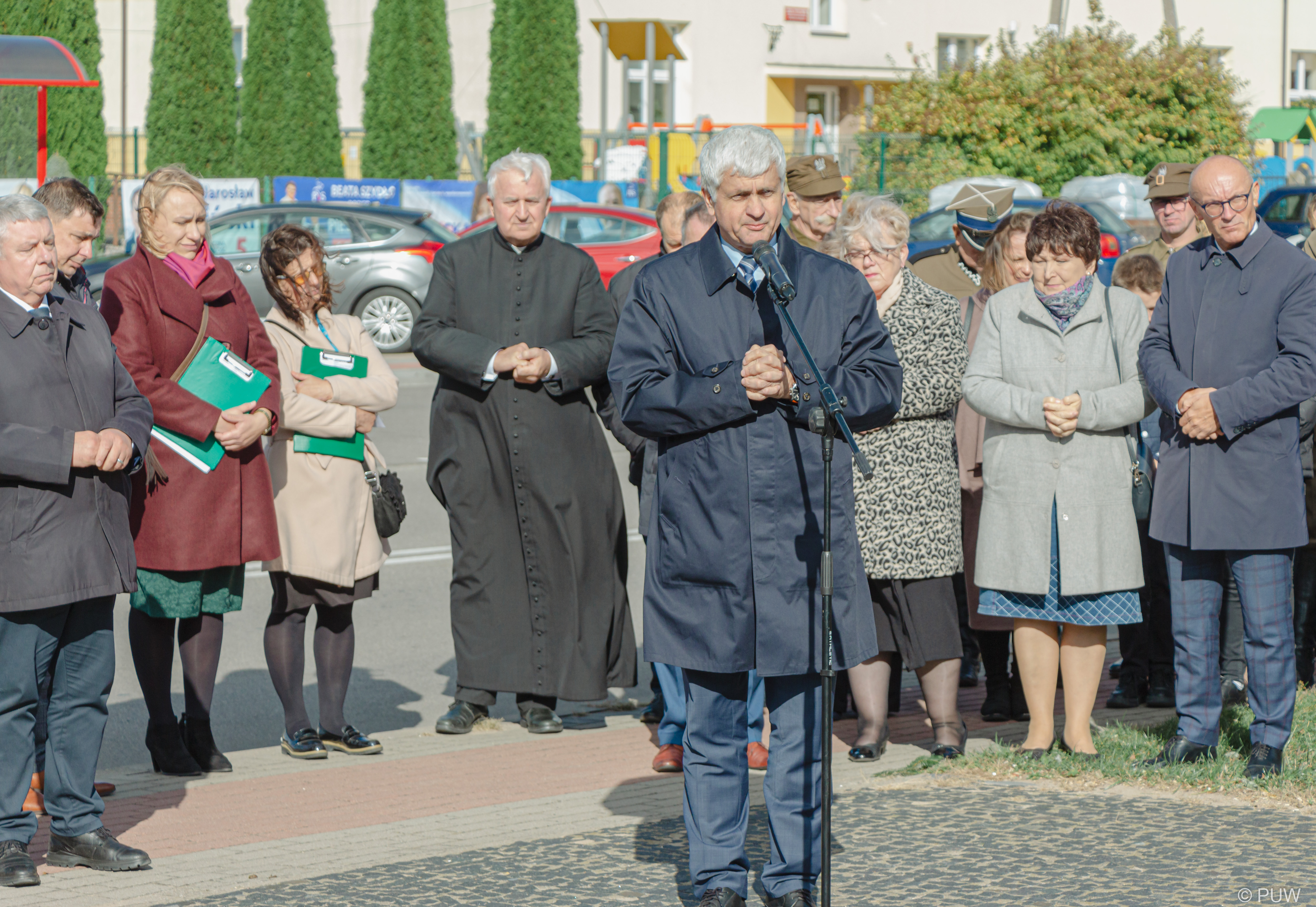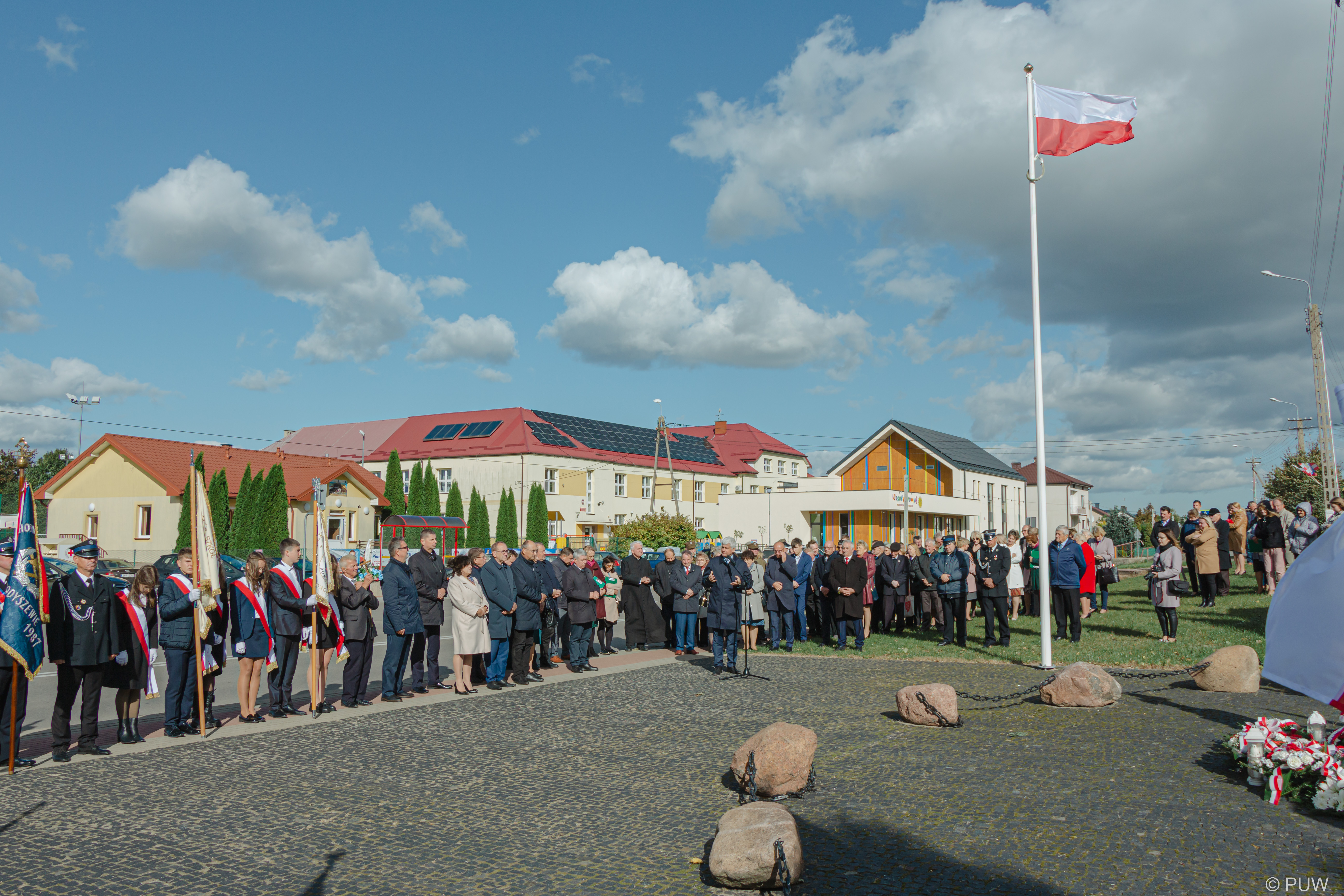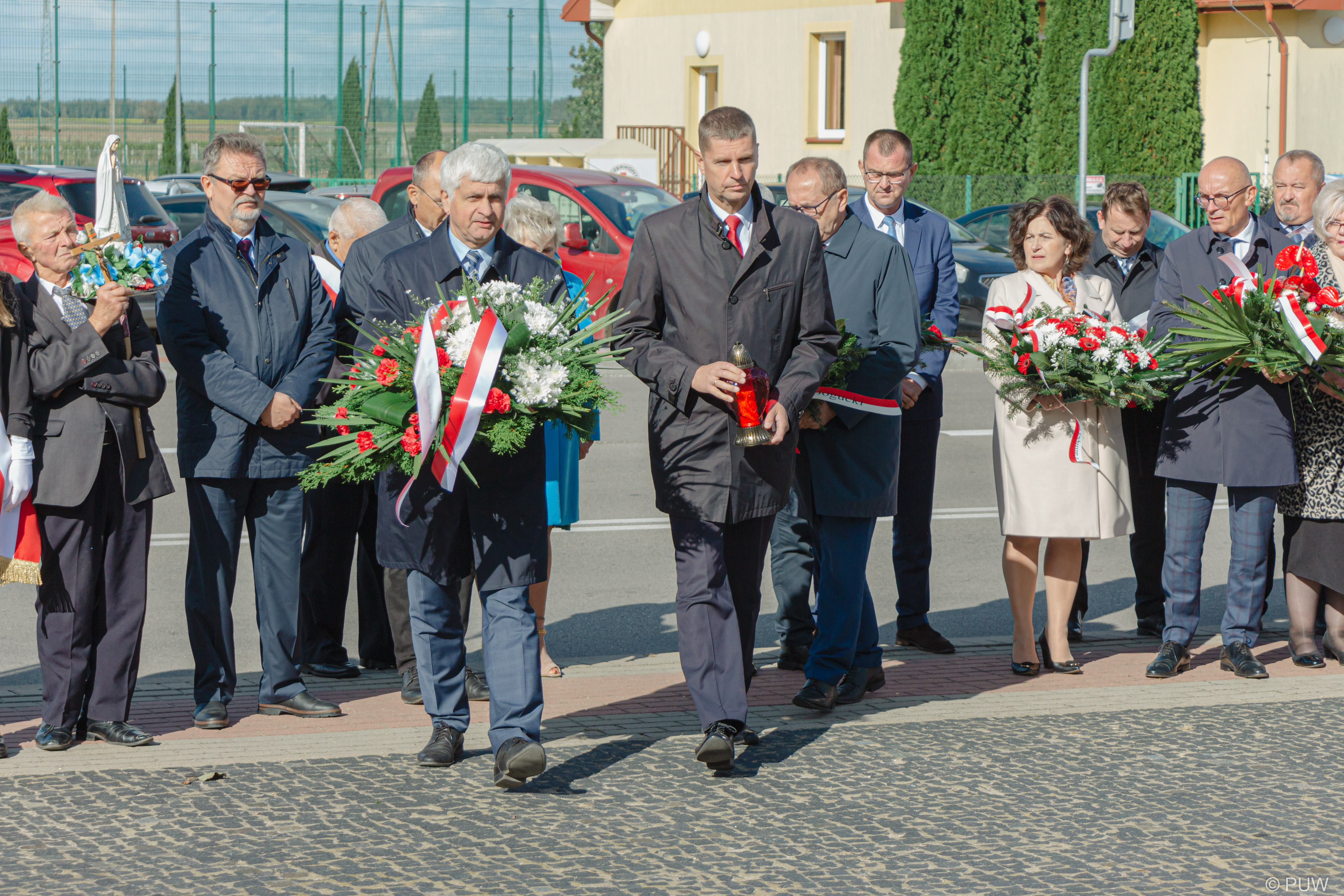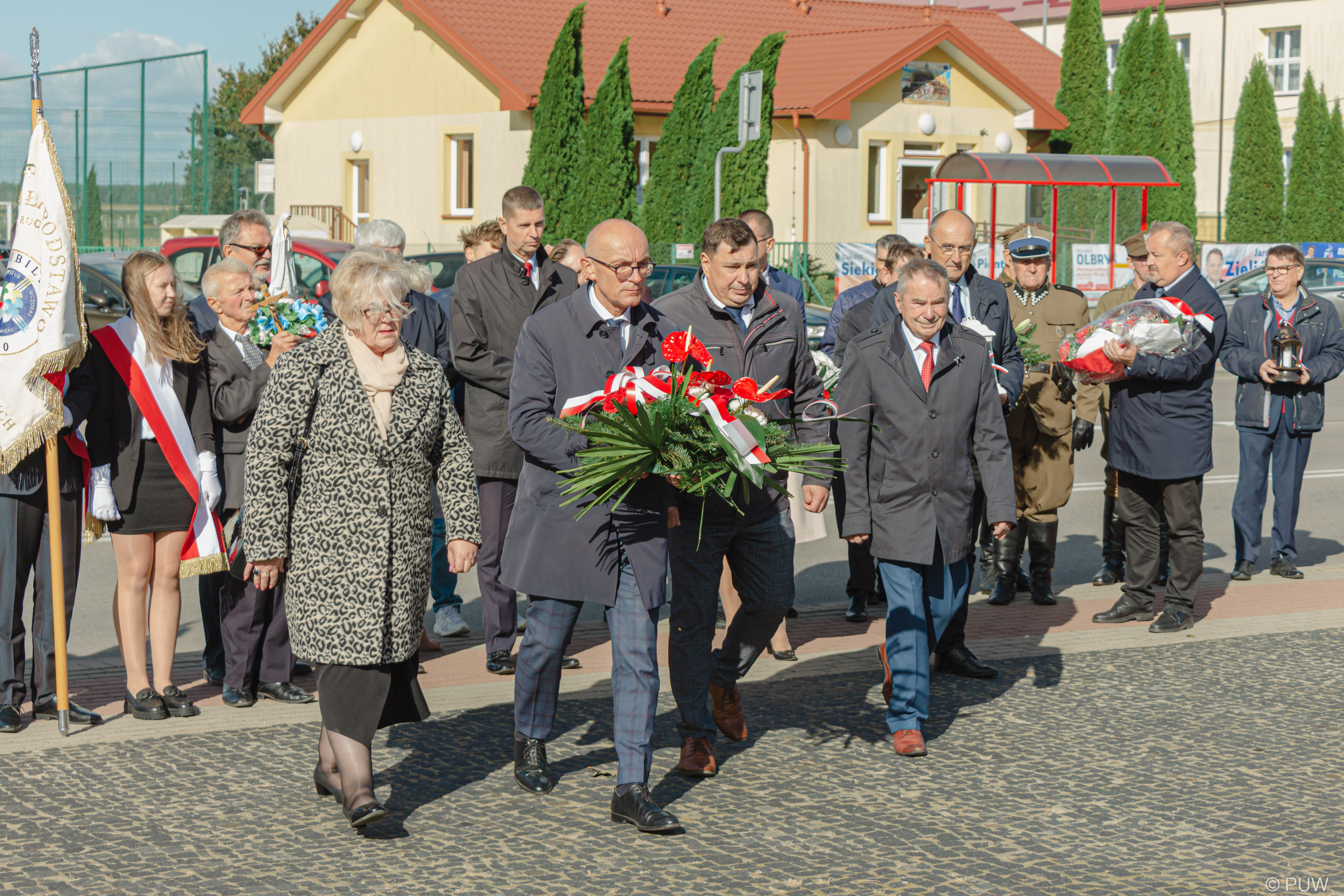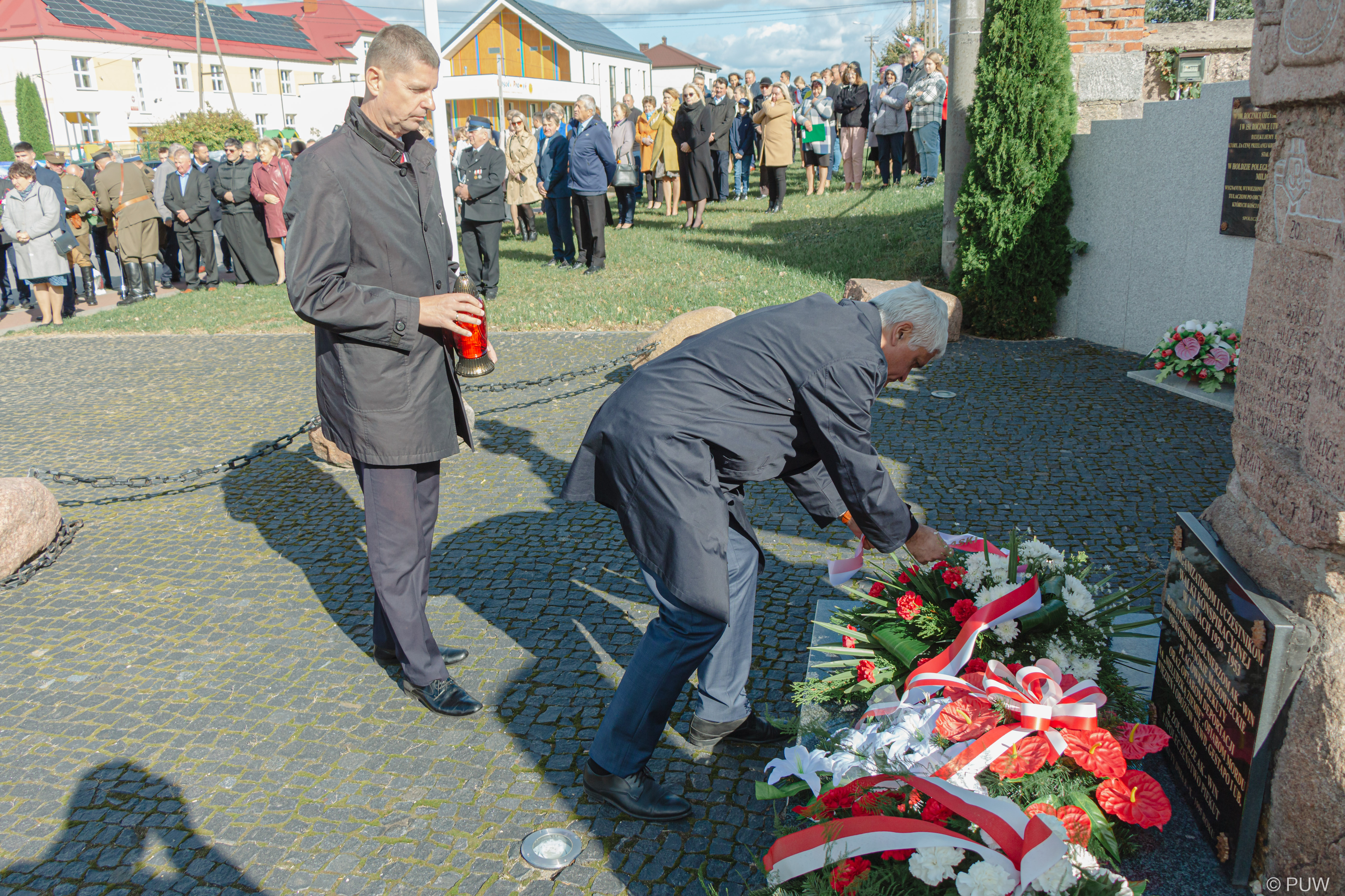 W dalszej części zgromadzeni goście oraz delegacje - wśród nich m.in. wiceminiser edukacji i nauki Dariusz Piontkowski, senator Jacek Bogucki oraz wojewoda podlaski Bohdan Paszkowski udali się pod pomnik poświęcony majorowi oraz Żołnierzom AK, gdzie odśpiewano hymn, a takze złożono kwiaty i zapalono znicze.