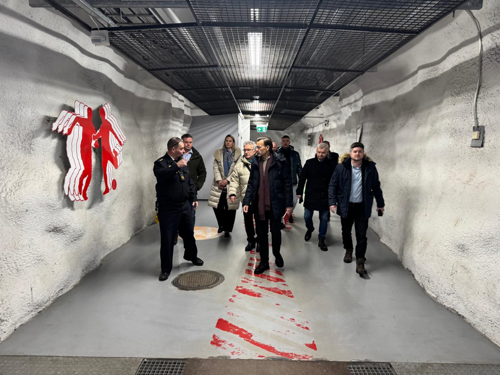 Po wydrążonym w skałach obiekcie oprowadzał przedstawiciel Departamentu Ratownictwa Miasta Helsinki, który objaśniał, w jaki sposób zaplanowane jest przeorganizowanie schronu w sytuacji zagrożenia.