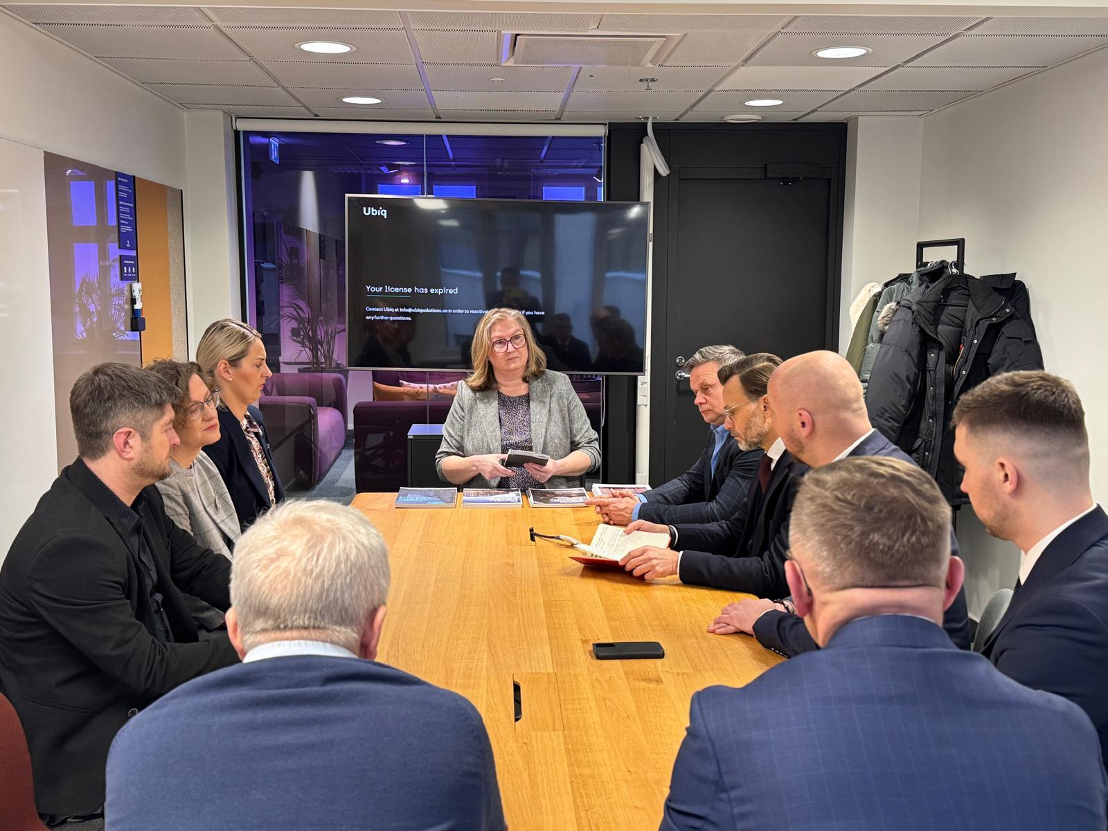 W ostatnim dniu wizyty studyjnej w Finlandii podlascy delegaci odwiedzili Zagraniczne Biuro Handlowe Polskiej Agencji Inwestycji i Handlu, by porozmawiać z dyrektor Patrycją Saxlund m.in. o promowaniu polskiej gospodarki i uczestnictwie podlaskich firm w międzynarodowych targach organizowanych w Finlandii.
