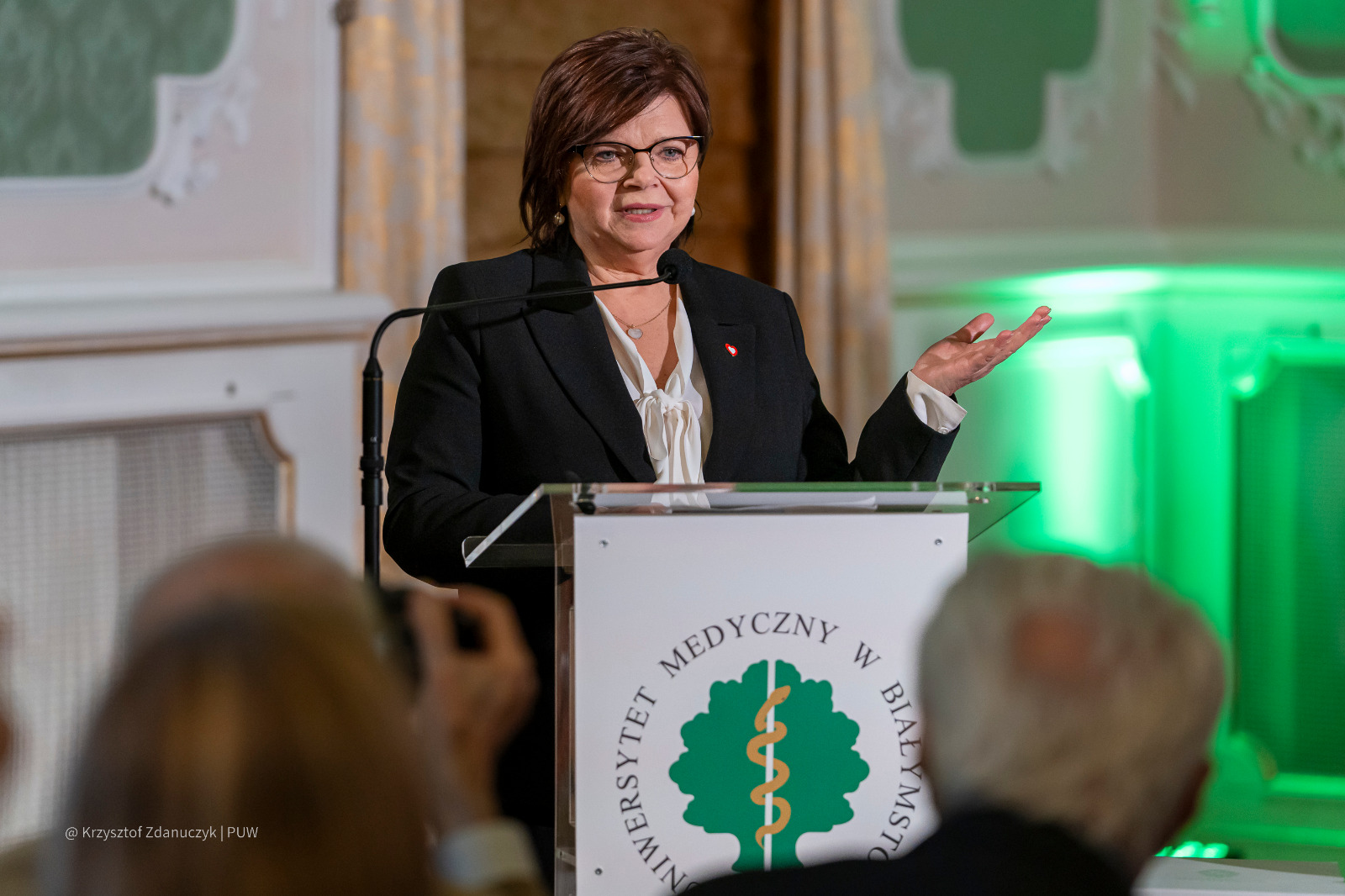 Macie pełne prawo być bardzo dumni ze swojej uczelni, jej historii, absolwentów – ze wszystkiego, co robili Wasi poprzednicy i co Państwo robicie. Wypracowaliście niezwykłą markę. Dziś trudno w Polsce znaleźć szpital, w którym nie byłoby lekarza po medycynie w Białymstoku. A te 75 lat to nie tylko kształcenie medyków, leczenie i dbałość o pacjentów, ale także badania. Mury, inwestycje, sprzęt – to wszystko jest ważne. Ale w medycynie najważniejszy jest człowiek. Wszystko, co robicie dla studentów, badaczy, robicie dla nas, pacjentów. Dziękuję za to myślenie o pacjencie.