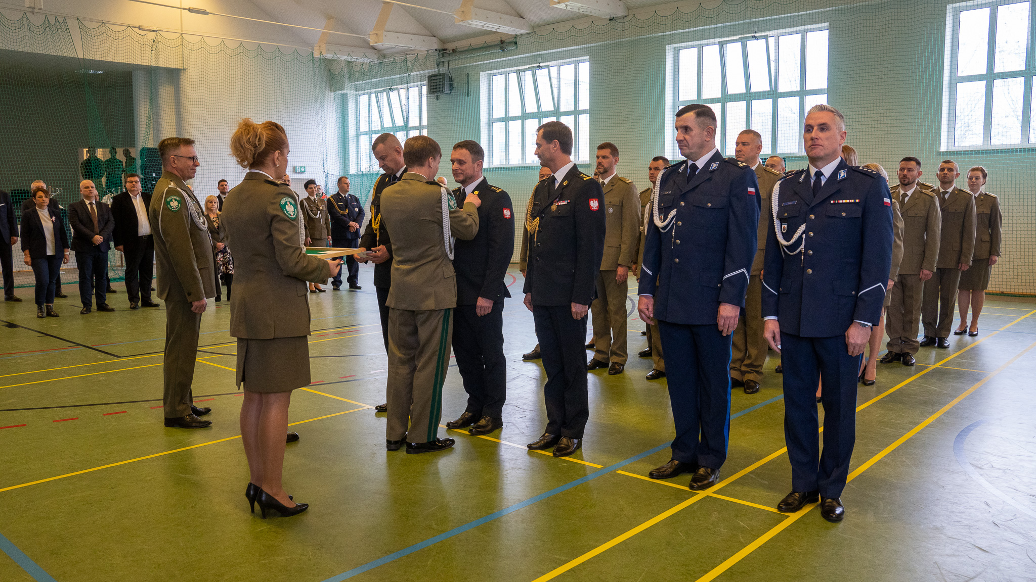 – Niepodległość jest podstawowym i najważniejszym dobrem wspólnym dla naszej ojczyzny. Bez niej nie mogą istnieć żadne inne. Zapewnia ona wolność przekonań, wyznawania religii. Pozwala również na kształtowanie własnych poglądów, czy prowadzenie własnej działalności gospodarczej – mówił Komendant. Pogratulował również wyróżnionym i jednocześnie podziękował wszystkim funkcjonariuszkom i funkcjonariuszom za ciężką i odpowiedzialną służbę. Słowa wdzięczności skierował również do przedstawicieli służb mundurowych, które na co dzień wspierają POSG w ochronie granicy państwowej.