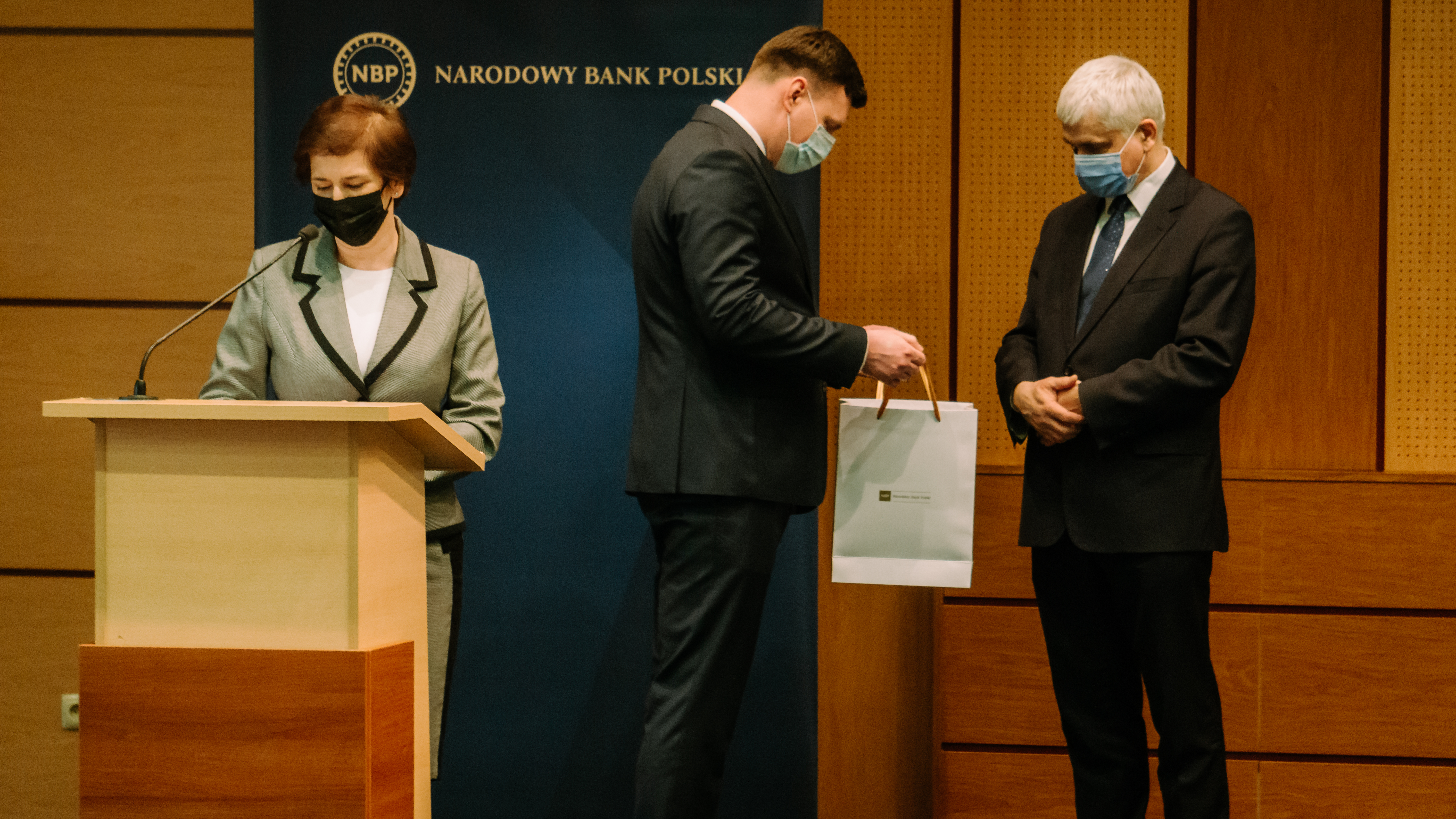 Pamiątkową monetę "100-lecia polskiej flagi narodowej" w podziękowaniu za współpracę z NBP oraz pracę na rzecz województwa podlaskiego z rąk dyrektora białostockiego oddziału NBP otrzymał wojewoda podlaski.