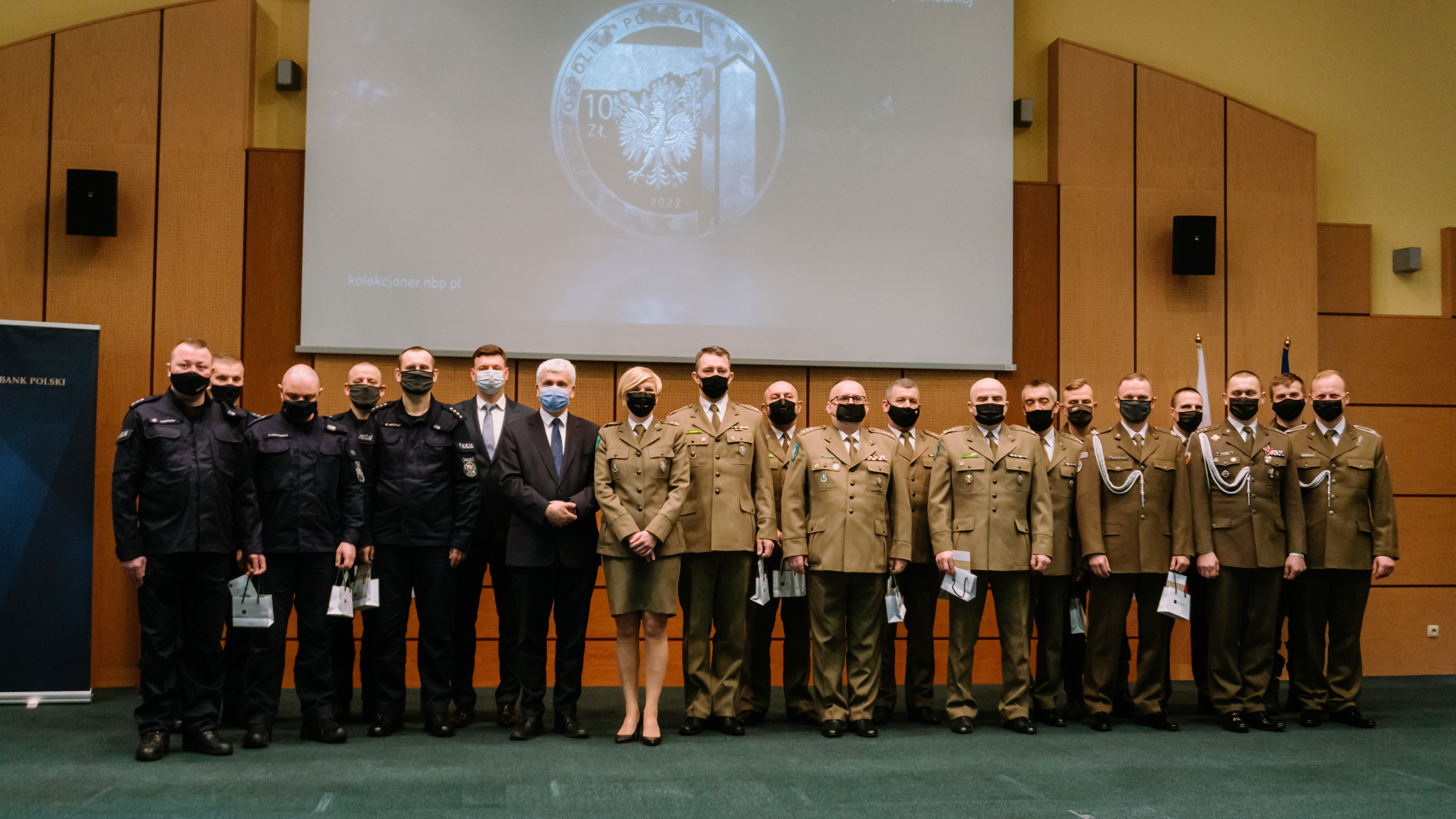 20 przedstawicieli: Podlaskiego Oddziału Straży Granicznej, 18. Białostockiego Pułku Rozpoznawczego, Podlaskiej Policji oraz 1 Podlaskiej Brygady Obrony Terytorialnej odebrało w środę (23.02) okolicznościową monetę "Ochrona polskiej granicy wschodniej", wprowadzoną do obiegu przez Narodowy Bank Polski. W ten sposób wojewoda podlaski oraz dyrektor białostockiego oddziału NBP podziękowali mundurowym za ciężką pracę dla bezpieczeństwa mieszkańców regionu i kraju.