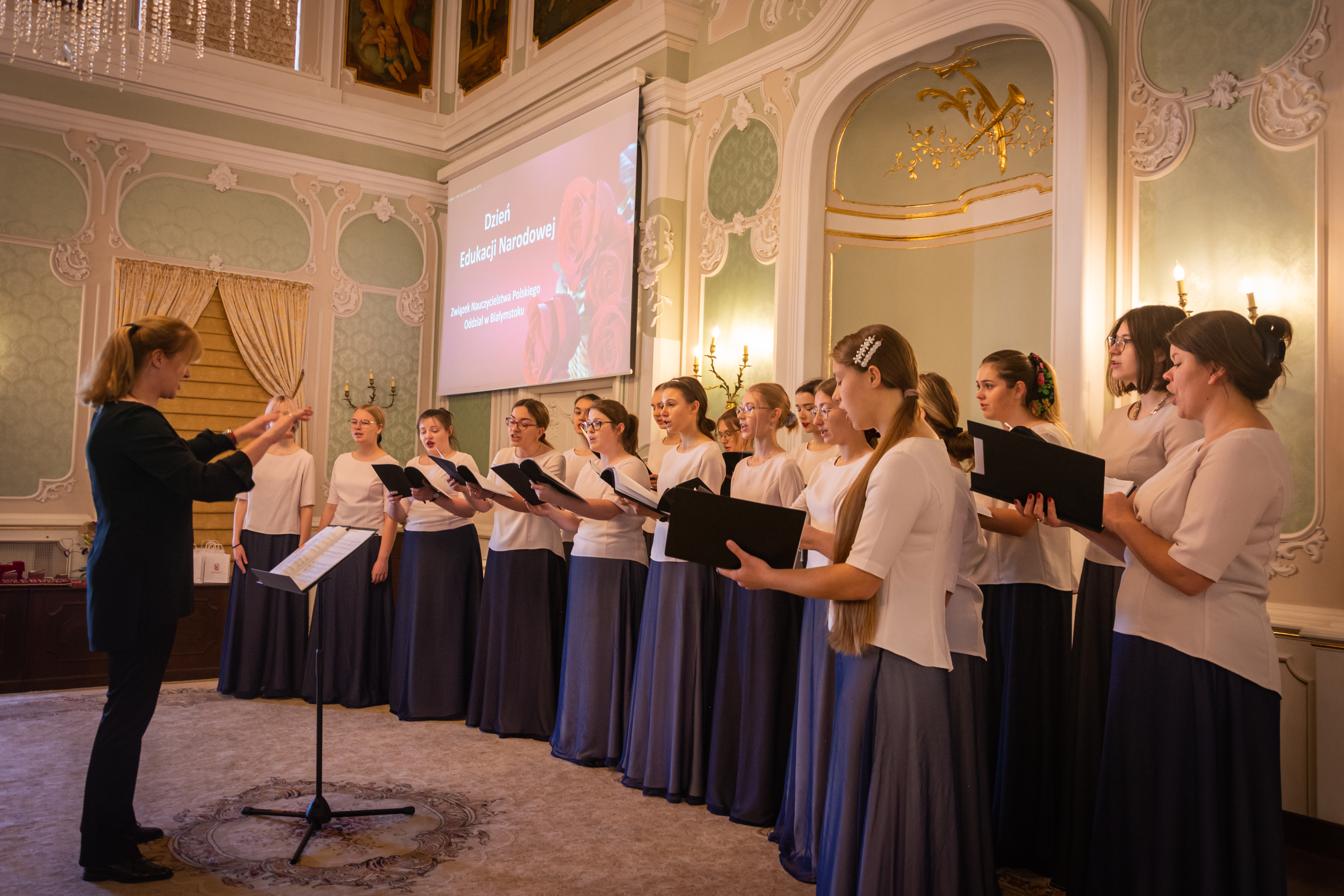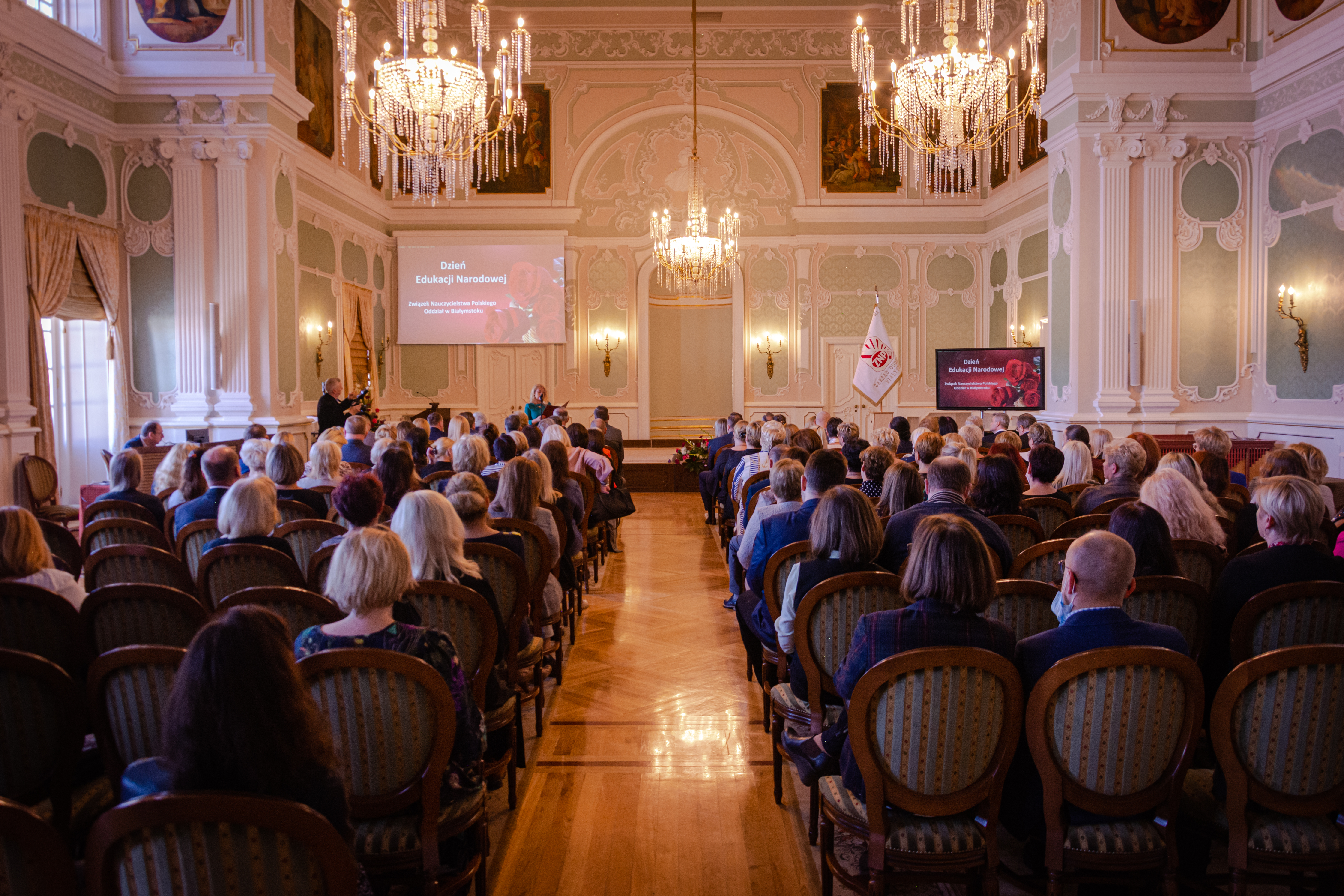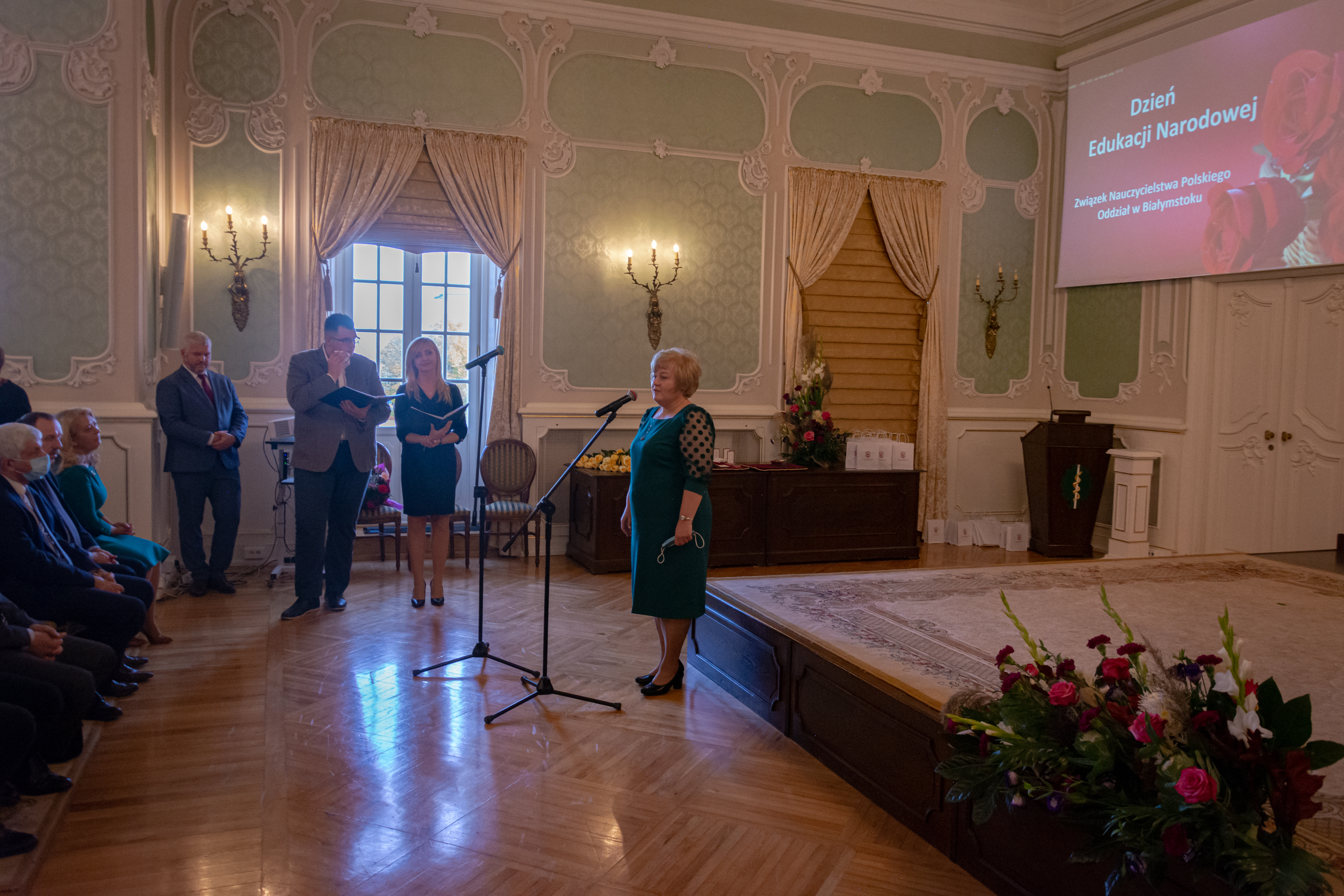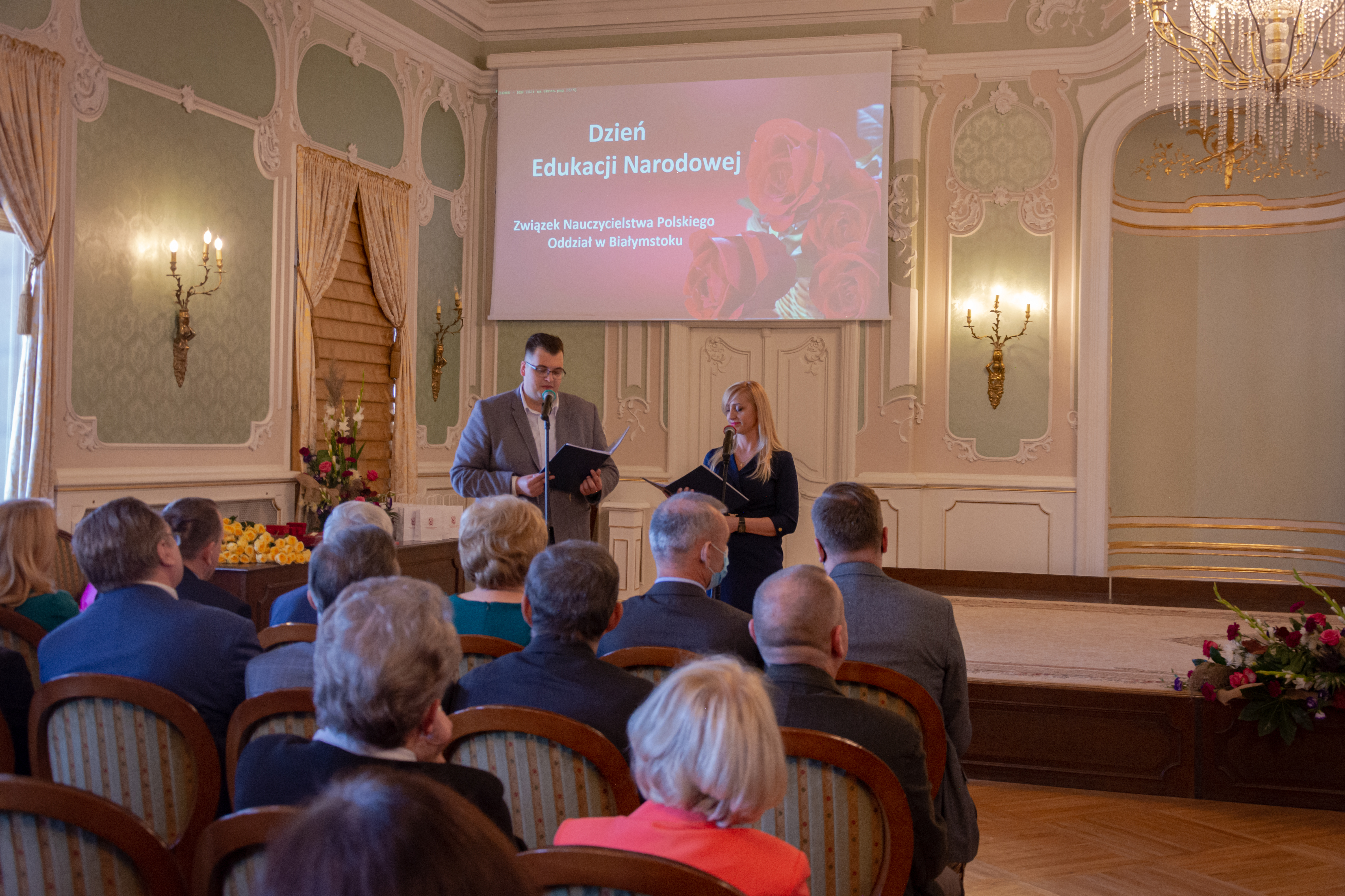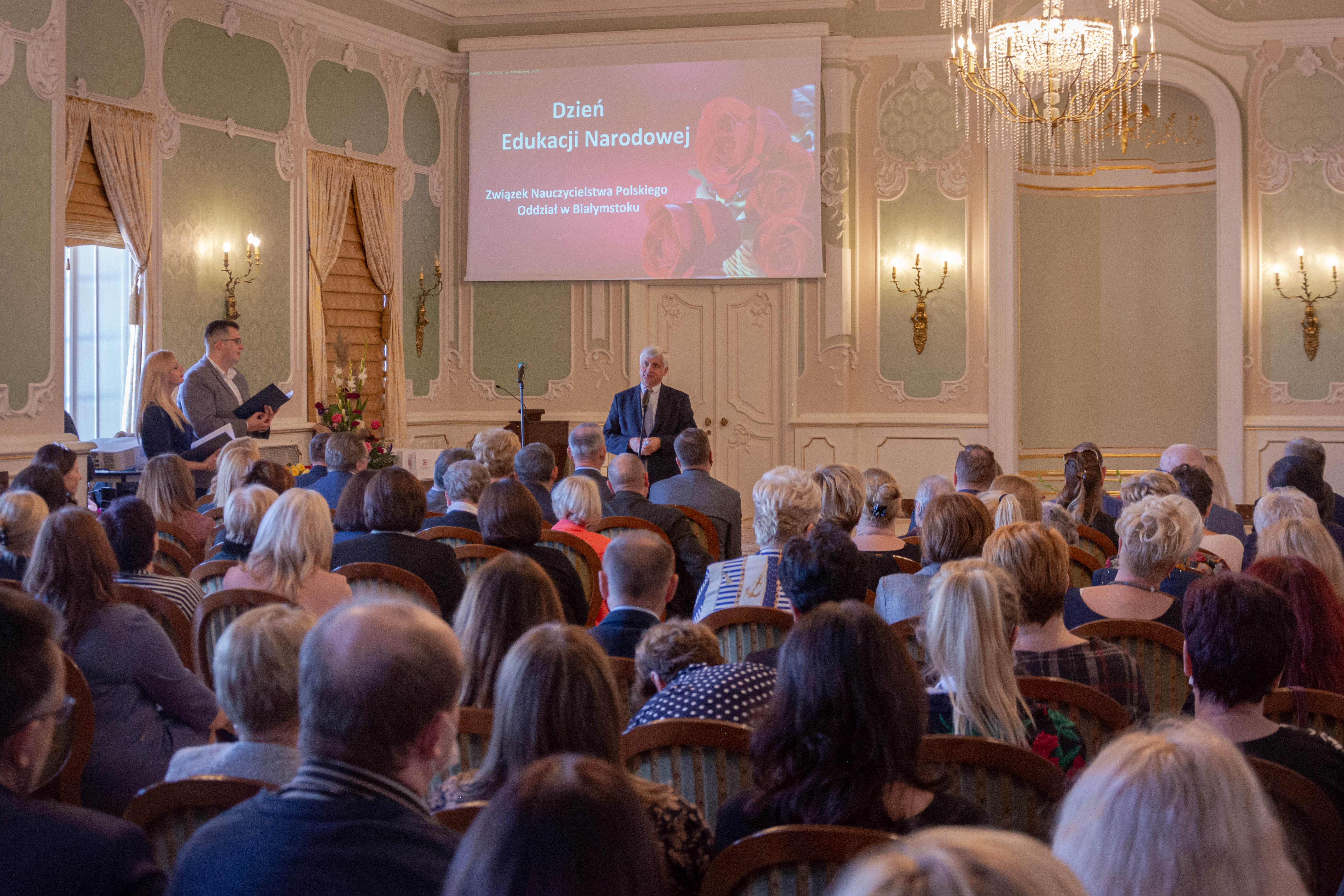 We wtorek (19.10) w Auli Magna Pałacu Branickich w Białymstoku odbyły się uroczyste obchody Dnia Edukacji Narodowej przygotowane przez białostocki Oddział Związku Nauczycielstwa Polskiego. W trakcie ceremonii wojewoda podlaski Bohdan Paszkowski wręczył wyróżnionym nauczycielom odznaczenia państwowe.