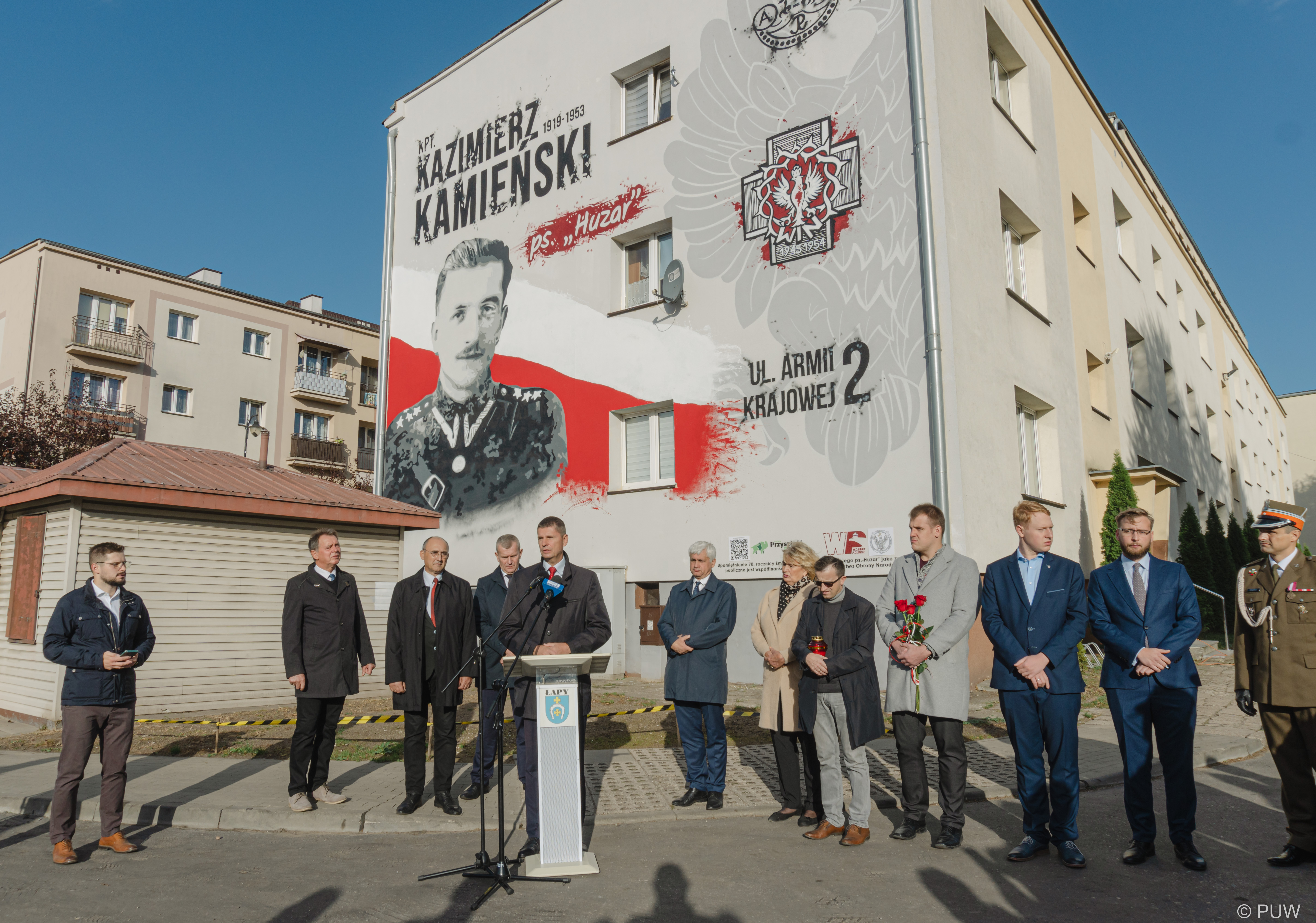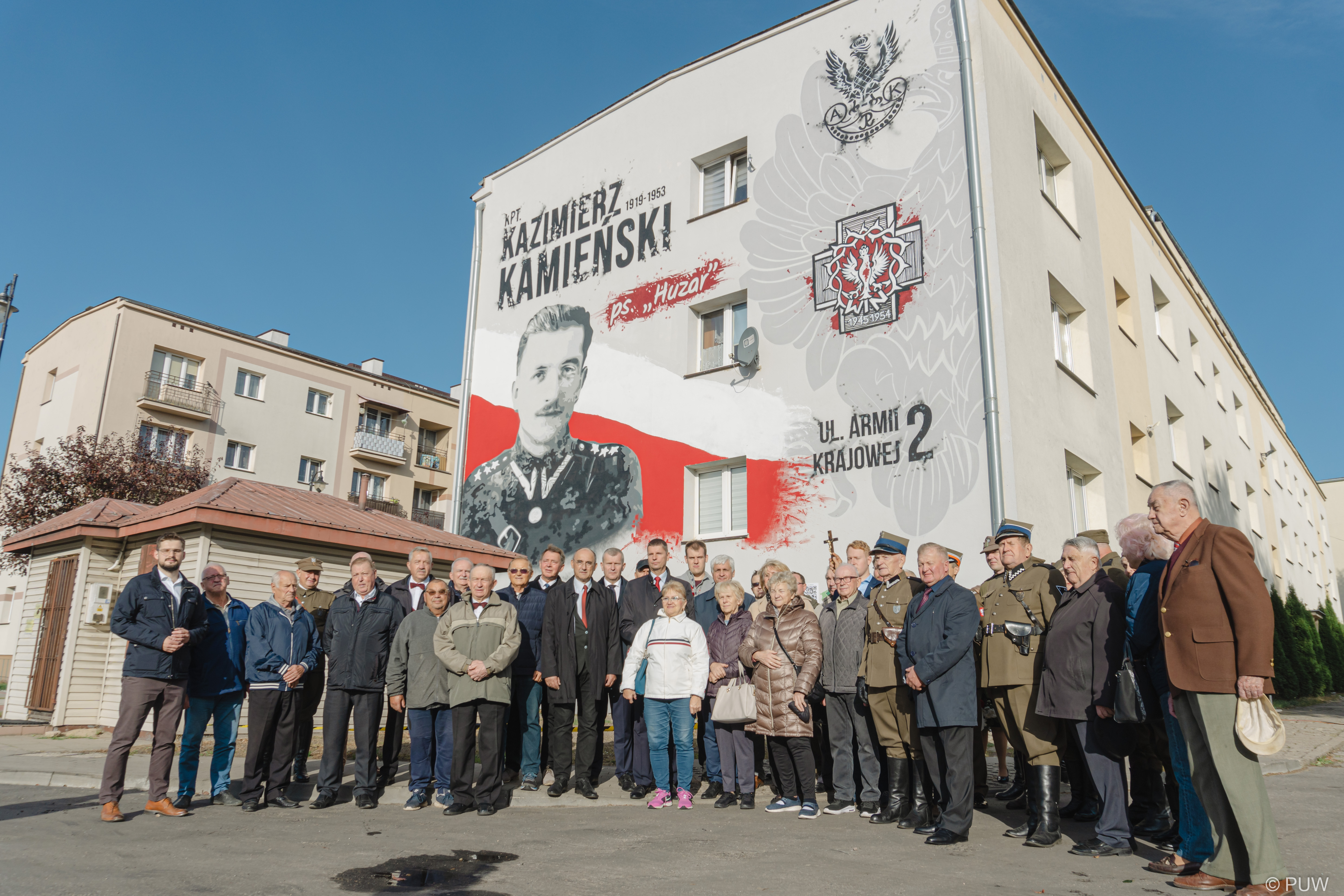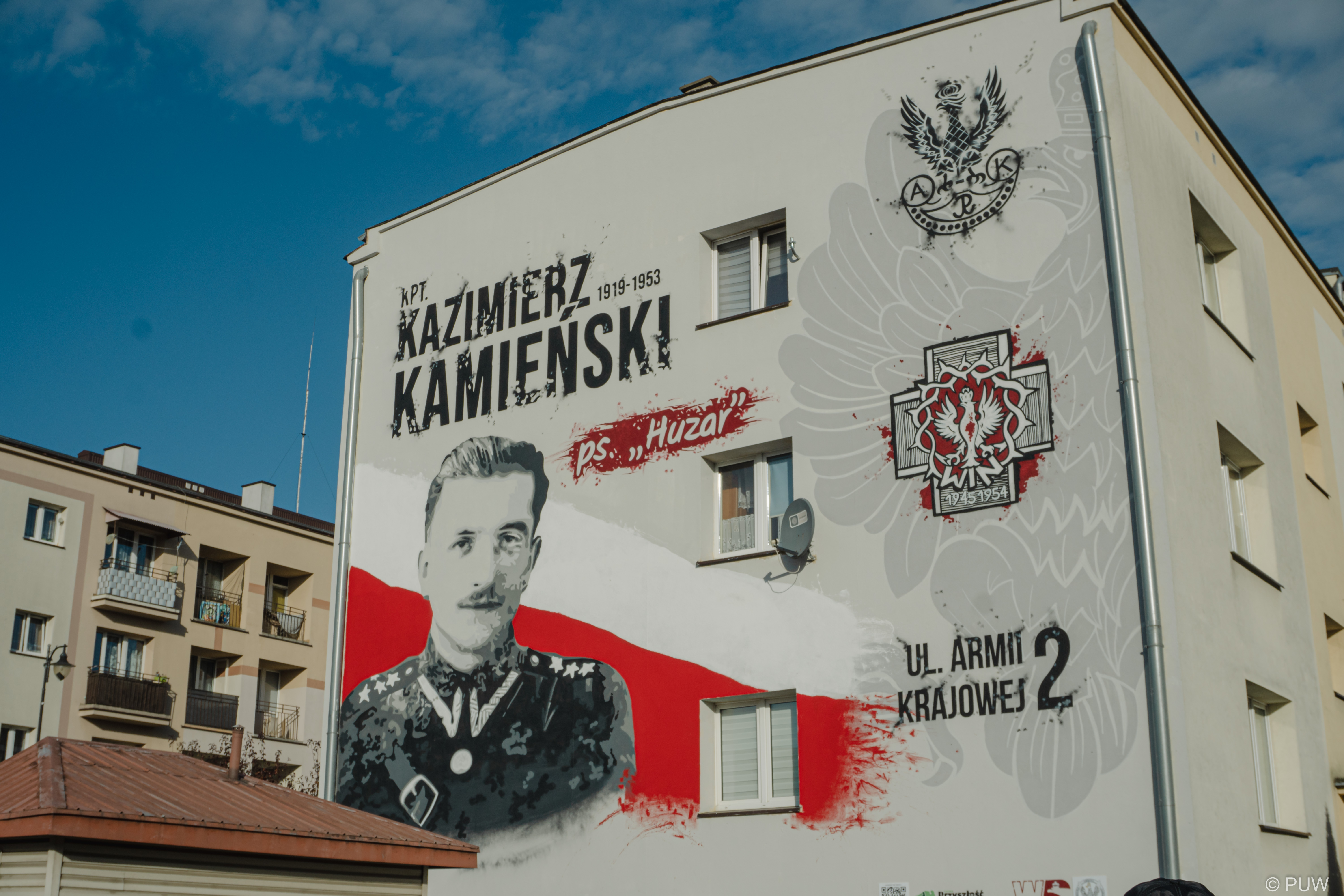 Mural z wizerunkiem Kazimierza Kamieńskiego ps. "Huzar" powstał na ścianie bloku przy ul. Armii Krajowej w Łapach. To inicjatywa działaczy Fundacji "Przyszłość Podlasia", którzy odpowiedzieli na potrzebę mieszkańców miejscowości dotyczącą upamiętnienia lokalnego bohatera.