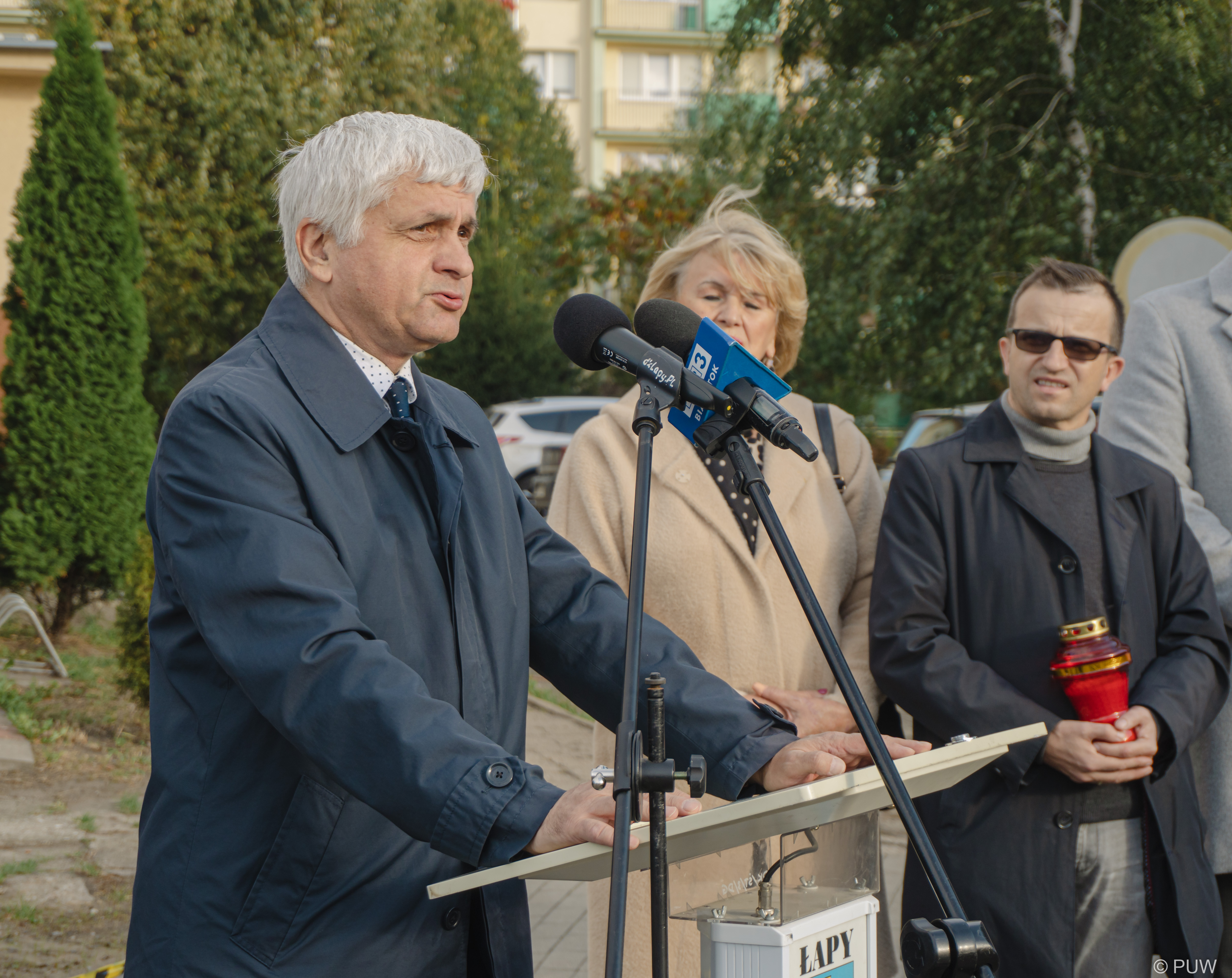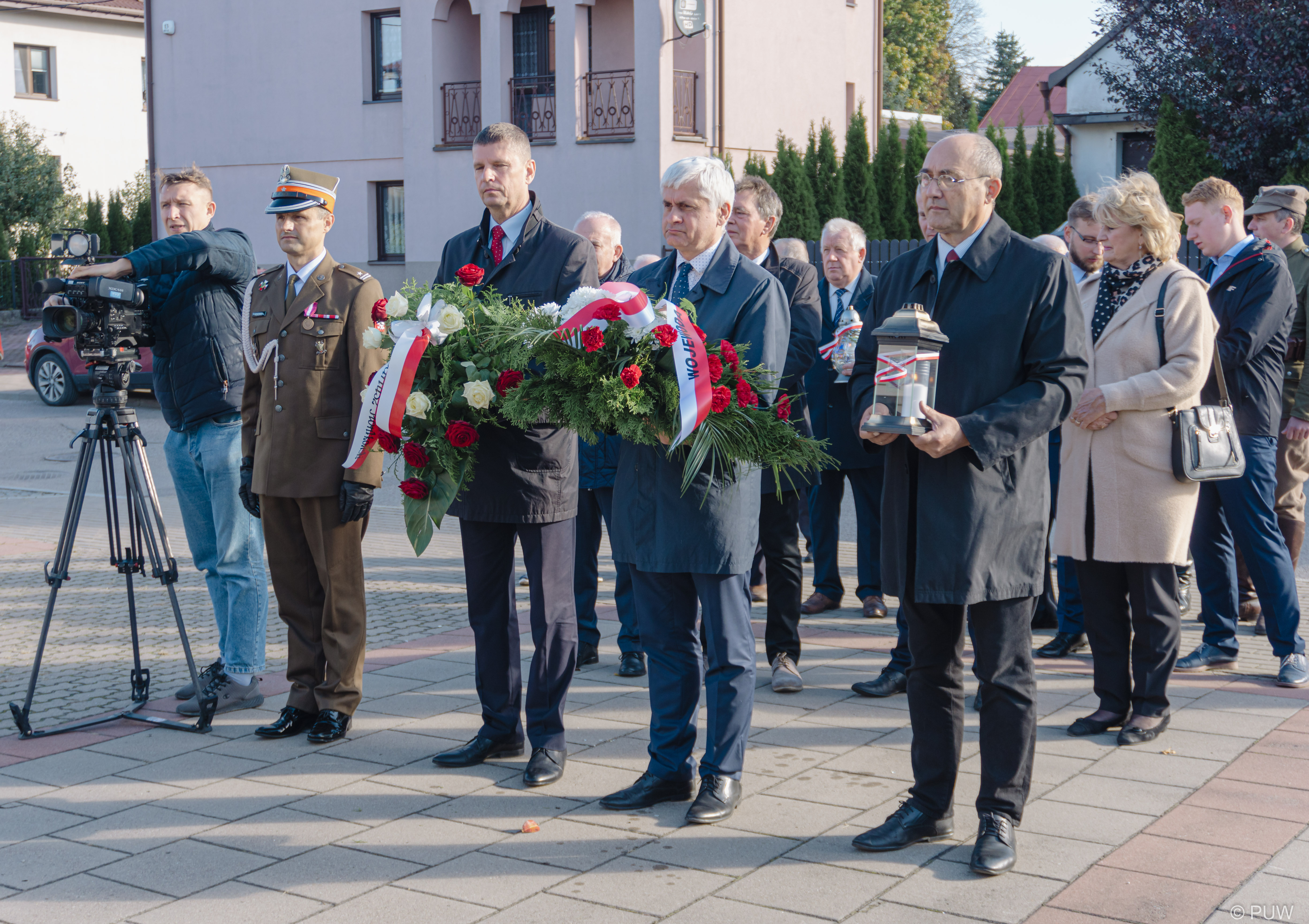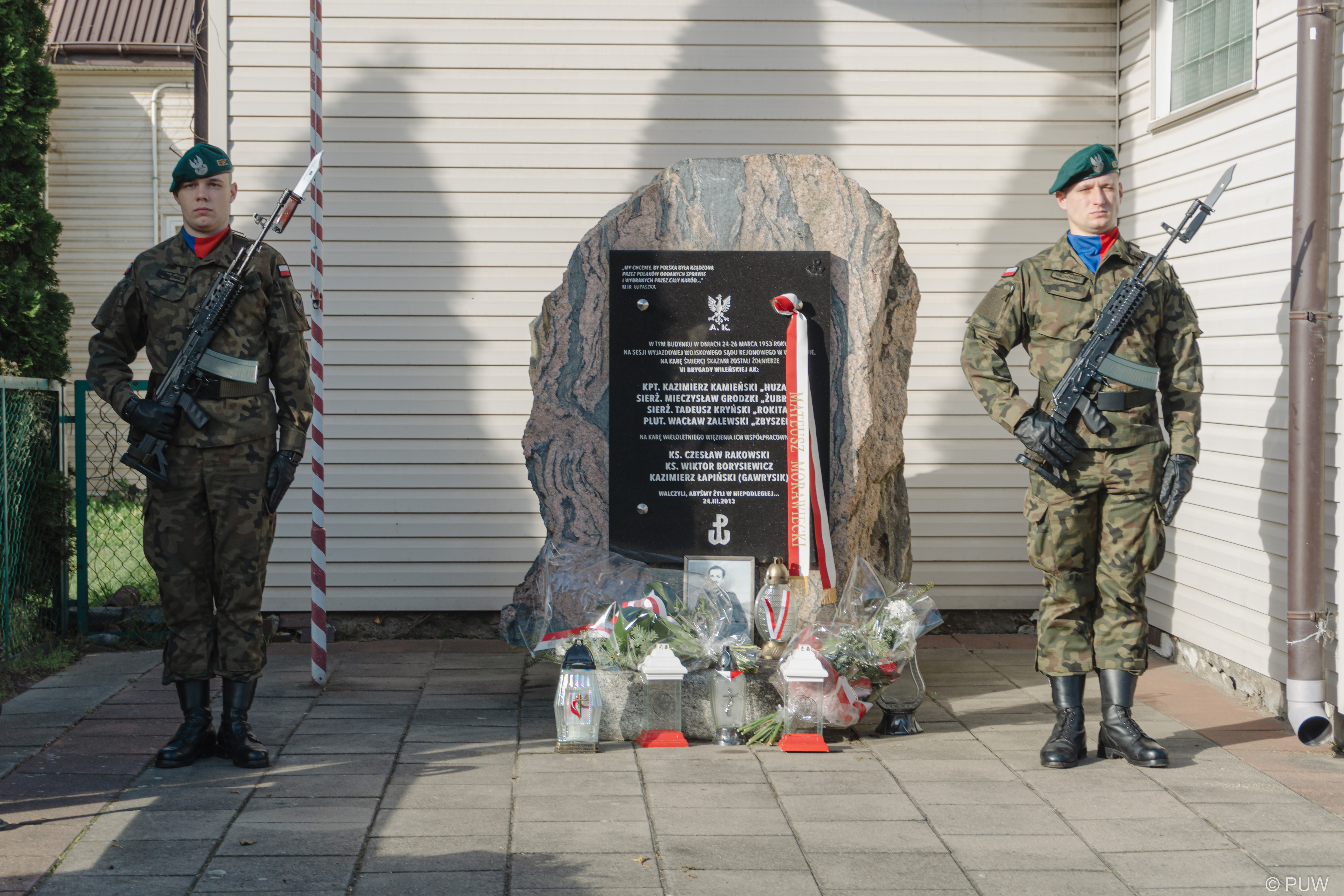 Z okazji 70. rocznicy śmierci "Huzara" uczestnicy uroczystości - wśród nich m.in. wiceminister edukacji i nauki Dariusz Piontkowski, wojewoda podlaski Bohdan Paszkowski oraz burmistrz Łap Karzysztof Gołaszewski - złożyli kwiaty pod tablicą upamiętniającą 60. rocznicę procesu mjr. Kazimierza Kamieńskiego i jego żołnierzy w Łapach.