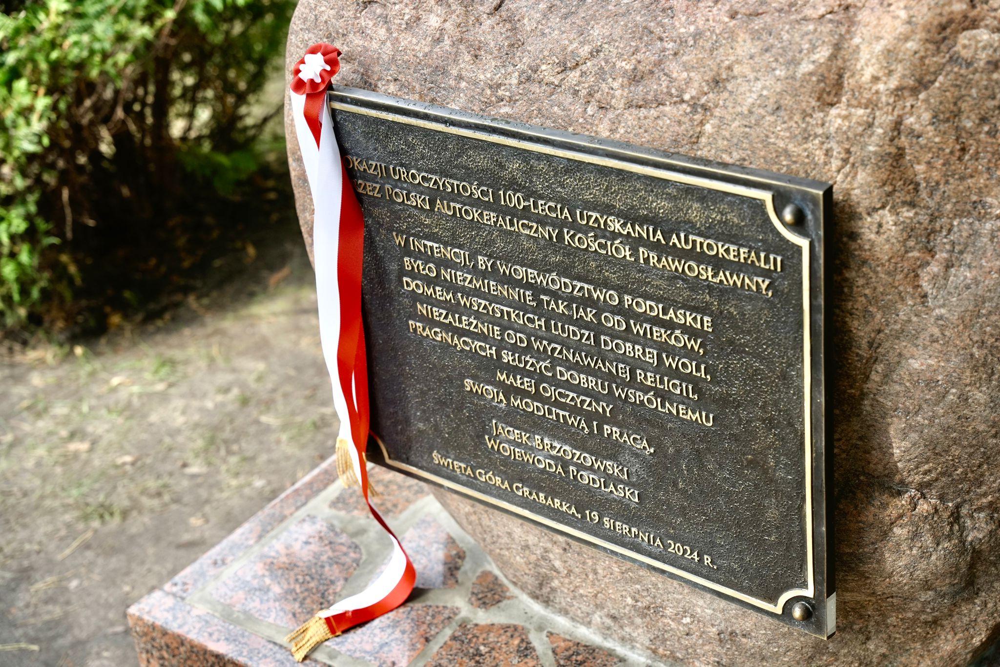 Pamiątką jubileuszu jest także kamień z tablicą od wojewody podlaskiego Jacka Brzozowskiego z inskrypcją: