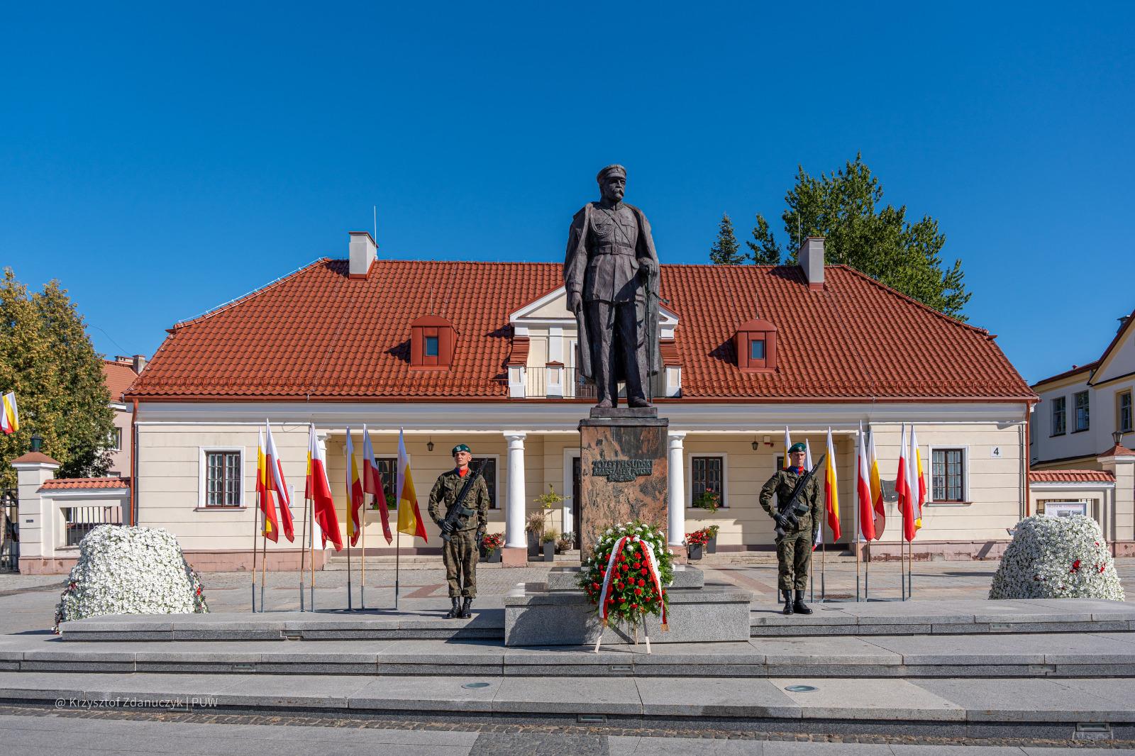 Biało-czerwony wieniec spoczął też u stóp Marszałka Józefa Piłsudskiego na białostockim Rynku Kościuszki.