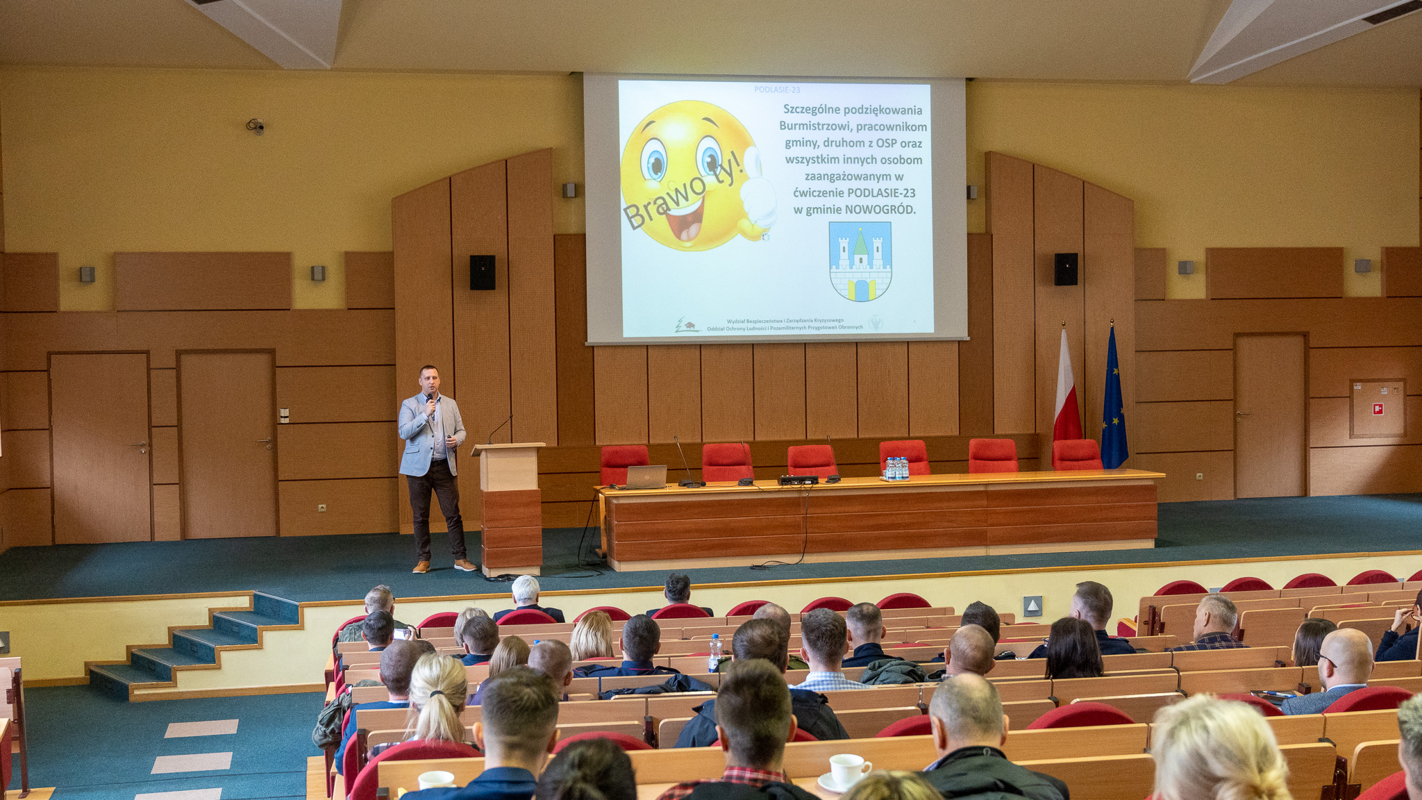 Na warsztaty podsumowujące ćwiczenie obronne PODLASIE-23 przyjechali podlascy samorządowcy, przedstawiciele wojska oraz służb mundurowych. Wojewoda podziękował uczestnikom przedsięwzięcia. – Ćwiczyliśmy wspólnie z wojskiem i służbami współpracę. Wynikało to też z konkretnej sytuacji w Podlaskiem i całym naszym kraju, a mianowicie z obecności służb czy wojska w naszej strefie przygranicznej na skutek zagrożeń hybrydowych ze strony Białorusi i wojny w Ukrainie. Ćwiczenia miały charakter nakierowany na sytuację zagrożenia państwa - współdziałanie układu pozamilitarnego z militarnym i wypracowania scenariuszy w innych sytuacjach nadzwyczajnych. Mam nadzieję, że umożliwiły wszystkim uczestnikom doskonalenie umiejętności radzenia sobie z innymi kryzysami – podsumował wojewoda podlaski.