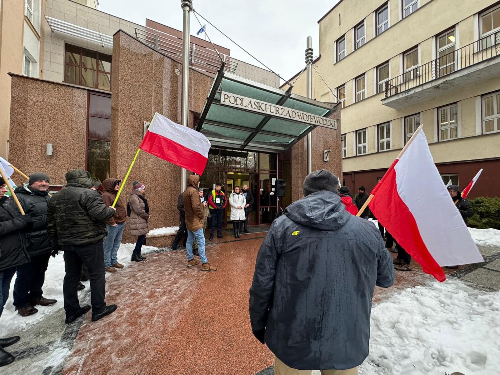 Wicewojewoda Ewa Kulikowska spotkała się z rolnikami protestującymi pod Podlaskim Urzędem Wojewódzkim