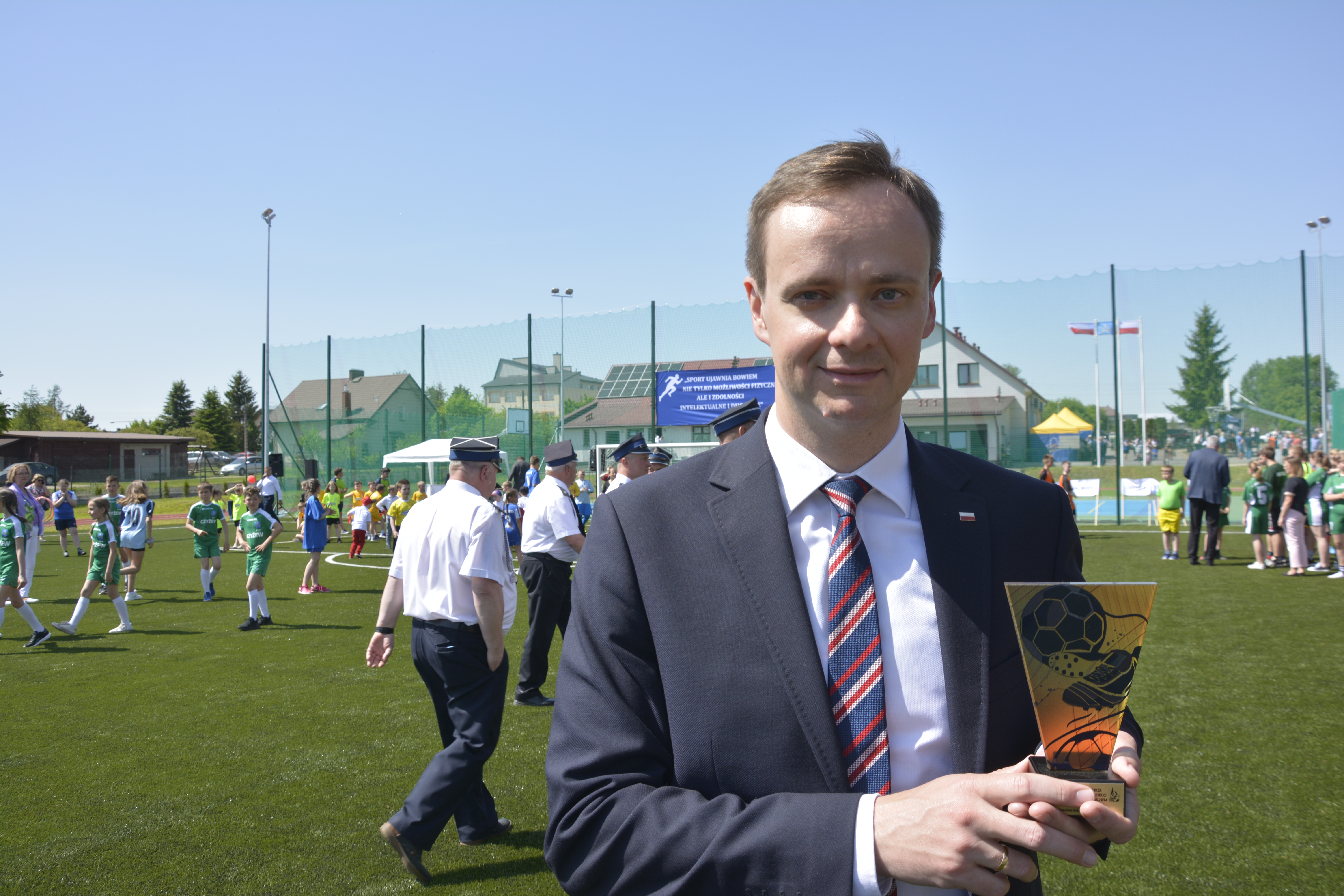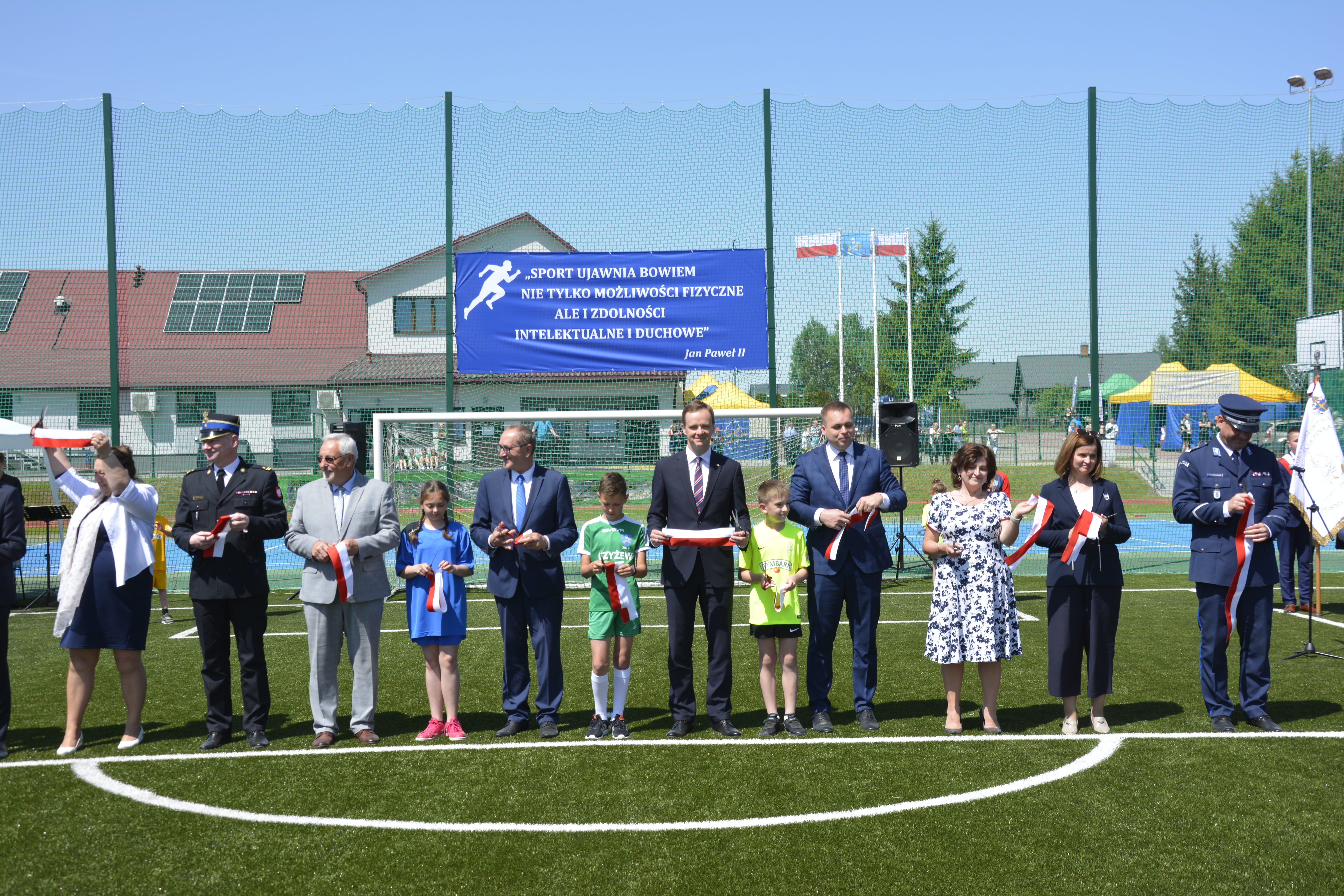 Wicewojewoda podlaski Tomasz Madras na otwarciu nowoczesnego boiska w gminie Czyżew