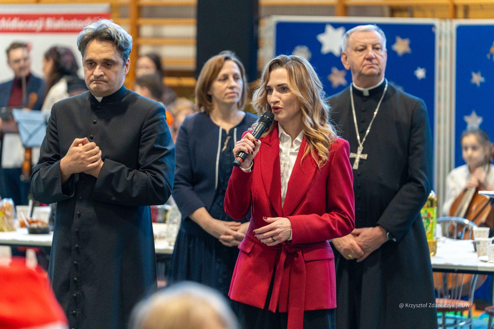 Świąteczne życzenia złożyli zgromadzonym ksiądz arcybiskup Józef Guzdek, dyrektor białostockiej Caritas ks. Andrzej Ratkiewicz, wiceprezes Fundacji Dominika Czarnecka, wojewoda podlaski Jacek Brzozowski, prezydent Białegostoku Tadeusz Truskolaski oraz wicemarszałek województwa podlaskiego Wiesława Burnos.