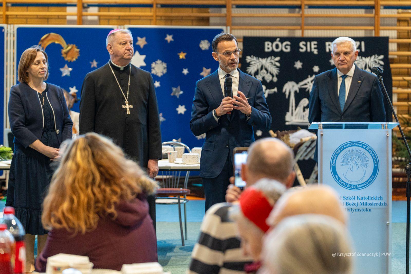 Jak co roku w dzień Wigilii Bożego Narodzenia osoby samotne i potrzebujące spotkały się na wspólnej kolacji zorganizowanej w Zespole Szkół Katolickich w Białymstoku. Z uczestnikami spotkania przełamał się opłatkiem wojewoda podlaski Jacek Brzozowski.