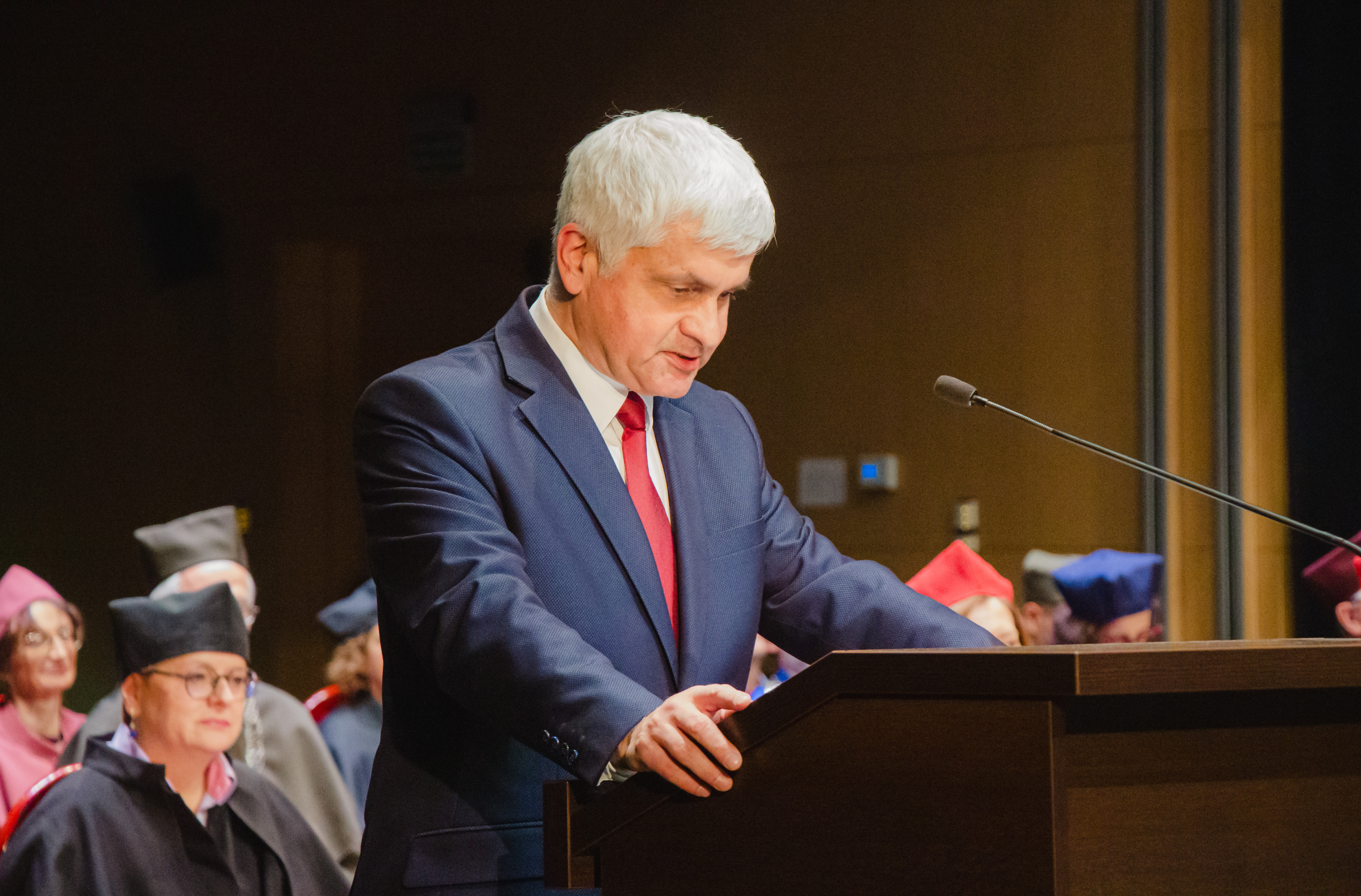 - Zaczynamy 26. rok działalności, za nami 25 lat. I jak to ktoś znany powiedział: po 25. roku życia to już każdy pracuje na swój wyraz twarzy. Po 25 latach (to się nawet dobrze składa, bo to jest okres, kiedy kończy się studia) musimy naszą pozycję utrwalać i stawać się bardziej dorośli - i w polskiej nauce, polskim systemie szkolnictwa wyższego coraz bardziej znaczący – mówił w trakcie uroczystości prof. Robert Ciborowski, rektor Uniwersytetu w Białymstoku.
