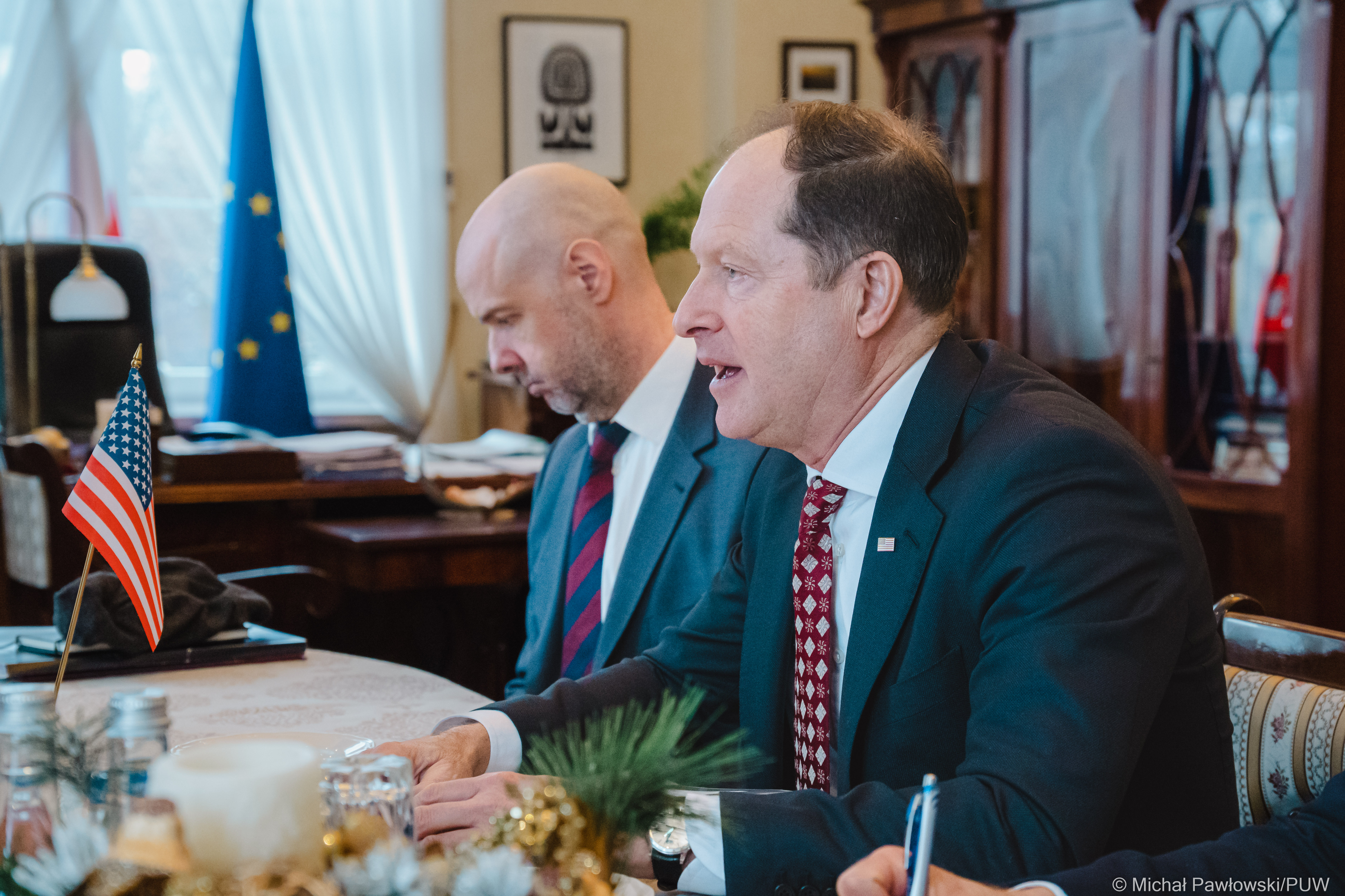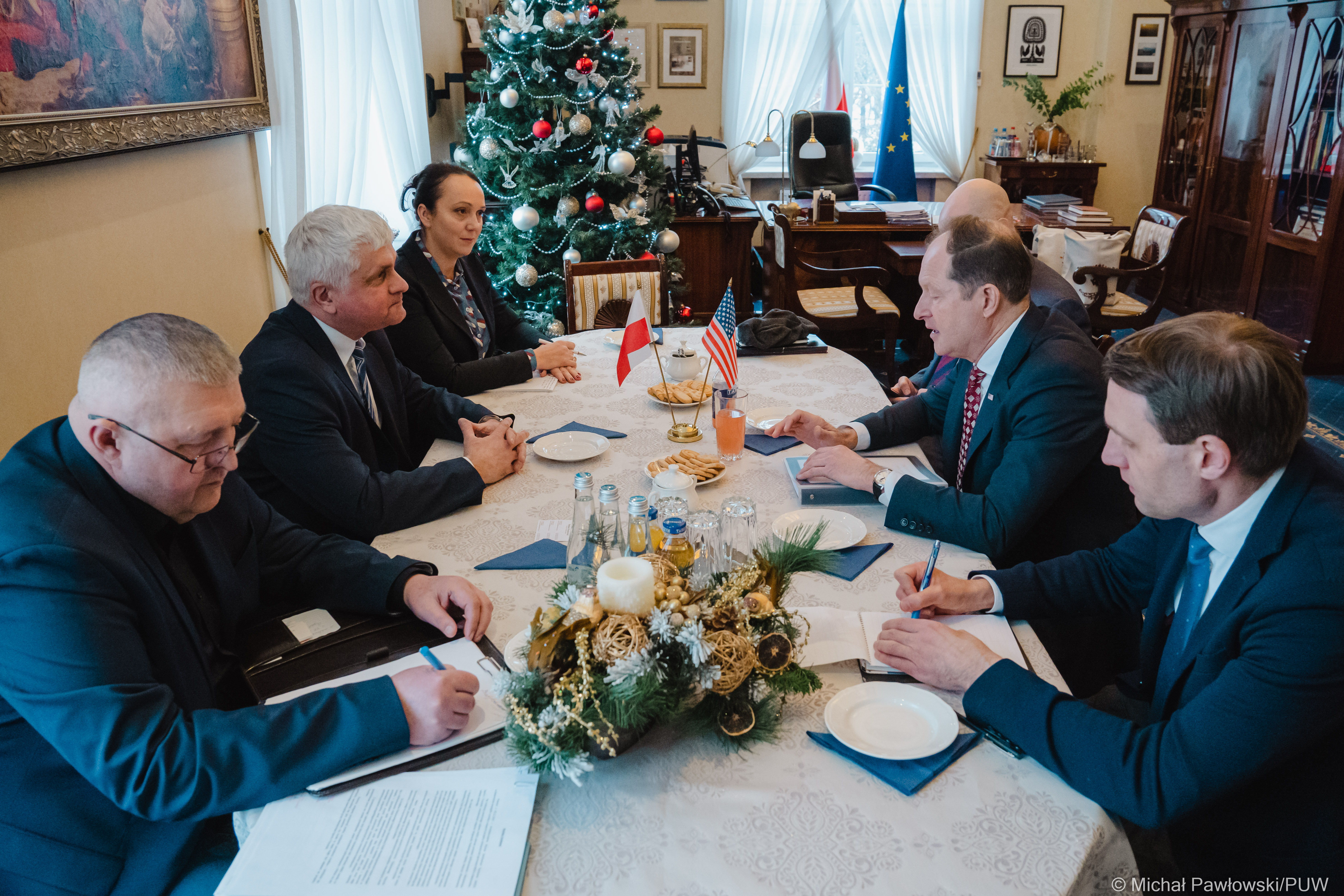 We wtorek (13.12) wojewoda podlaski Bohdan Paszkowski gościł w Podlaskim Urzędzie Wojewódzkim ambasadora Stanów Zjednoczonych Marka Brzezinskiego. Spotkanie było jednym z punktów programu dwudniowej wizyty ambasadora w województwie podlaskim. Głównym tematem rozmów była sytuacja na polsko-białoruskiej granicy oraz kwestie związane z pobytem uchodźców z Ukrainy w regionie.