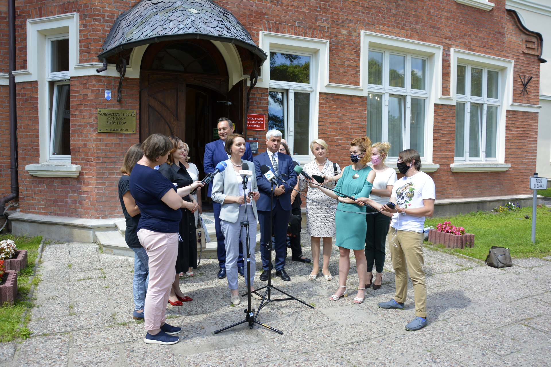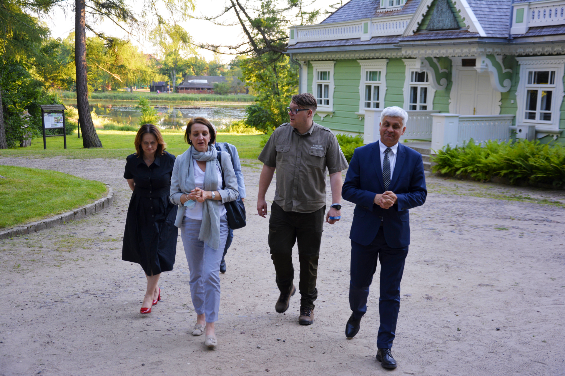 Prof. Małgorzata Dajnowicz, wojewoda podlaski Bohdan Paszkowski i dyrektor Białowieskiego Parku Narodowego Michał Krzysiak, pokazali wiceminister Gawin także zespół pałacowo-parkowy w Białowieży - jeden z najcenniejszych tego typu zabytków w województwie podlaskim. Ogromne walory historyczne tego miejsca związane są z pobytem tu królów polskich oraz carów rosyjskich.