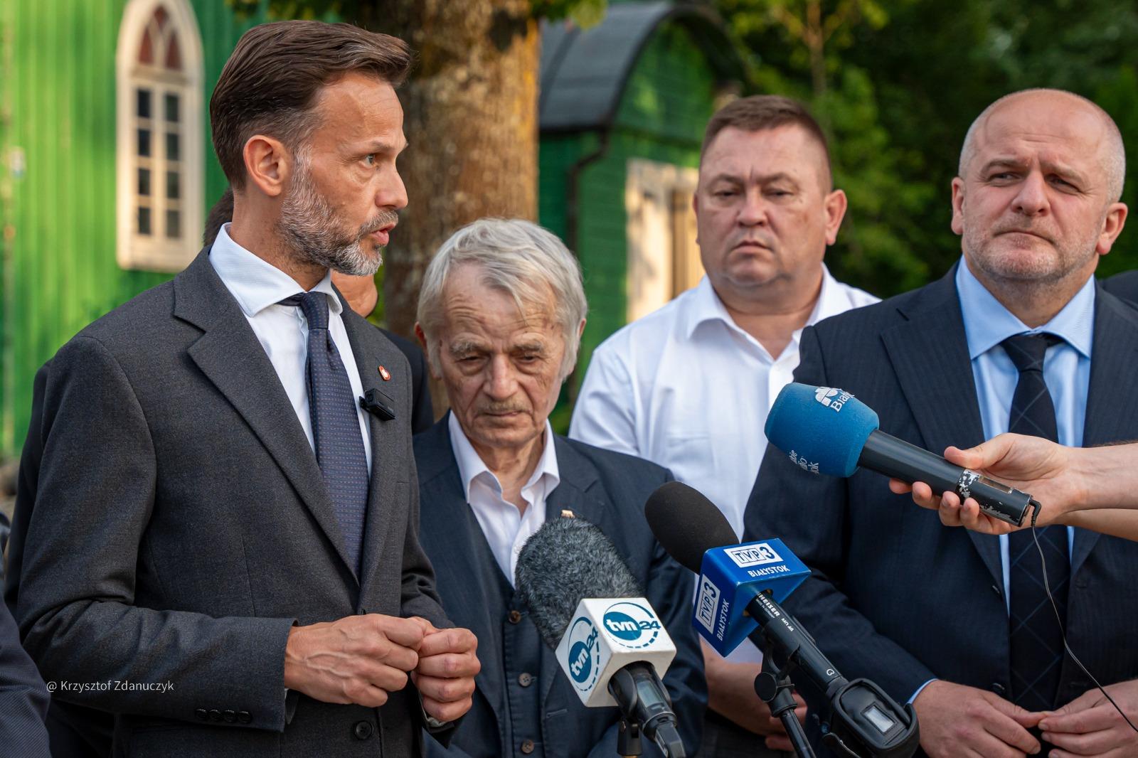 - Spotykamy się w symbolicznym dniu. Dziś Sejm podjął bardzo ważną uchwałę, potępiającą ludobójstwo na Tatarach krymskich dokonane przez Sowietów w 1944 roku. Dziś, w województwie podlaskim szczególnie, wspominamy ofiary sowieckiej zbrodni – Obławy Augustowskiej. I dziś jesteśmy w miejscu, gdzie bije serce polskich Tatarów – w Kruszynianach - z tak znakomitymi gośćmi – mówił dziennikarzom wojewoda podlaski.