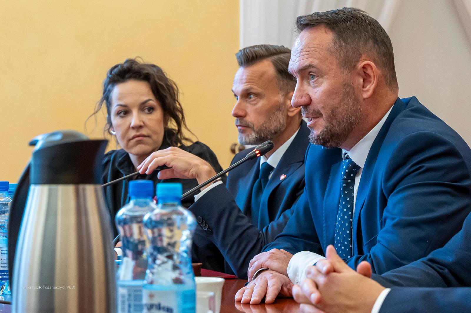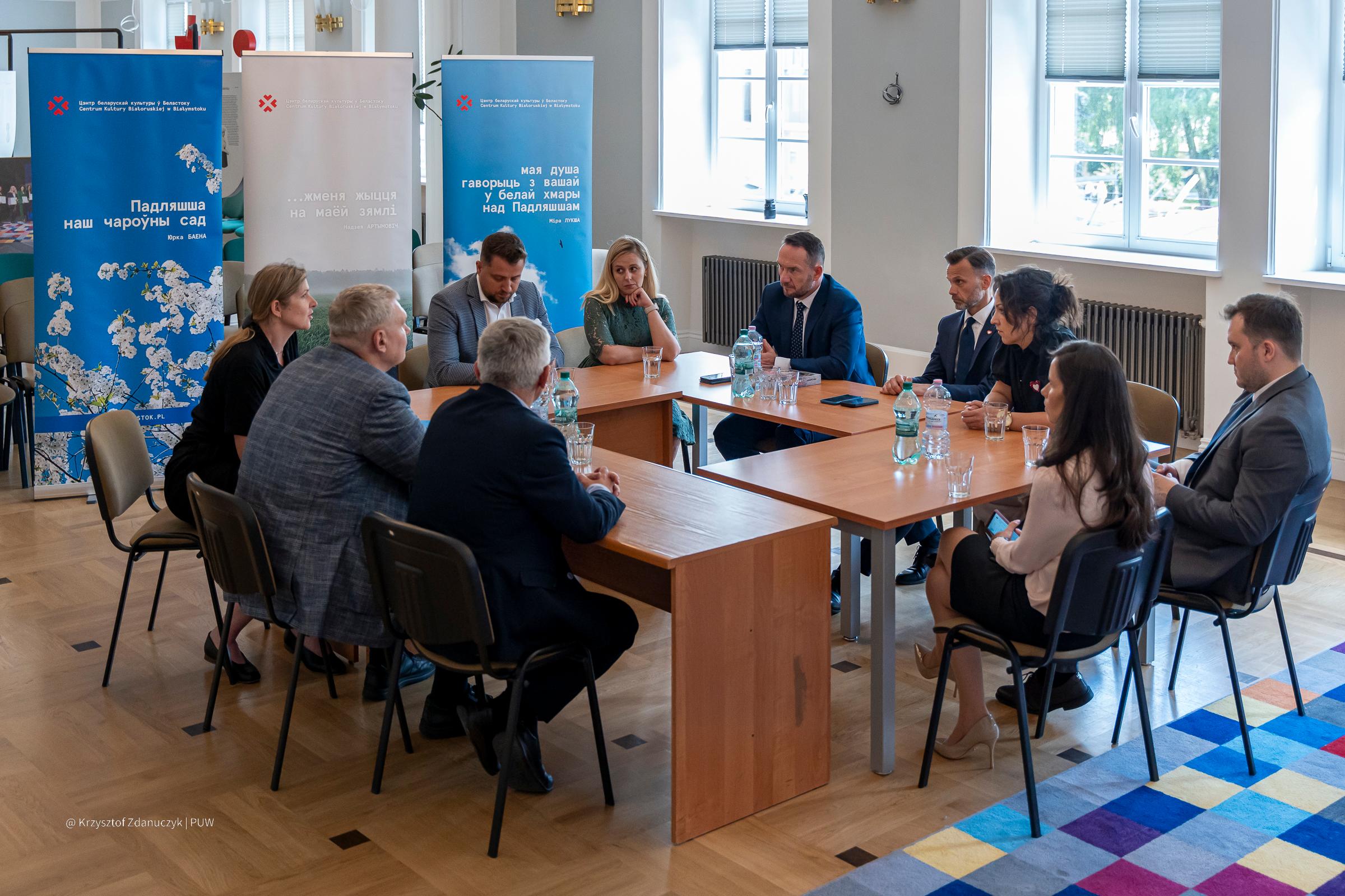 Obok ministra i wojewody Jacka Brzozowskiego w spotkaniu udział wzięli także: Ksenia Alhaug, zastępca dyrektora departamentu odpowiedzialnego za relacje z mniejszościami w MSWiA, posłanka Alicja Łepkowska-Gołaś oraz pełnomocnik wojewody Artur Konopacki.