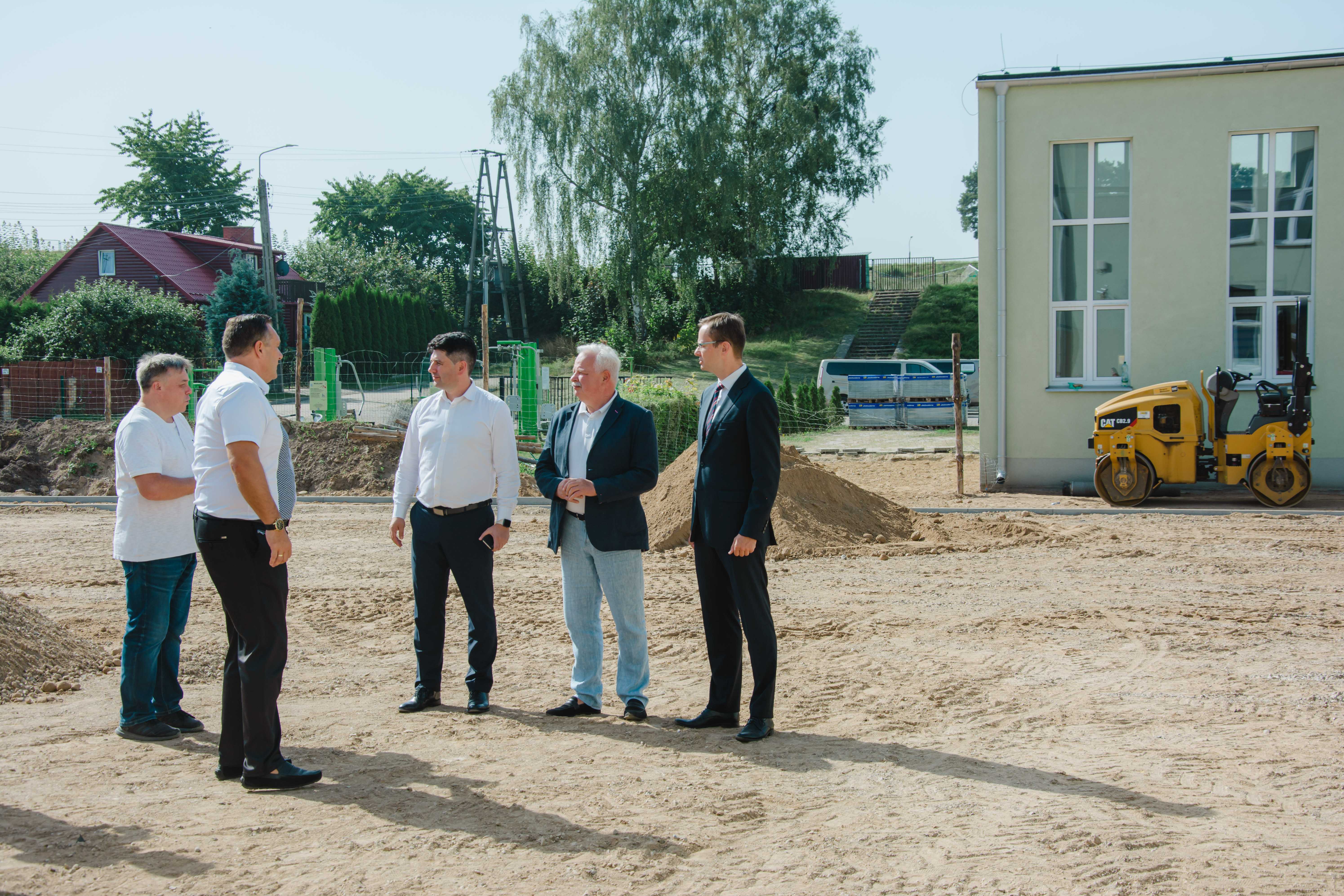 Jednym z przystanków podczas wizytacji w powiecie sokólskim był plac budowy modernizowanego boiska przy Zespole Szkół w Dąbrowie Białostockiej. Inwestycja kosztuje ponad mln zł, a część środków pochodzi z rządowego programu Sportowa Polska.
