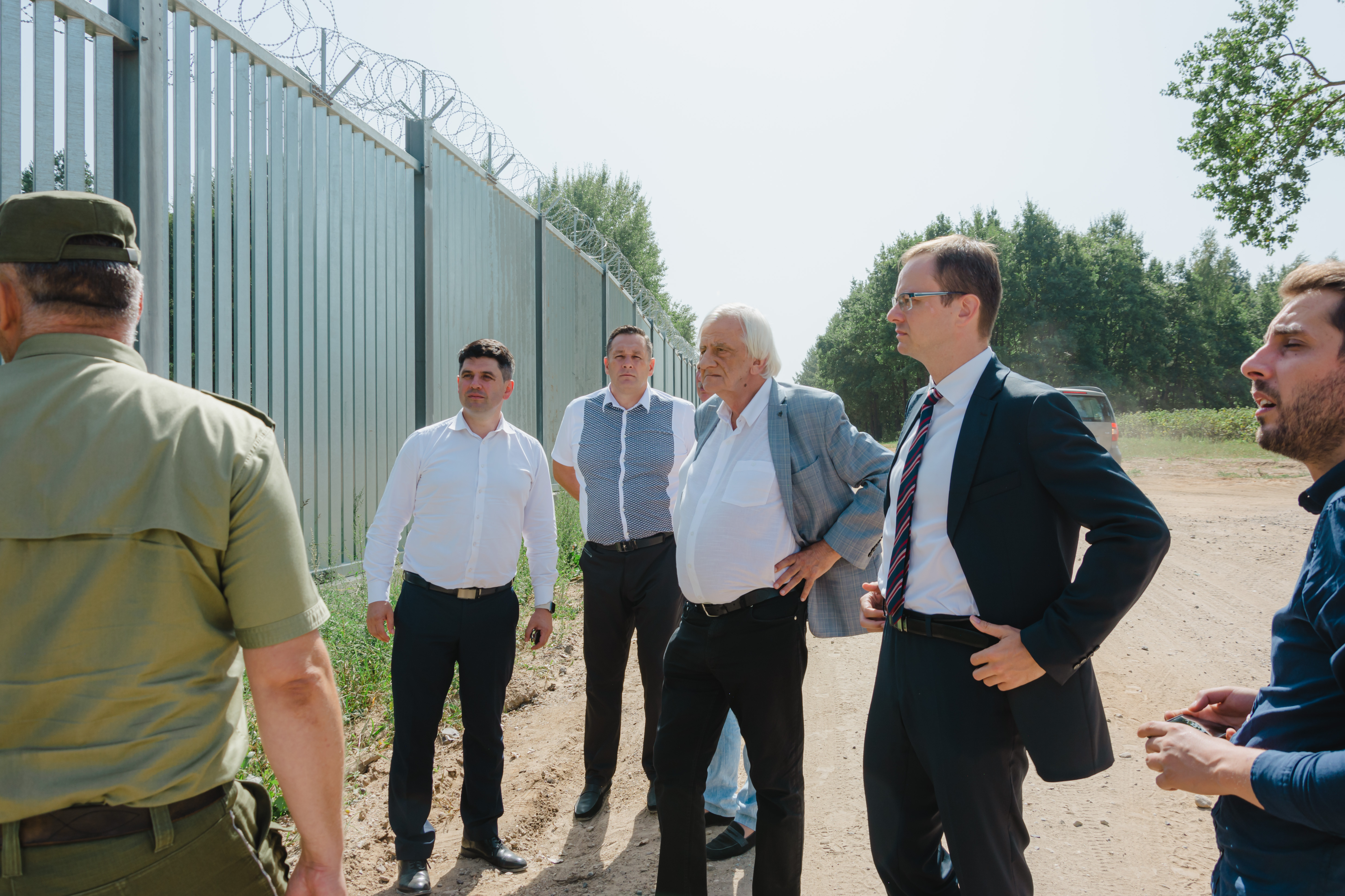 Wizyta w województwie podlaskim była także okazją do odwiedzenia funkcjonariuszy Podlaskiego Oddziału Straży Granicznej, którzy przybliżyli wicemarszałkowi, wiceministrowi, senatorowi Mariuszowi Gromko oraz wicewojewodzie podlaskiemu Tomaszowi Madrasowi sytuację na polsko-białoruskiej granicy oraz postępy w pracach przy budowie zapory granicznej, która ma 186 km długości.