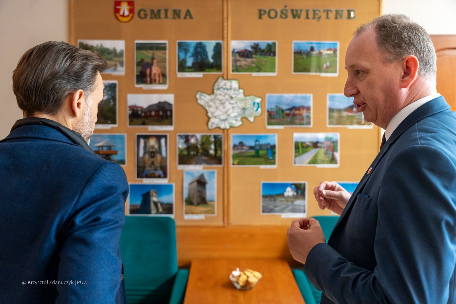Wizyta wojewody w gminie Poświętne. Nowe inwestycje – od dróg po żłobek