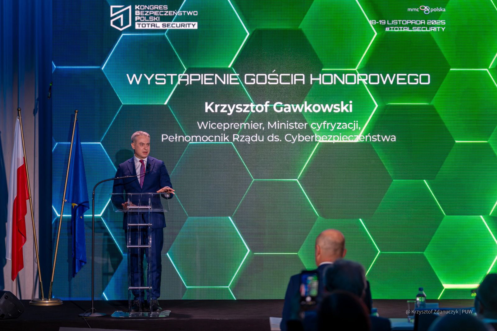 Drugi dzień Kongresu rozpoczął się od wręczenia statuetki Lidera Cyfrowej Odporności wicepremierowi i ministrowi cyfryzacji, pełnomocnikowi rządu ds. cyberbezpieczeństwa – Krzysztofowi Gawkowskiemu.