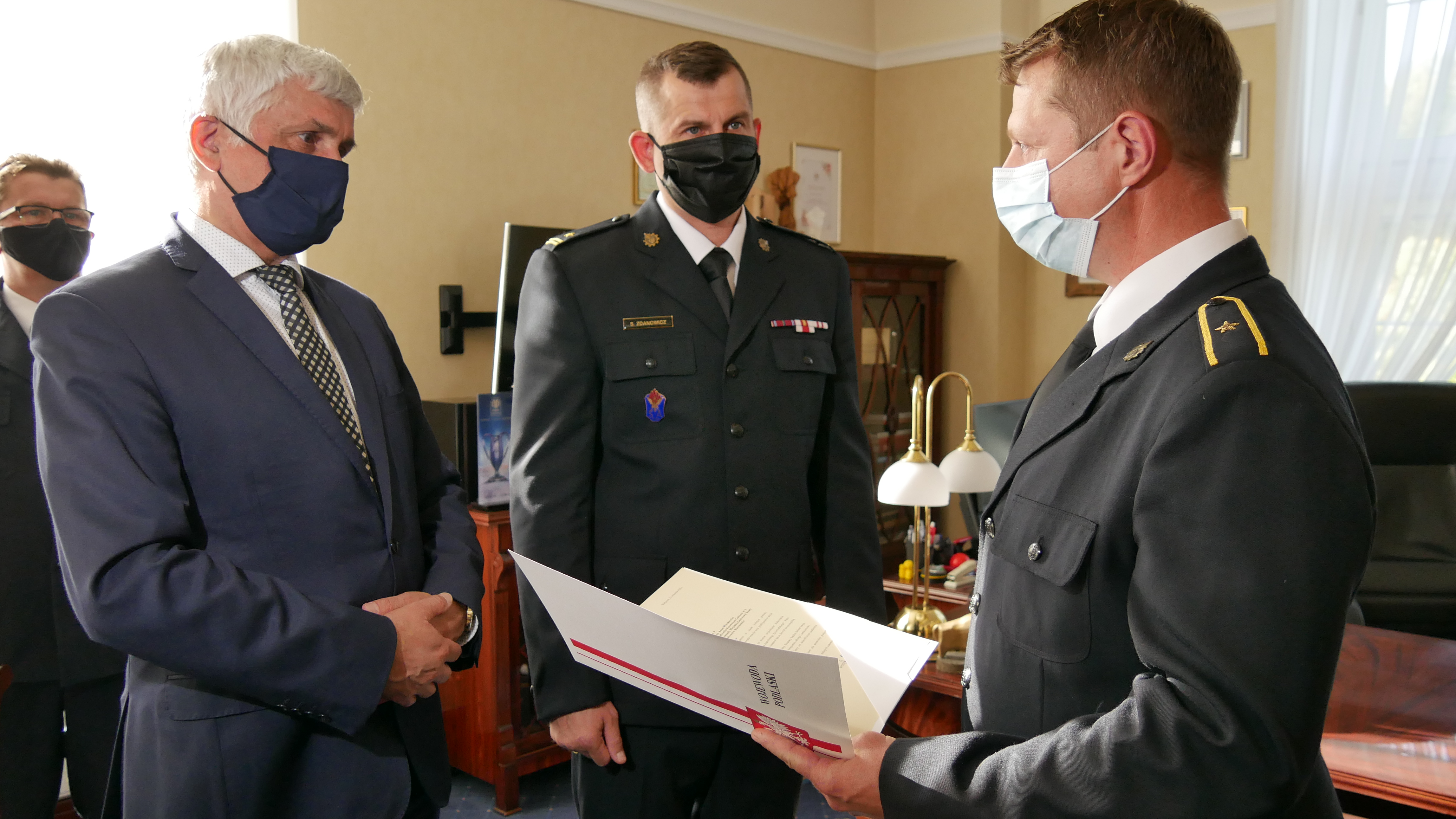Asp. Adam Waszkiewicz przyczynił się do uratowania ludzkiego życia, bez wahania udzielając pierwszej pomocy. Za godną naśladowania postawę otrzymał od wojewody podlaskiego Bohdana Paszkowskiego list gratulacyjny i upominek.