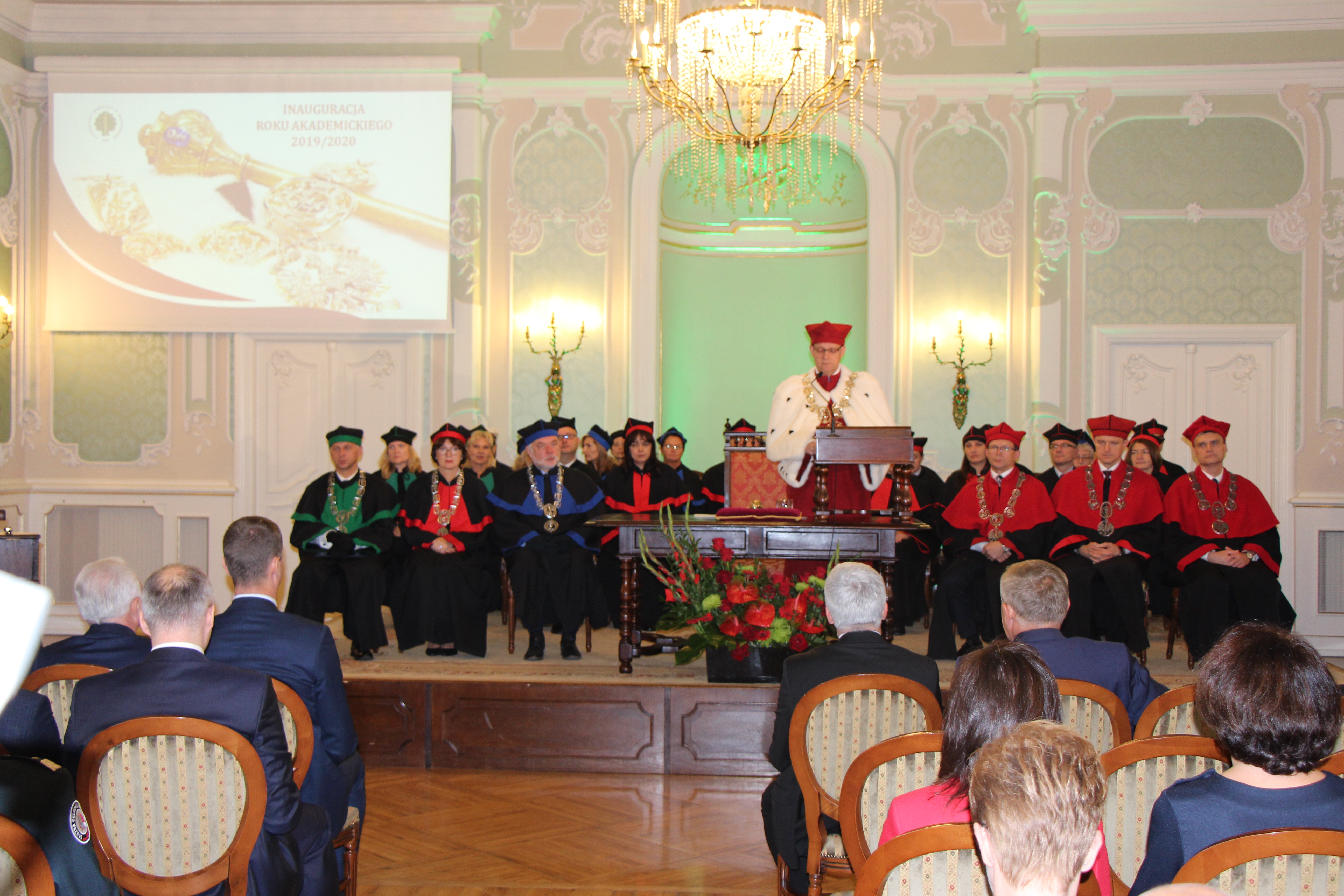 Podczas uroczystości odczytano też listy z życzeniami na nowy rok akademicki od prezydenta RP Andrzeja Dudy, premiera Mateusza Morawieckiego oraz ministra nauki Jarosława Gowina.