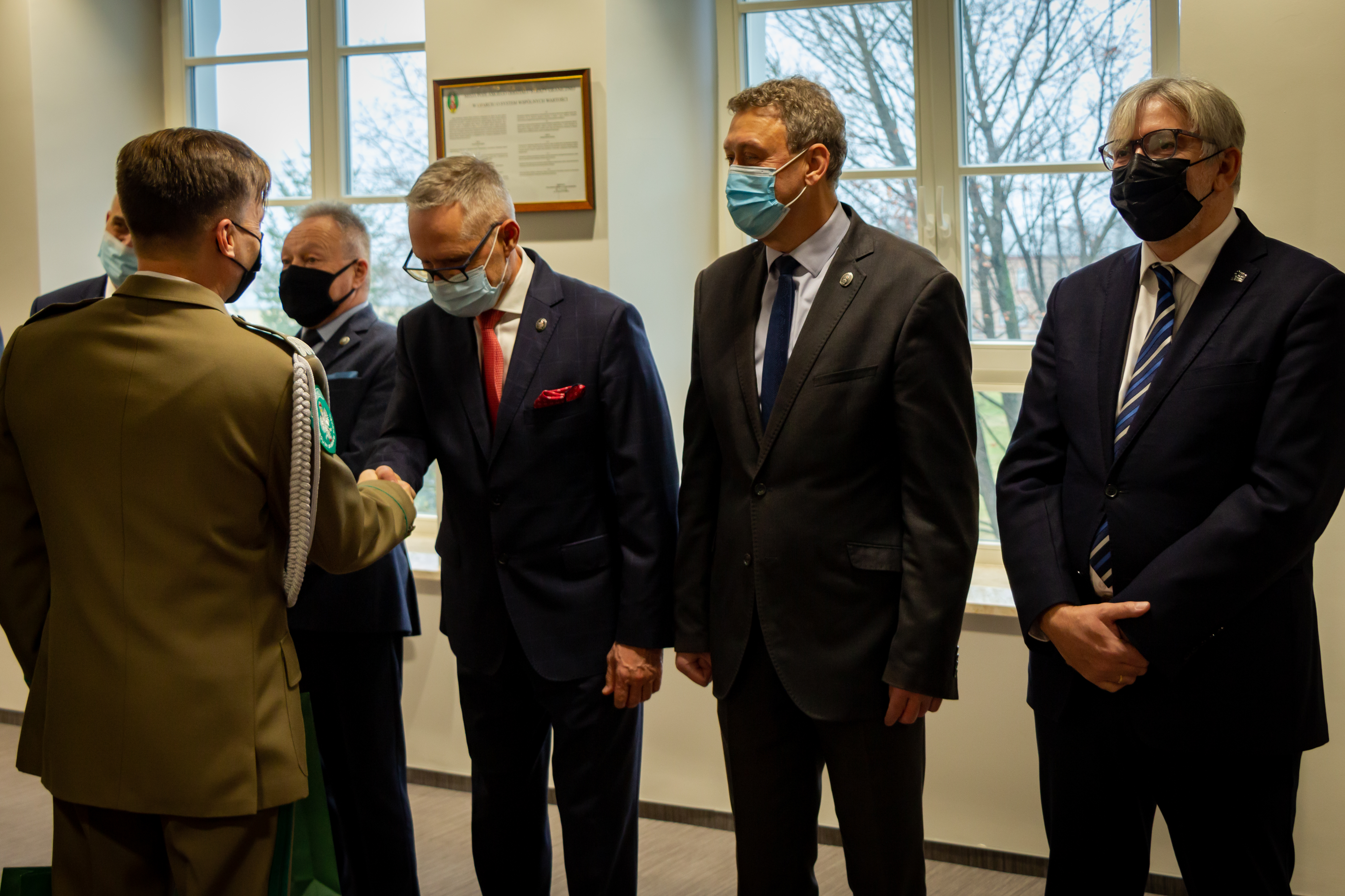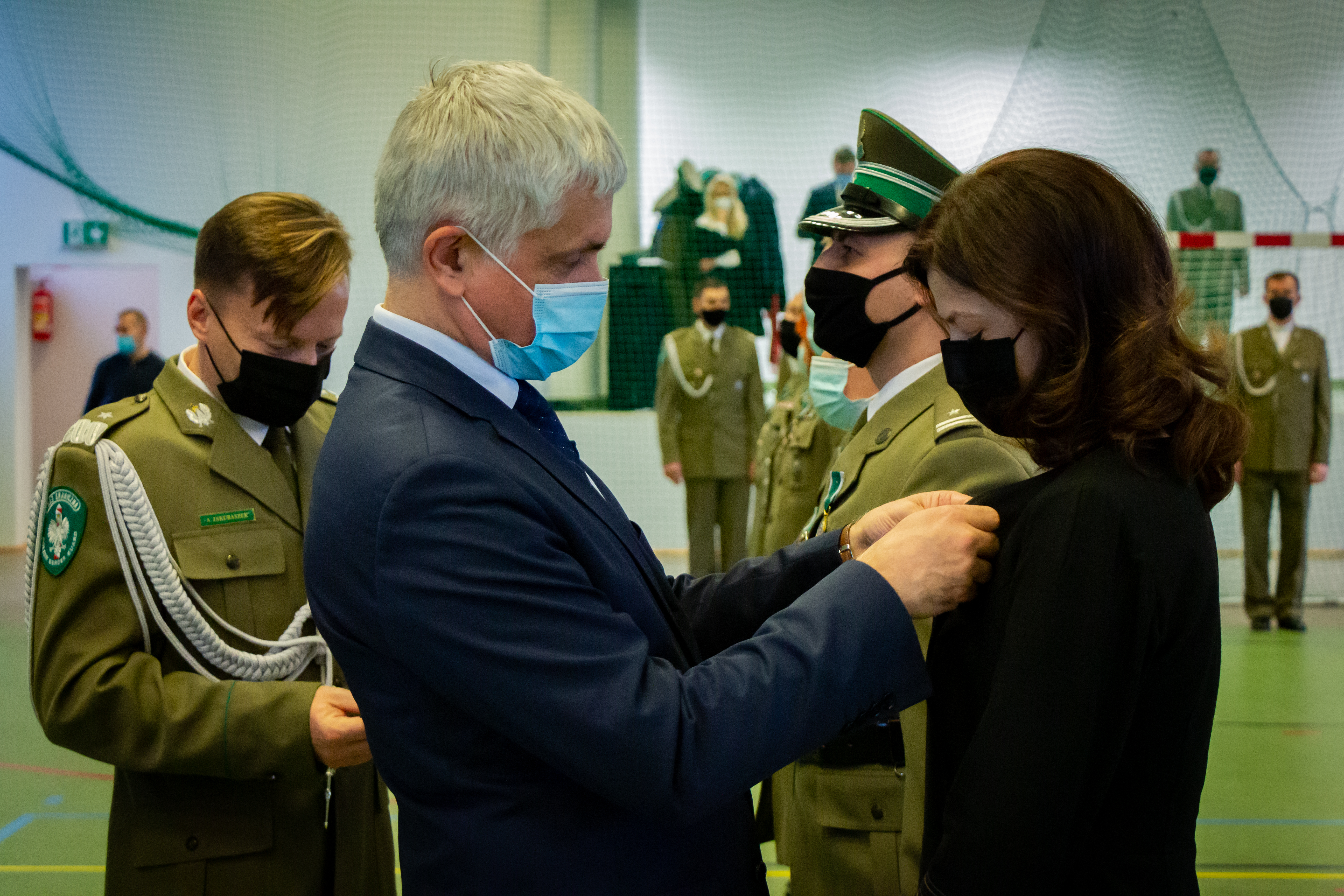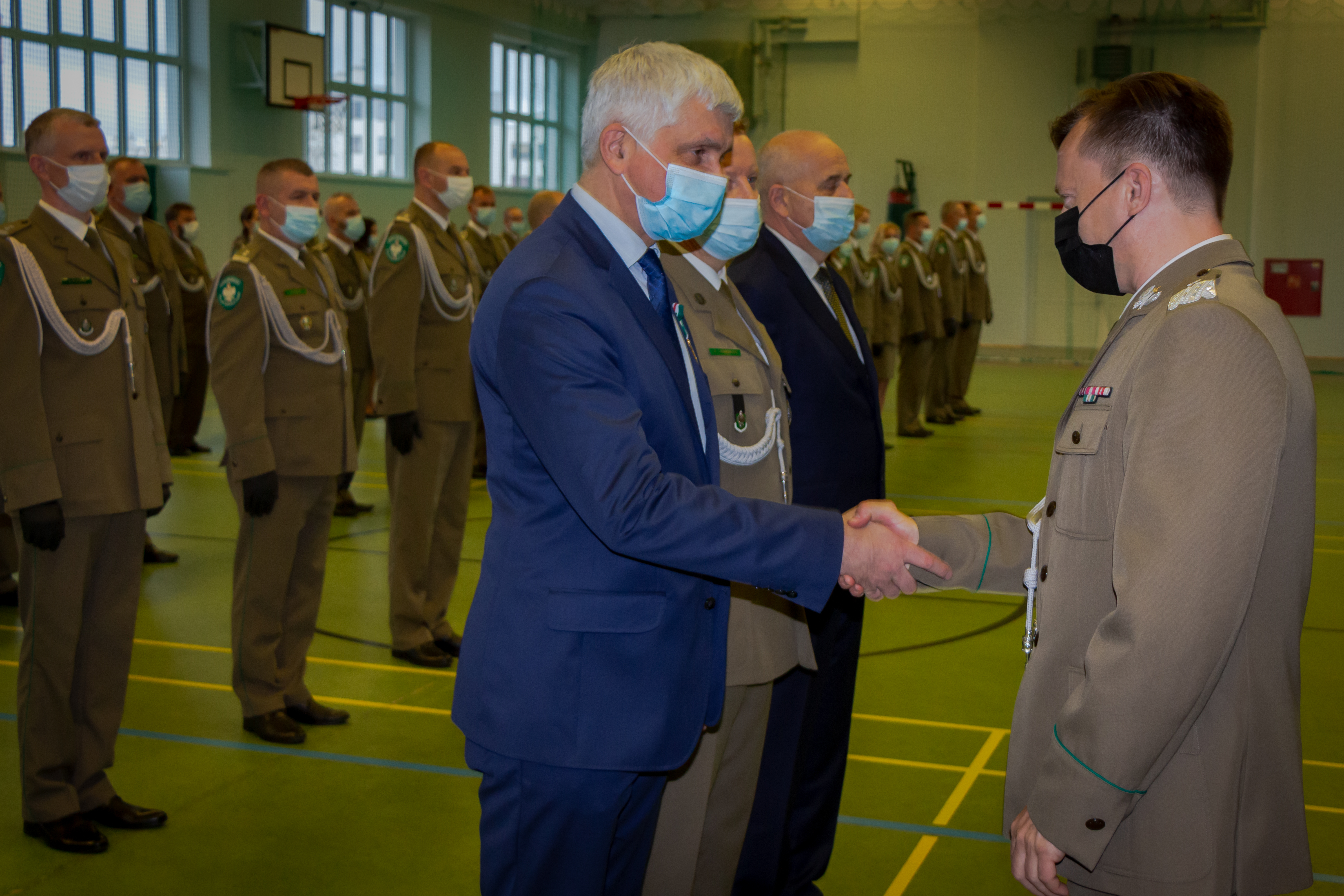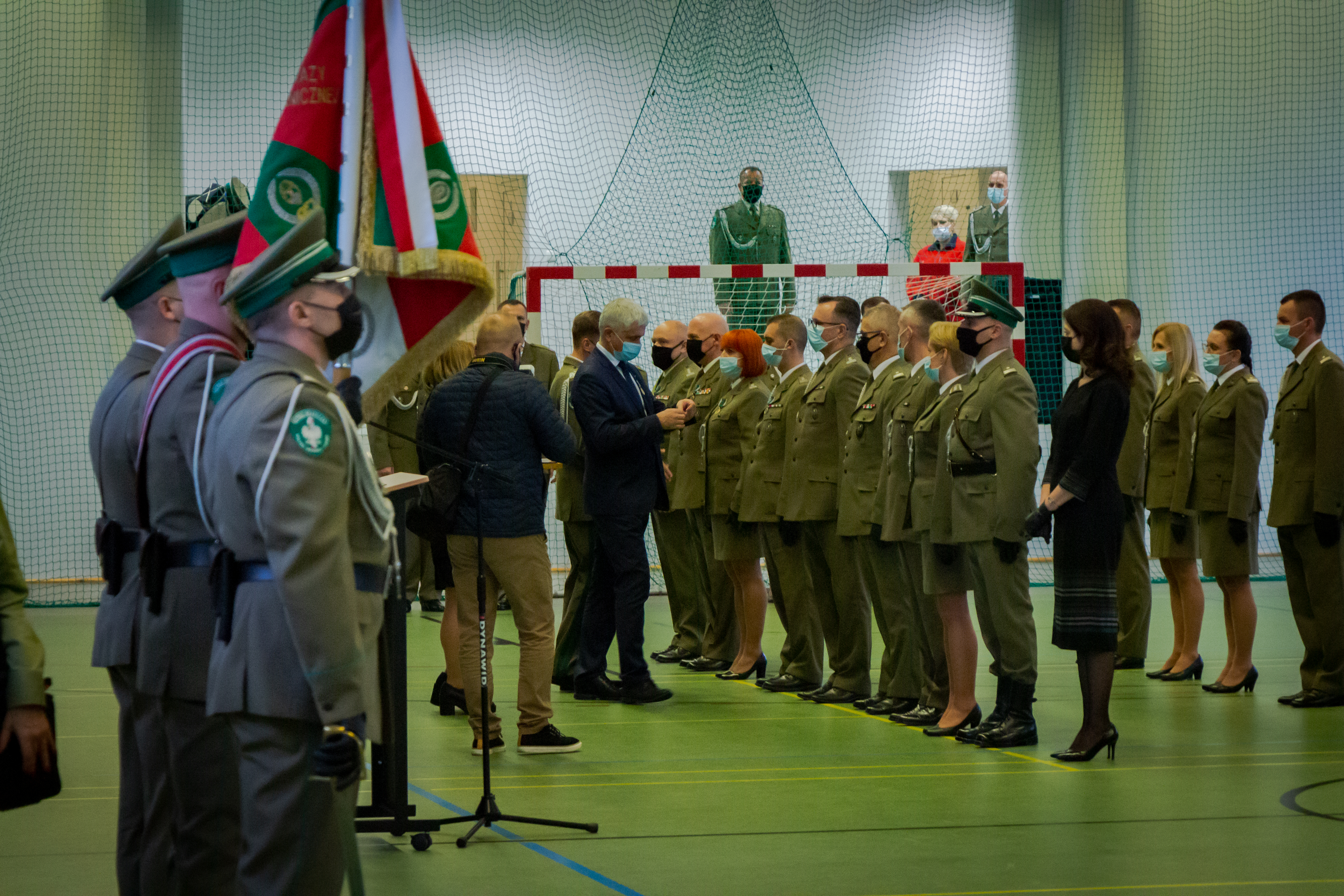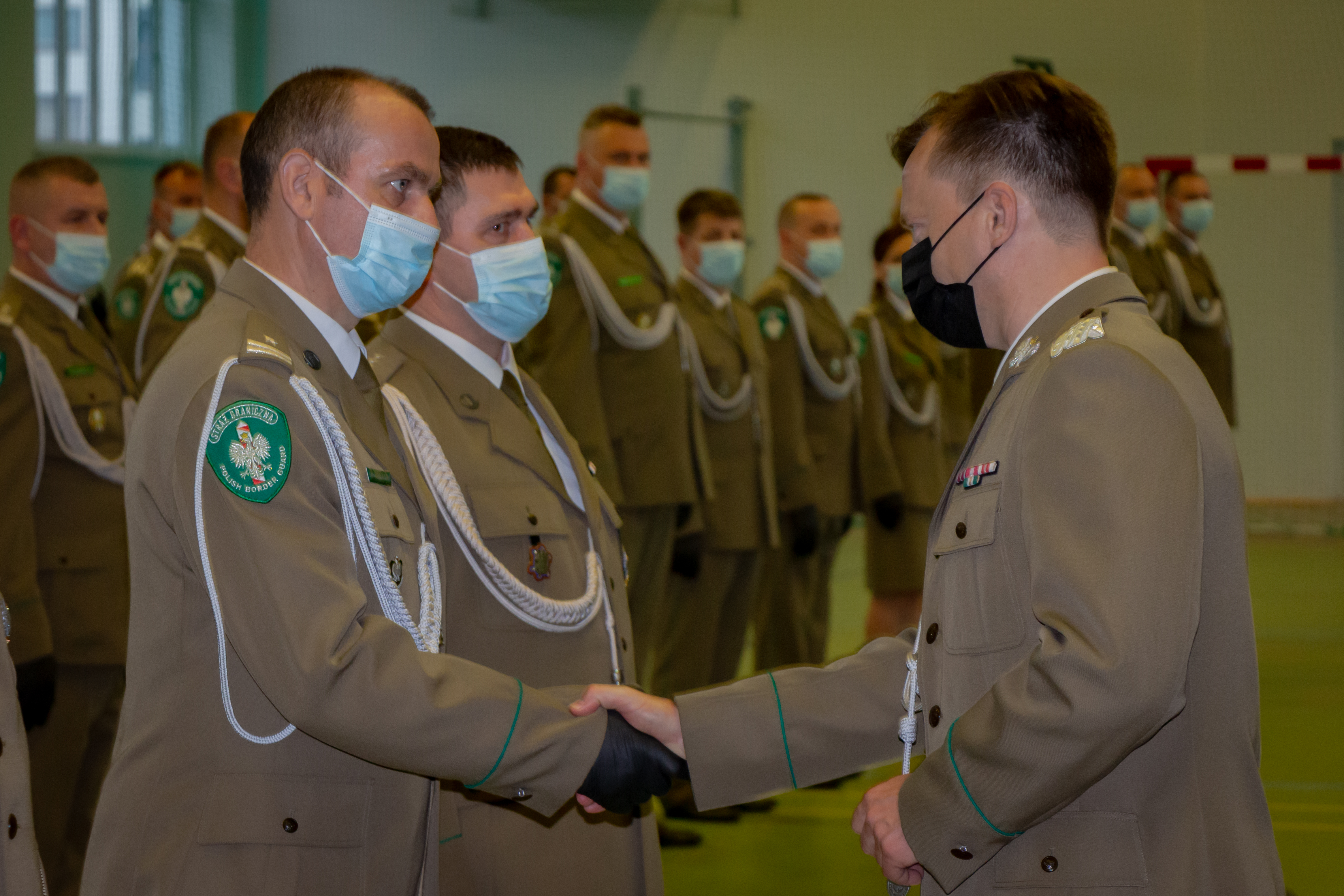 Piątkową uroczystość rozpoczął komendant Podlaskiego Oddziału Straży Granicznej gen. bryg. SG Andrzej Jakubaszek witając przybyłych gości. Pogratulował przede wszystkim wyróżnionym i jednocześnie podziękował wszystkim funkcjonariuszom i pracownikom za odpowiedzialną i rzetelną służbę i pracę, za codzienny trud i gotowość do najwyższych poświęceń. Słowa wdzięczności skierował również do służb wspierających Straż Graniczną na co dzień w bezpośredniej ochronie granicy polsko-białoruskiej.
