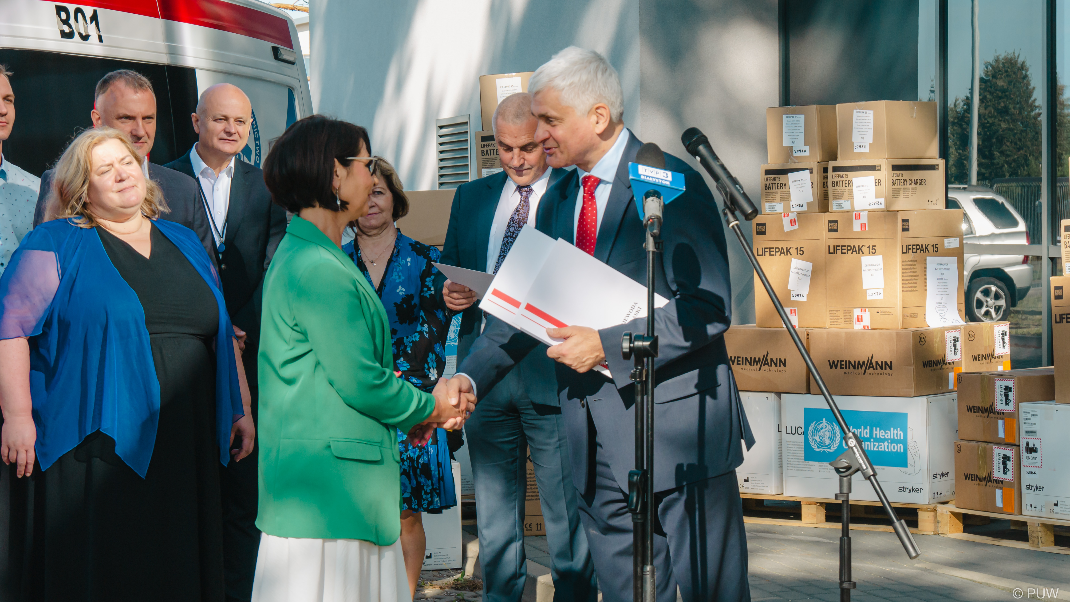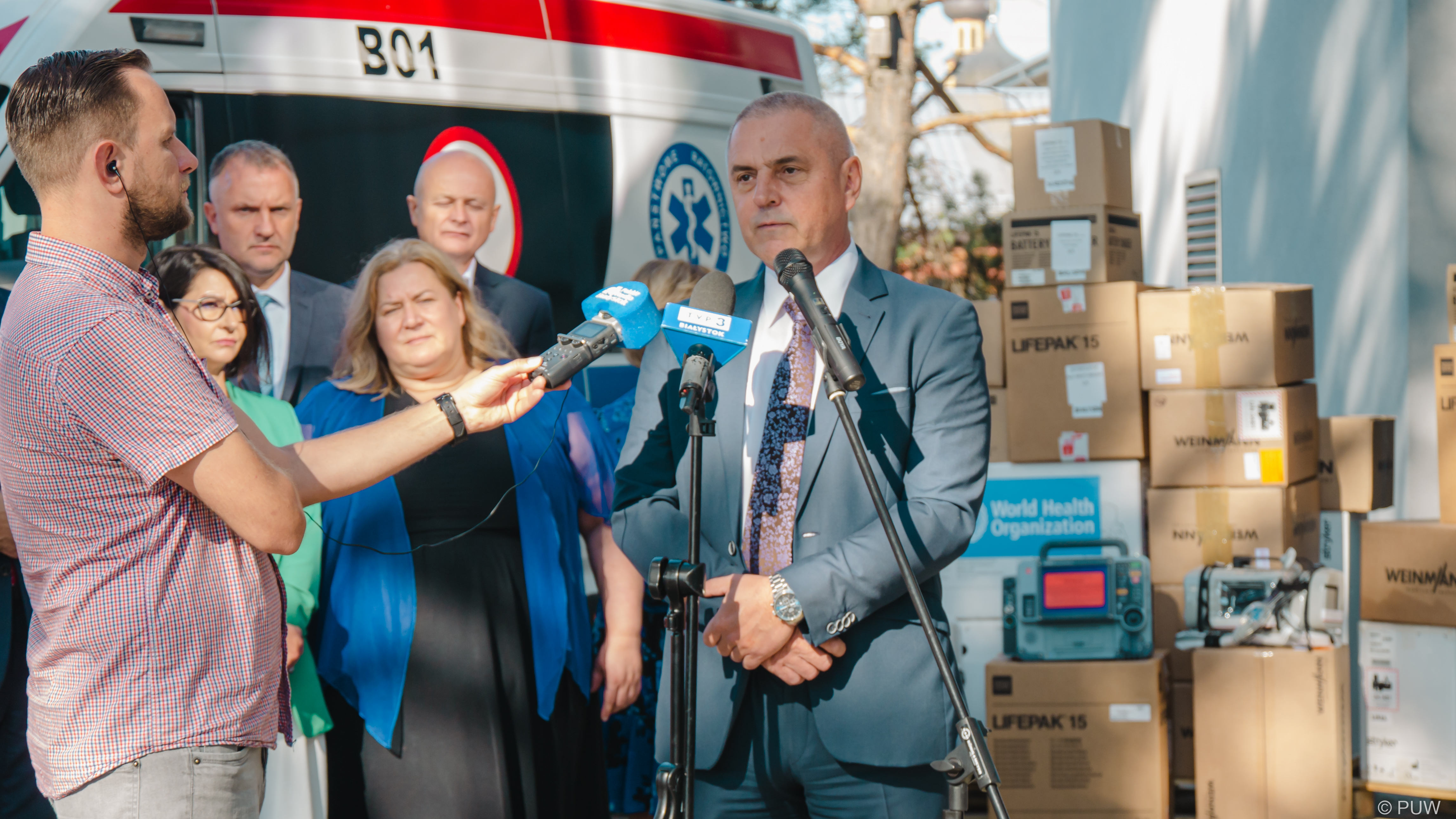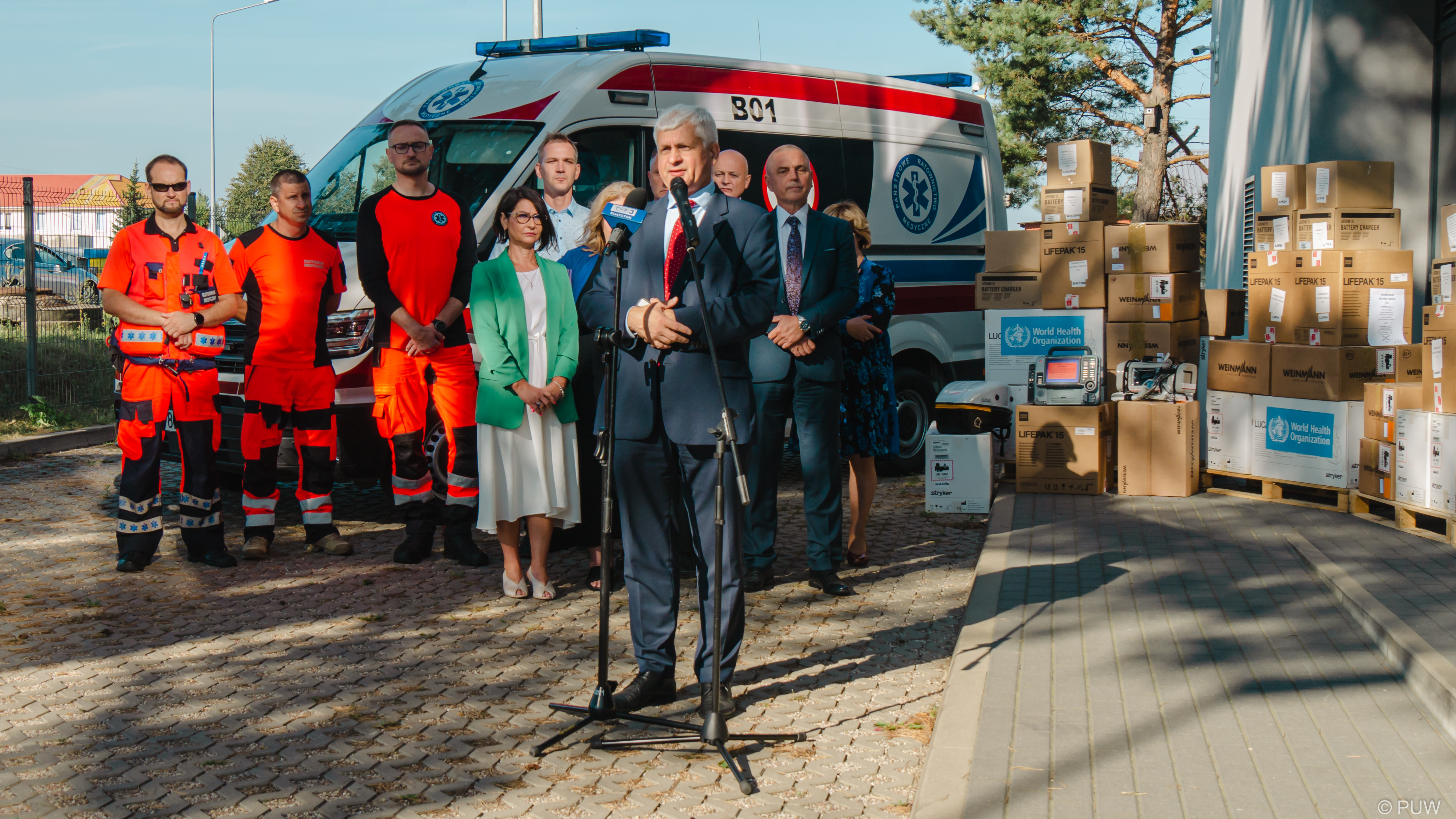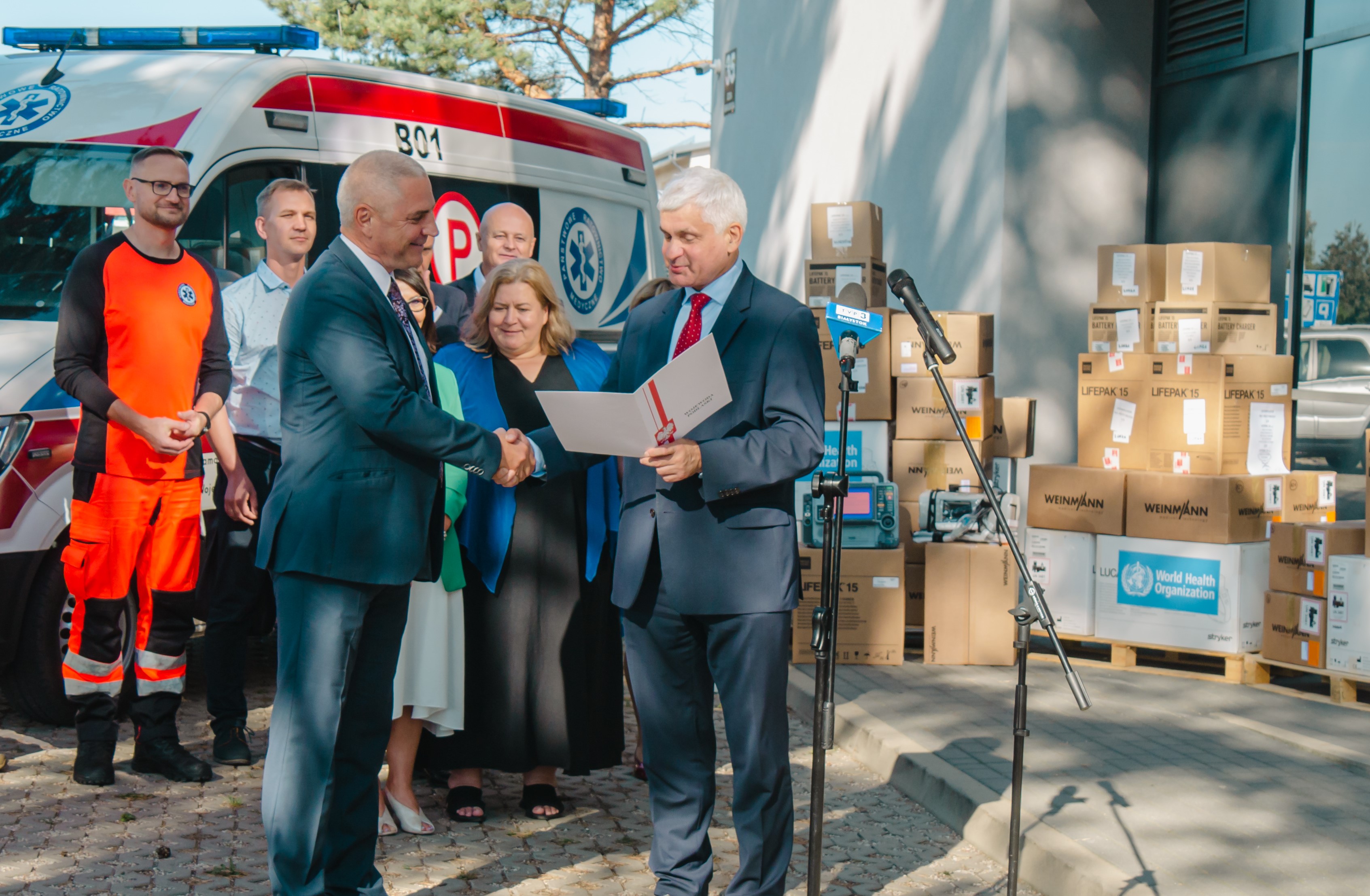 Ministerstwo Zdrowia sprzęt otrzymało ze Światowej Organizacji Zdrowia (WHO). To wsparcie Polski w związku z konfliktem zbrojnym na Ukrainie oraz działaniami podejmowanymi na rzecz uchodźców. Sprzęt medyczny trafi do zespołów ratownictwa medycznego czynnie zaangażowanych w udzielanie pomocy osobom przybyłym na terytorium Rzeczypospolitej w wyniku wojny.