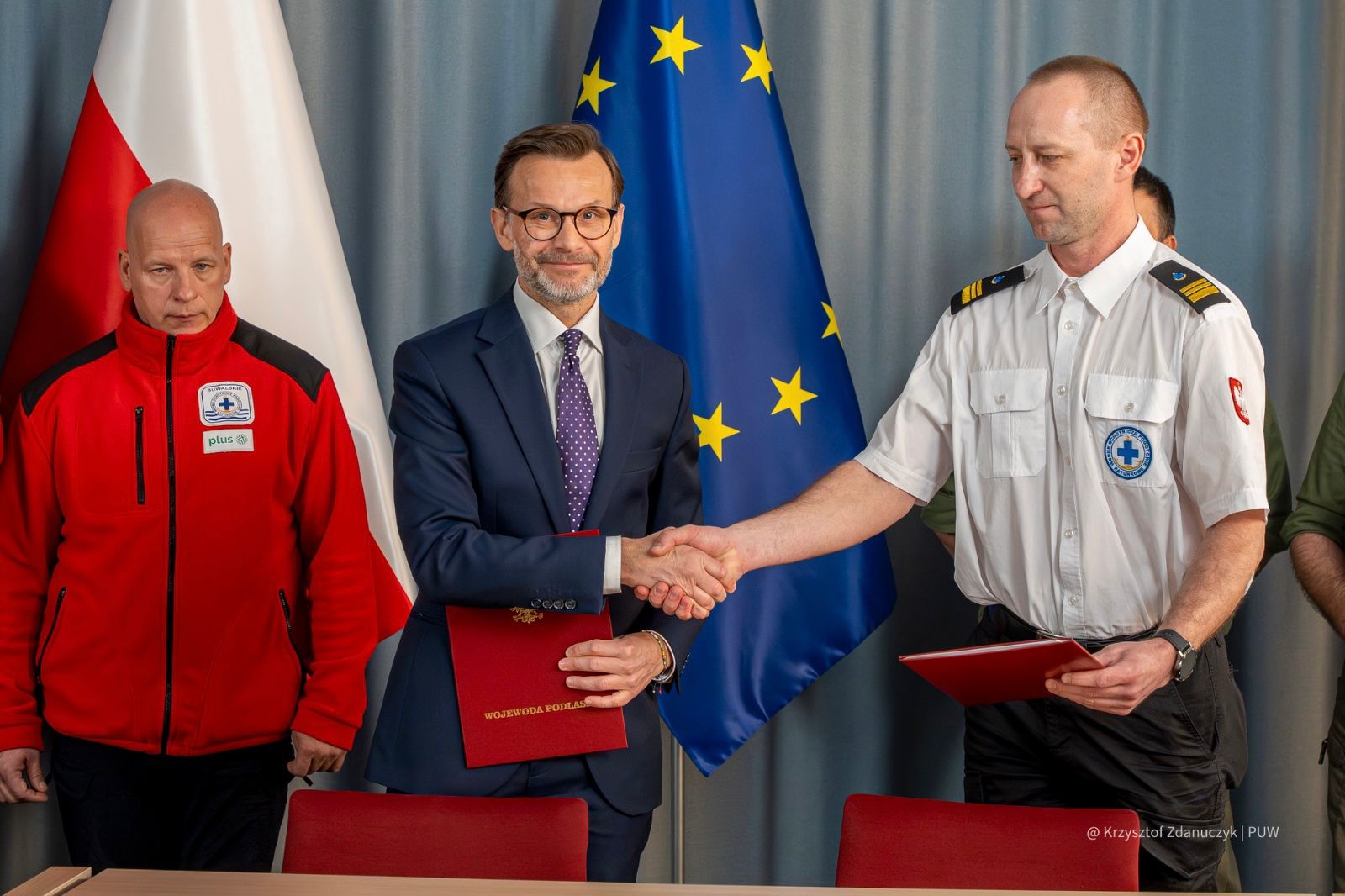 Na spotkaniu w Podlaskim Urzędzie Wojewódzkim umowy z wojewodą podpisali prezesi poszczególnych WOPRów.