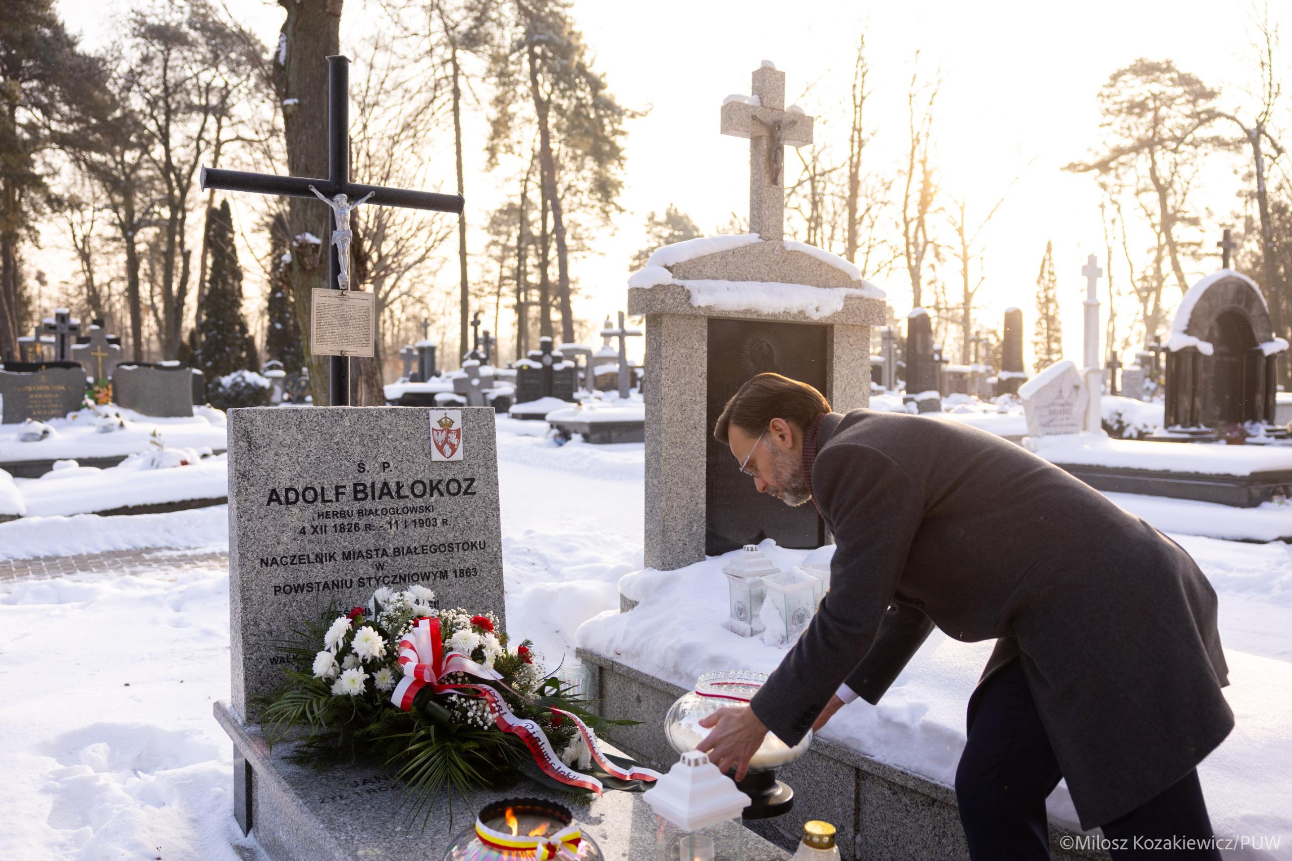 Wojewoda złożył kwiaty i zapalił znicz na grobie Adolfa Białokoza, naczelnika Białegostoku w czasie powstania styczniowego. Dowódca spoczywa na białostockim Cmentarzu Farnym.