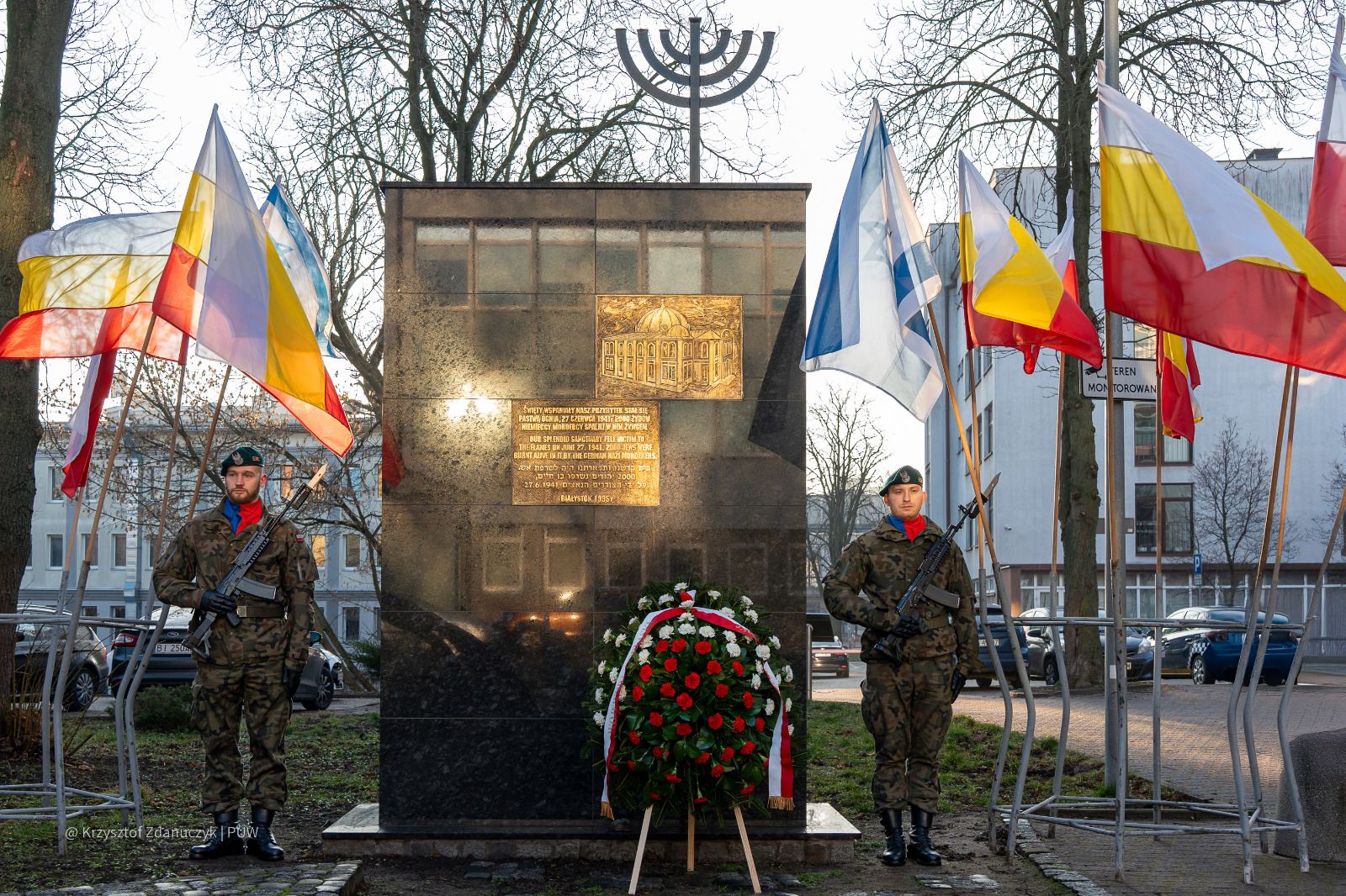 Jacek Brzozowski, w asyście przedstawicieli służb mundurowych, o poranku 27 stycznia złożył wieniec pod Pomnikiem Wielkiej Synagogi w Białymstoku. To miejsce jednej z pierwszych zbrodni Holokaustu na Podlasiu, które nastąpiły po ataku III Rzeszy na Związek Sowiecki. 27 czerwca 1941 roku, po wkroczeniu do Białegostoku, hitlerowcy spalili Synagogę, a wraz z nią – całą żydowską dzielnicę Szulhojt. Co najmniej 2000 białostockich Żydów zginęło w tych dniach w pożarze Synagogi i ulicznych masakrach.