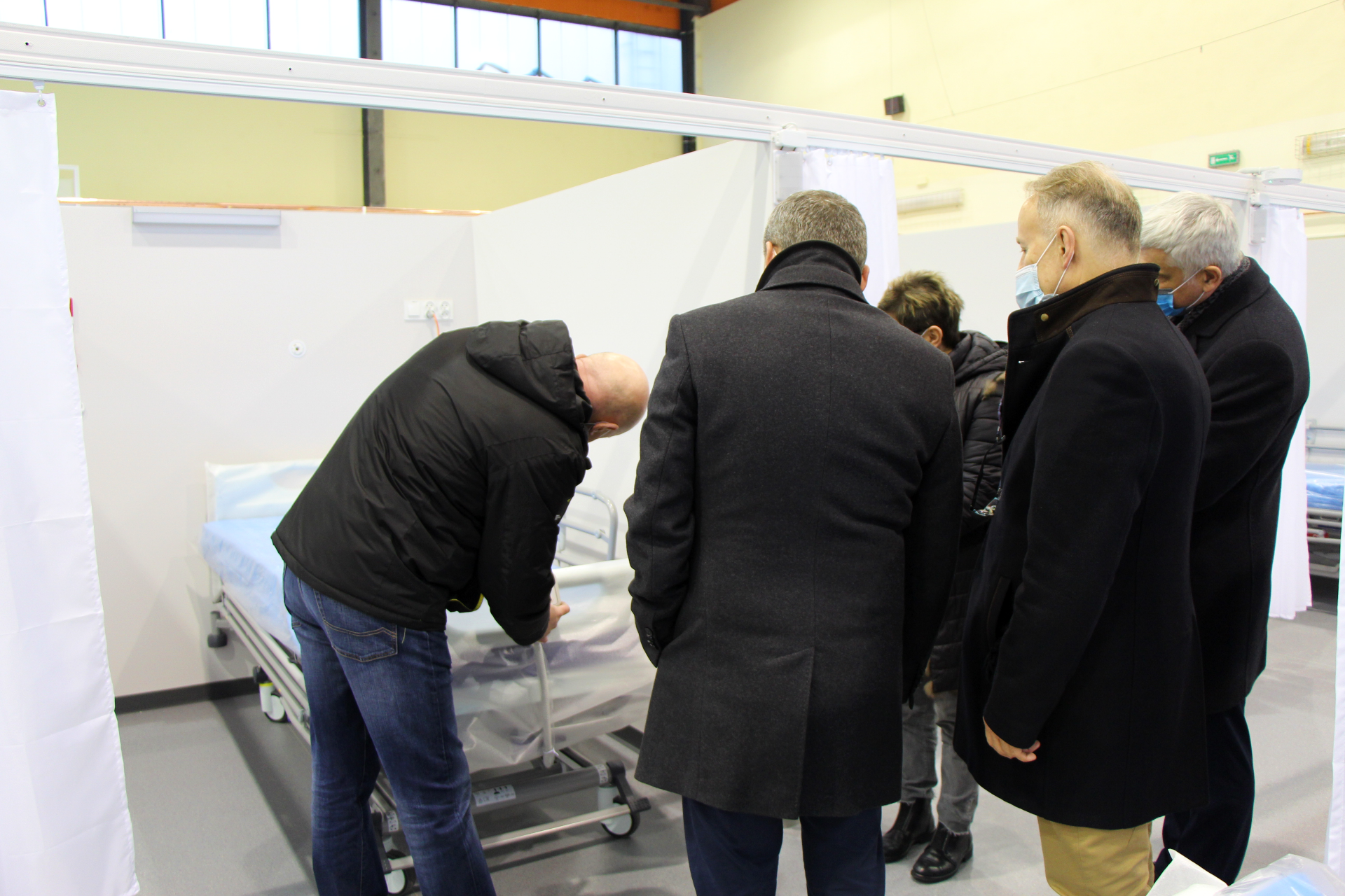 Wojewoda podlaski Bohdan Paszkowski, przedstawiciele Wydziału Infrastruktury PUW oraz Uniwersyteckiego Szpitala Klinicznego w Białymstoku wizytowali w piątek (18.12) szpital tymczasowy, który powstał w hali sportowej Uniwersytetu Medycznego w Białymstoku przy ul. Wołodyjowskiego. Placówka została już wyposażona m.in. w ponad 70 łóżek szpitalnych z Agencji Rezerw Materiałowych.