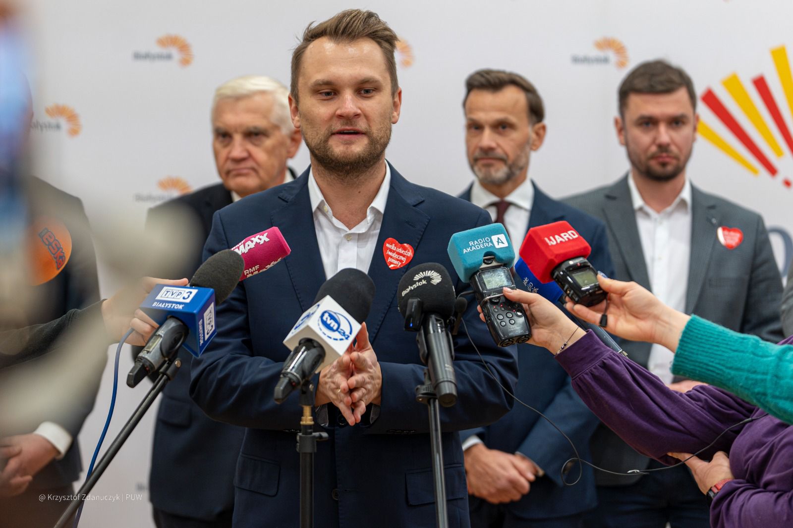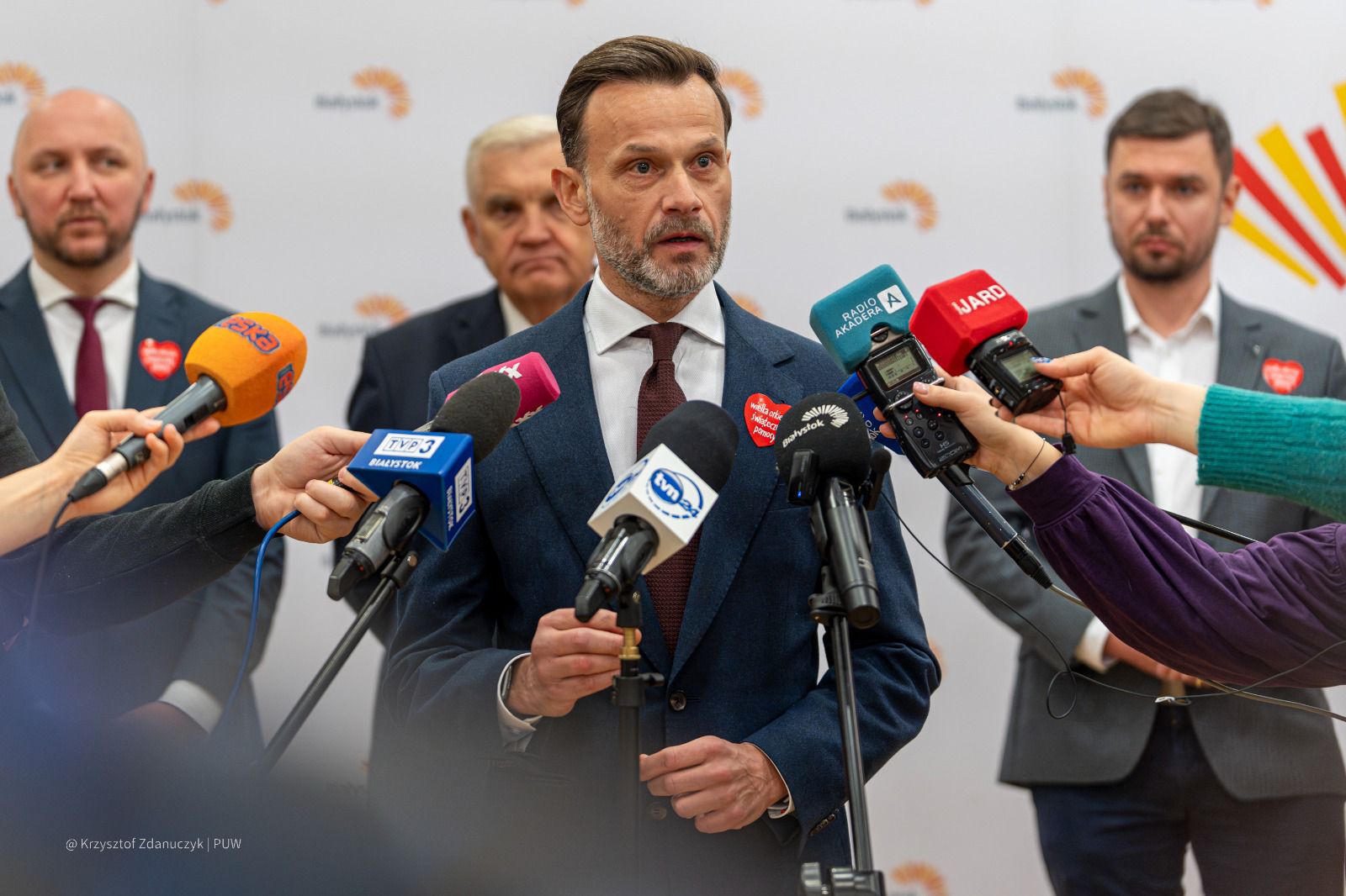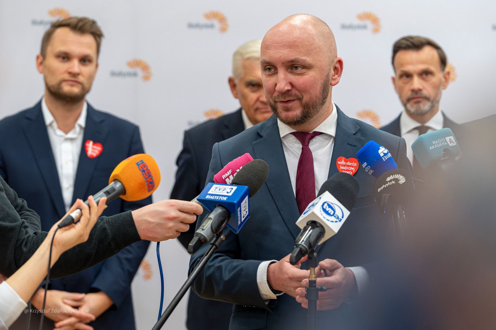 Na konferencji w Centrum Aktywności Społecznej, które będzie siedzibą białostockiego sztabu 33. Finału WOŚP, wojewoda Jacek Brzozowski w towarzystwie prezydenta Białegostoku Tadeusza Truskolaskiego, posła Krzysztofa Truskolaskiego i marszałka Łukasza Prokoryma zachęcał do udziału w tej charytatywnej akcji