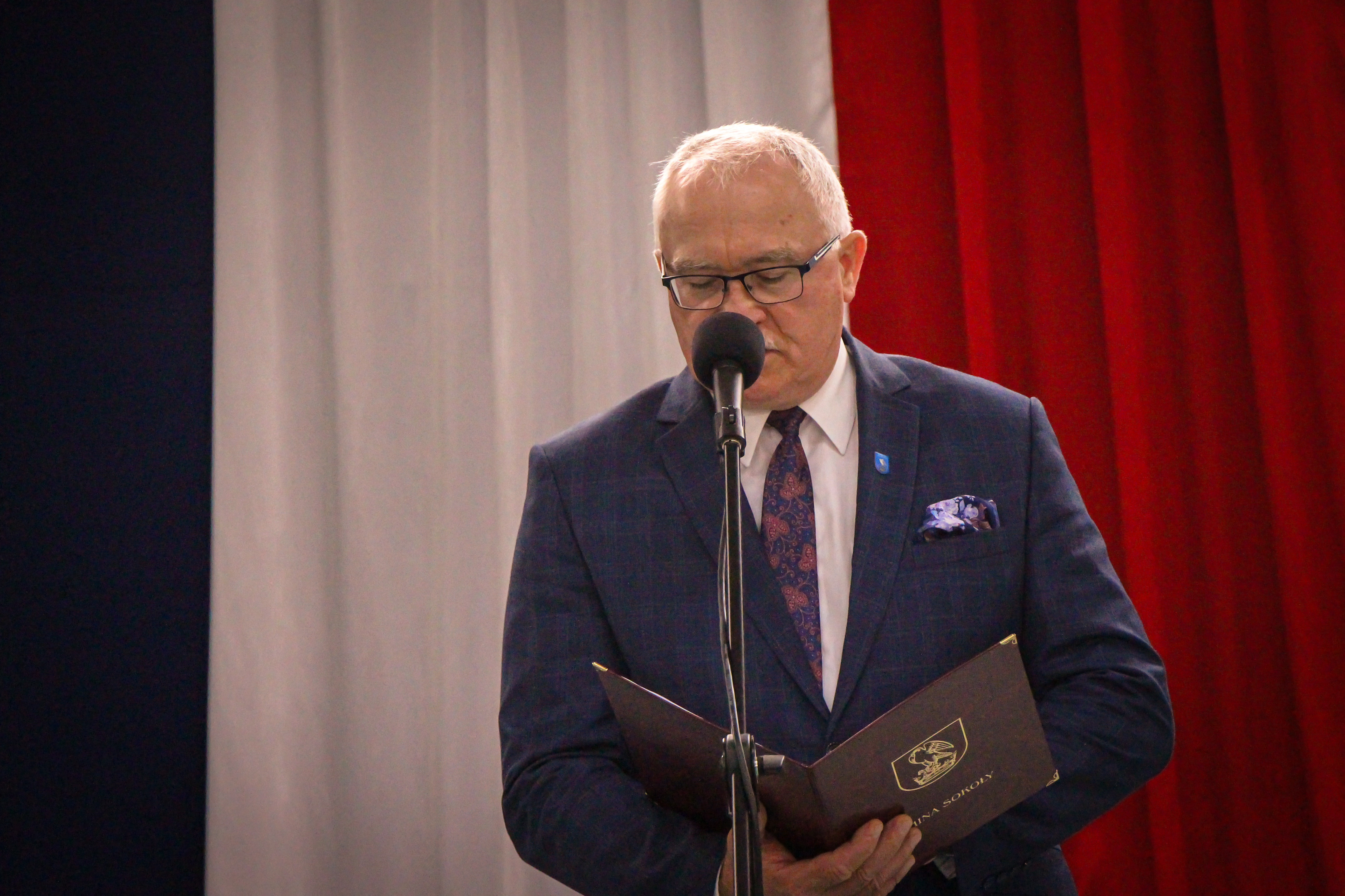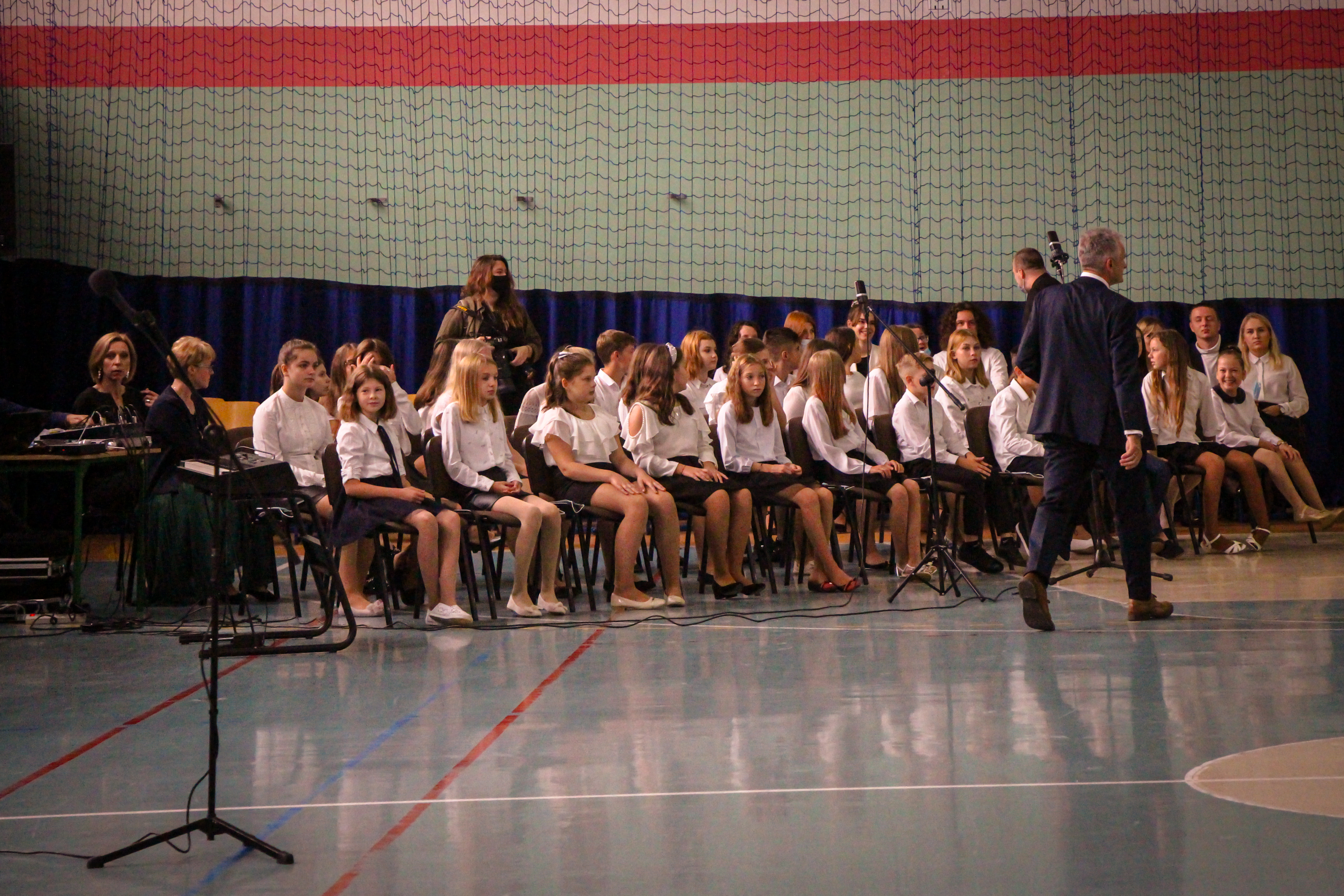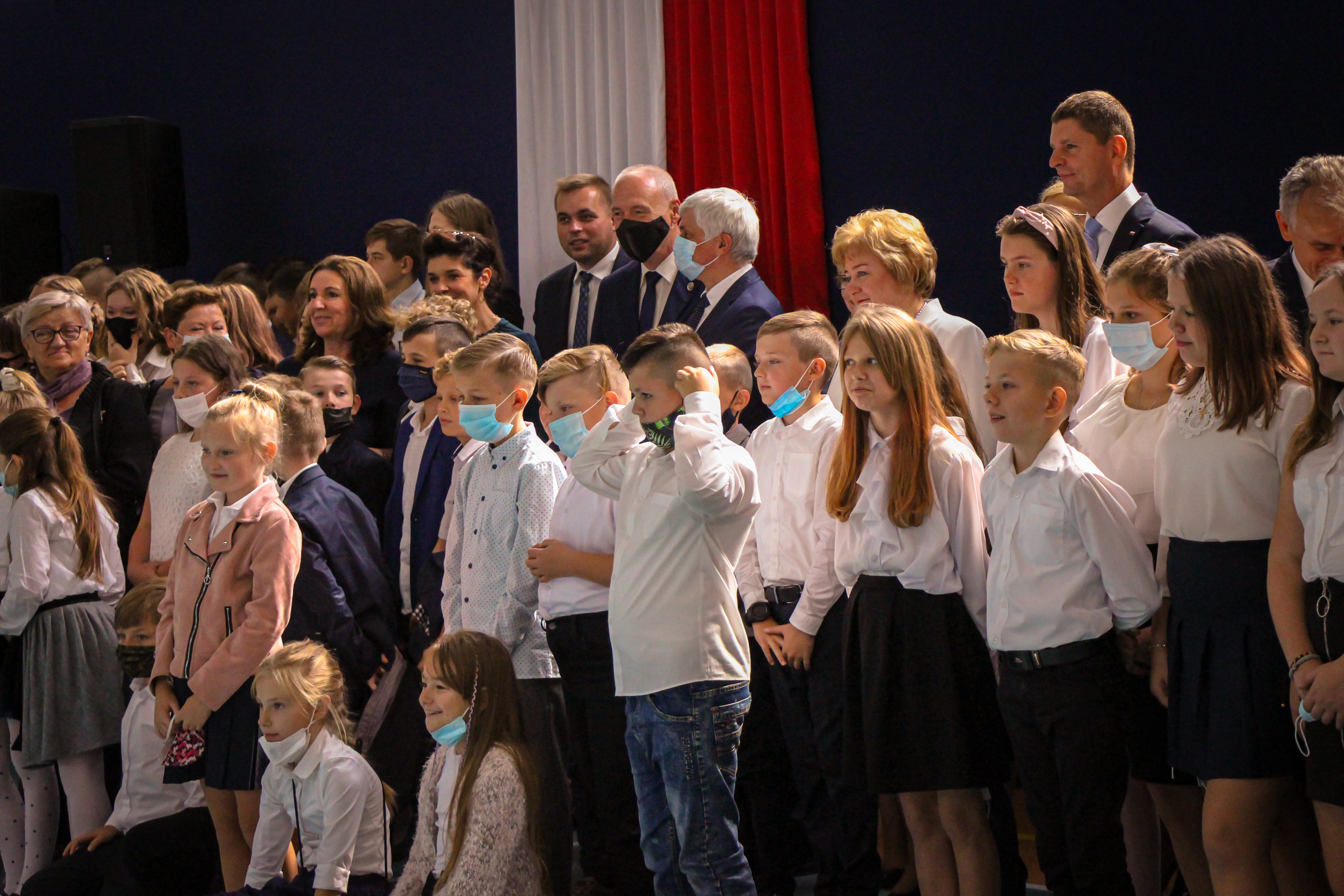 Józef Zajkowski, wójt gminy Sokoły, nakreślił zgromadzonym dzieciom i zebranym gościom historię szkoły, zaś wiceminister Piontkowski przedłożył krótką lekcję historii.