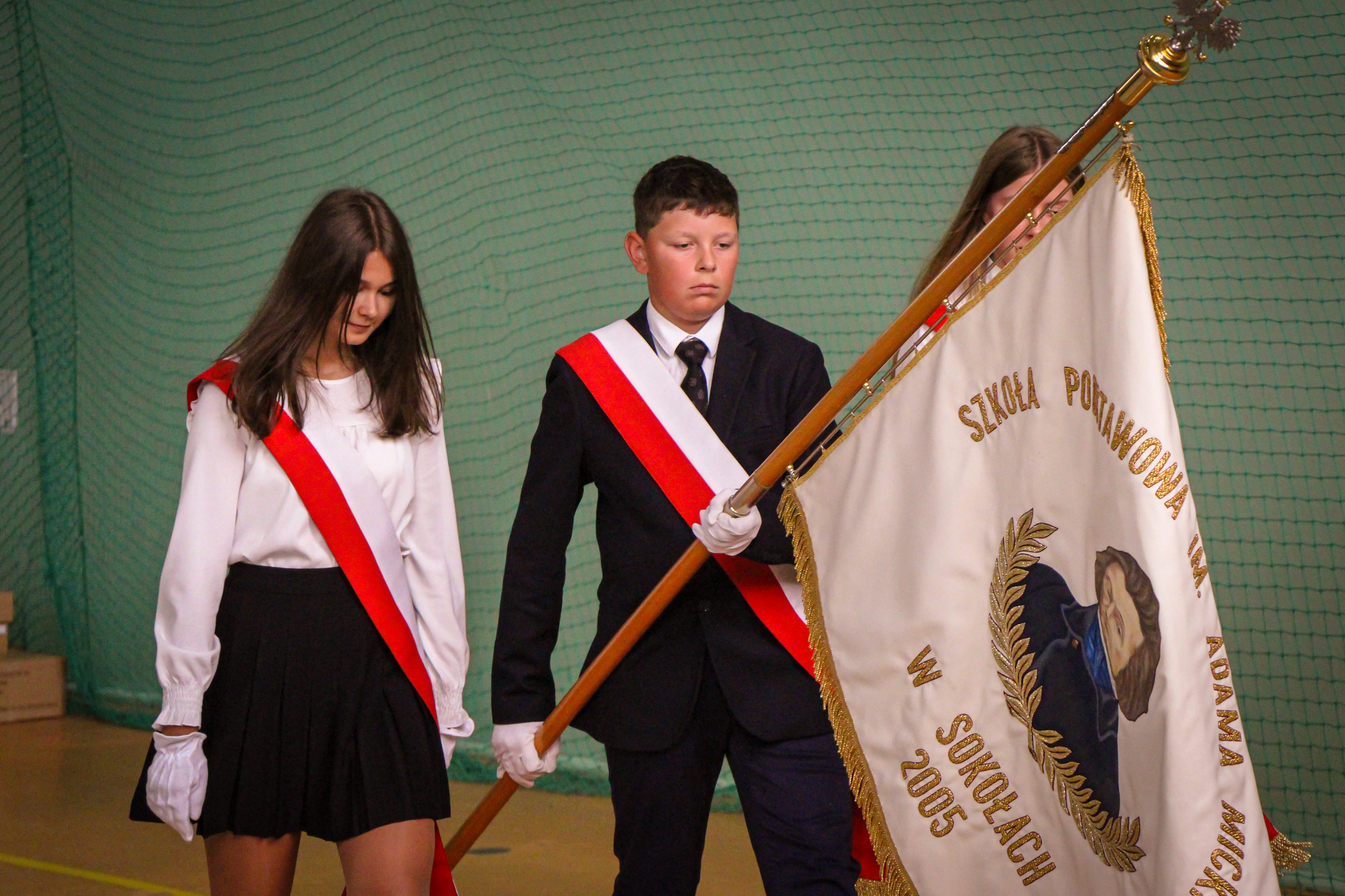 Uczniów Szkoły Podstawowej im. Adama Mickiewicza powitał niecodzienny apel, ponieważ towarzyszyli im tego dnia przedstawiciele władz centralnych, wojewódzkich i lokalnych, czy parlamentarzyści. W uroczystości wzięli udział ponadto m.in. podlaska kurator oświaty Beata Pietruszka, ks. bp. Tadeusz Bronakowski, dyrektor OKE w Łomży Barbara Muzyk, przewodnicząca NSZZ "Solidarność" Agnieszka Rzeszewska. Nie mogło zabraknąć przedstawicieli dyrekcji placówki, kadry nauczycielskiej oraz rodziców.