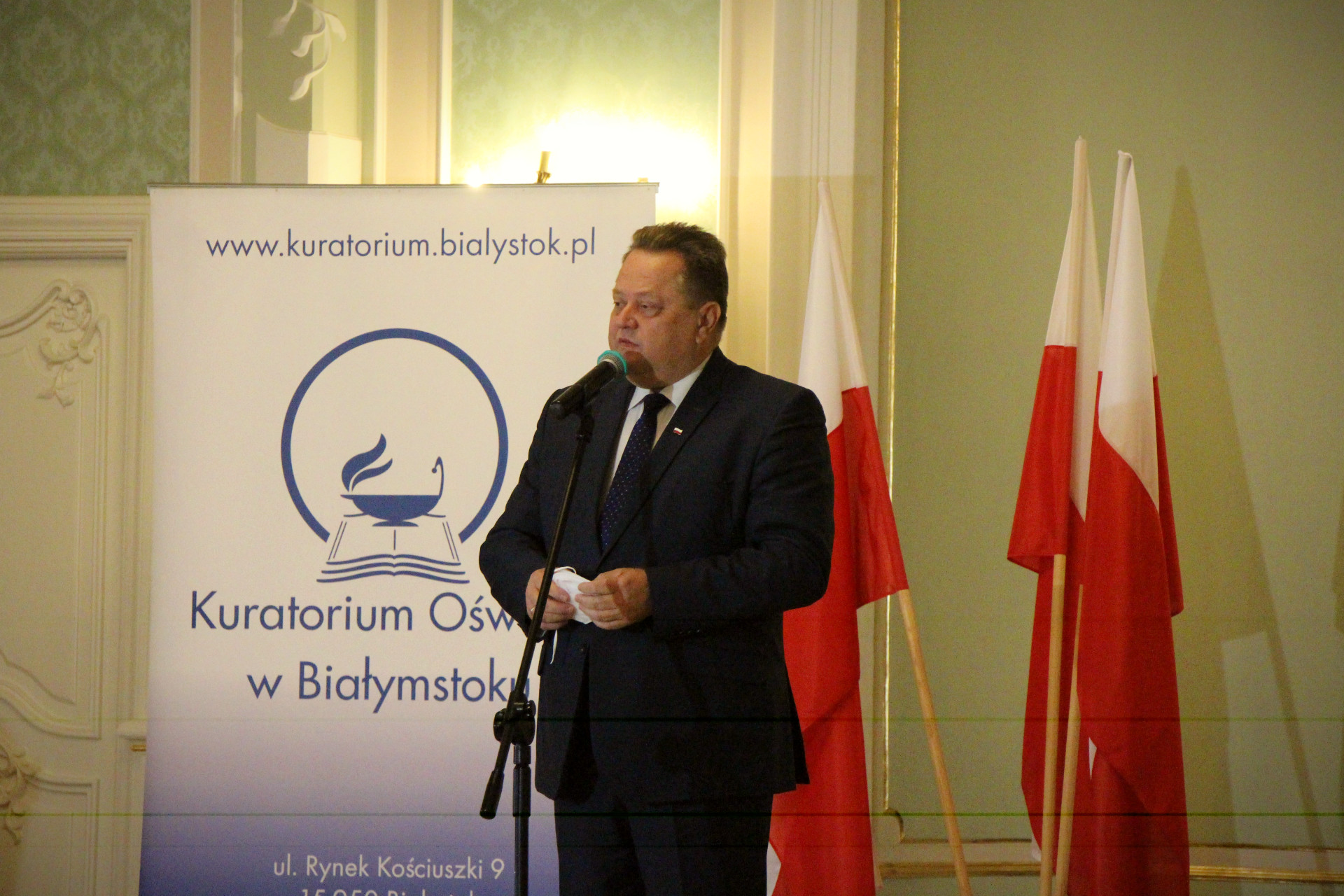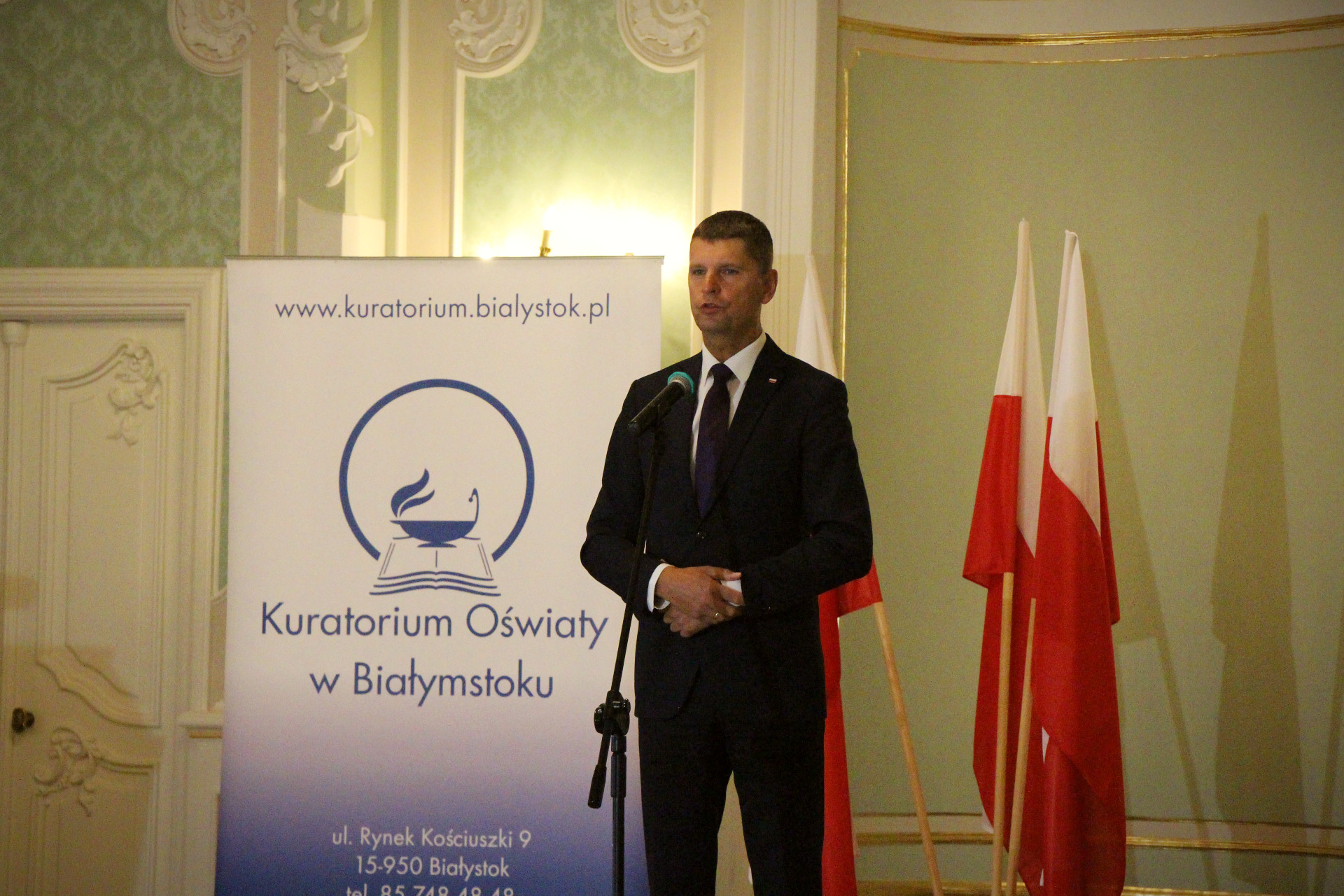 W poniedziałek (11.10) w Auli Magna Pałacu Branickich w Białymstoku odbyła się pierwsza część wojewódzkich obchodów Dnia Edukacji Narodowej z udziałem Sekretarza Stanu w Ministerstwie Edukacji i Nauki Dariusza Piontkowskiego, wojewody podlaskiego Bohdana Paszkowskiego oraz wicewojewody Tomasza Madrasa. Podczas uroczystości zasłużeni nauczyciele oraz pracownicy oświaty otrzymali odznaczenia państwowe, medale, nagrody Ministra Edukacji Narodowej oraz nagrody Podlaskiego Kuratora Oświaty.