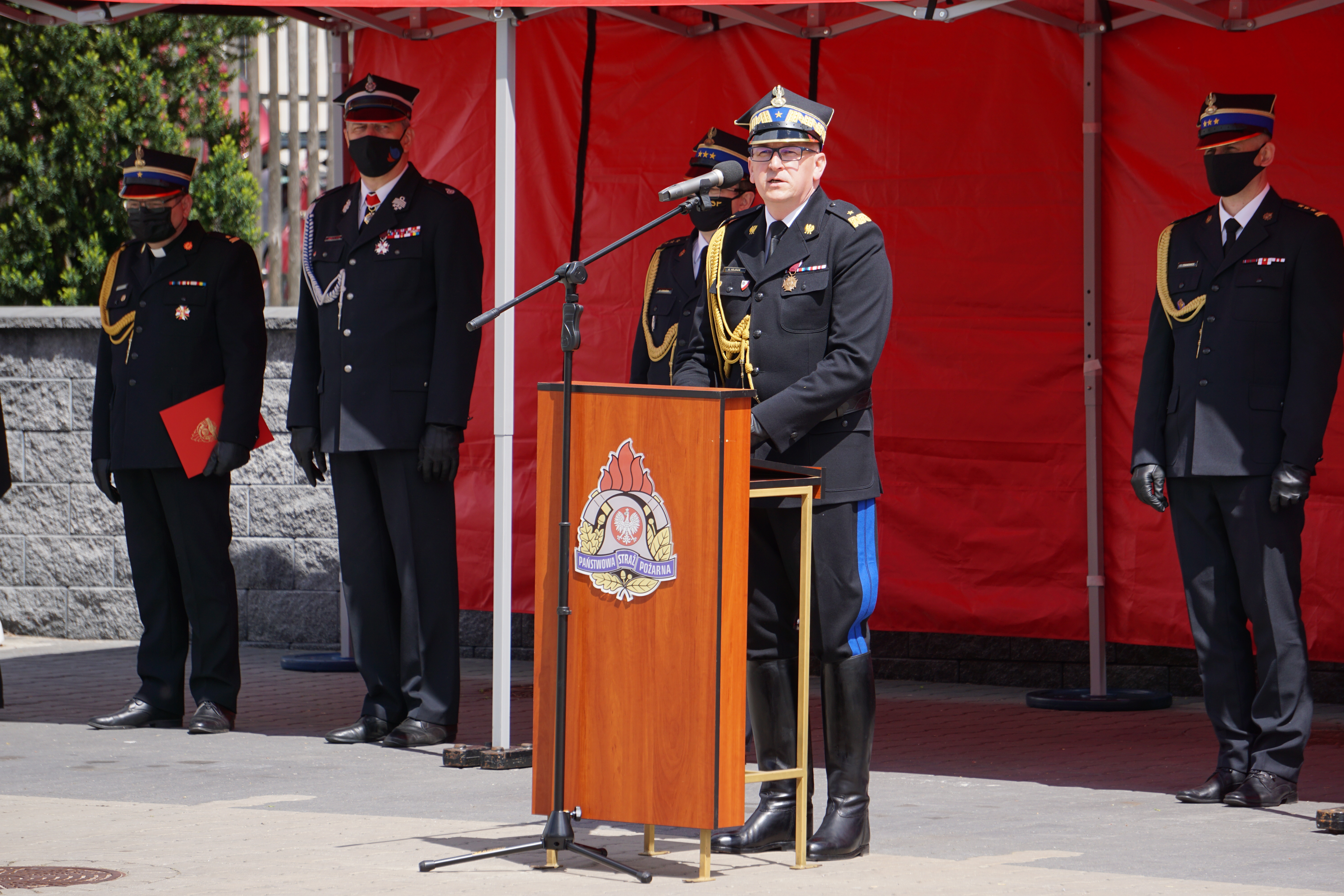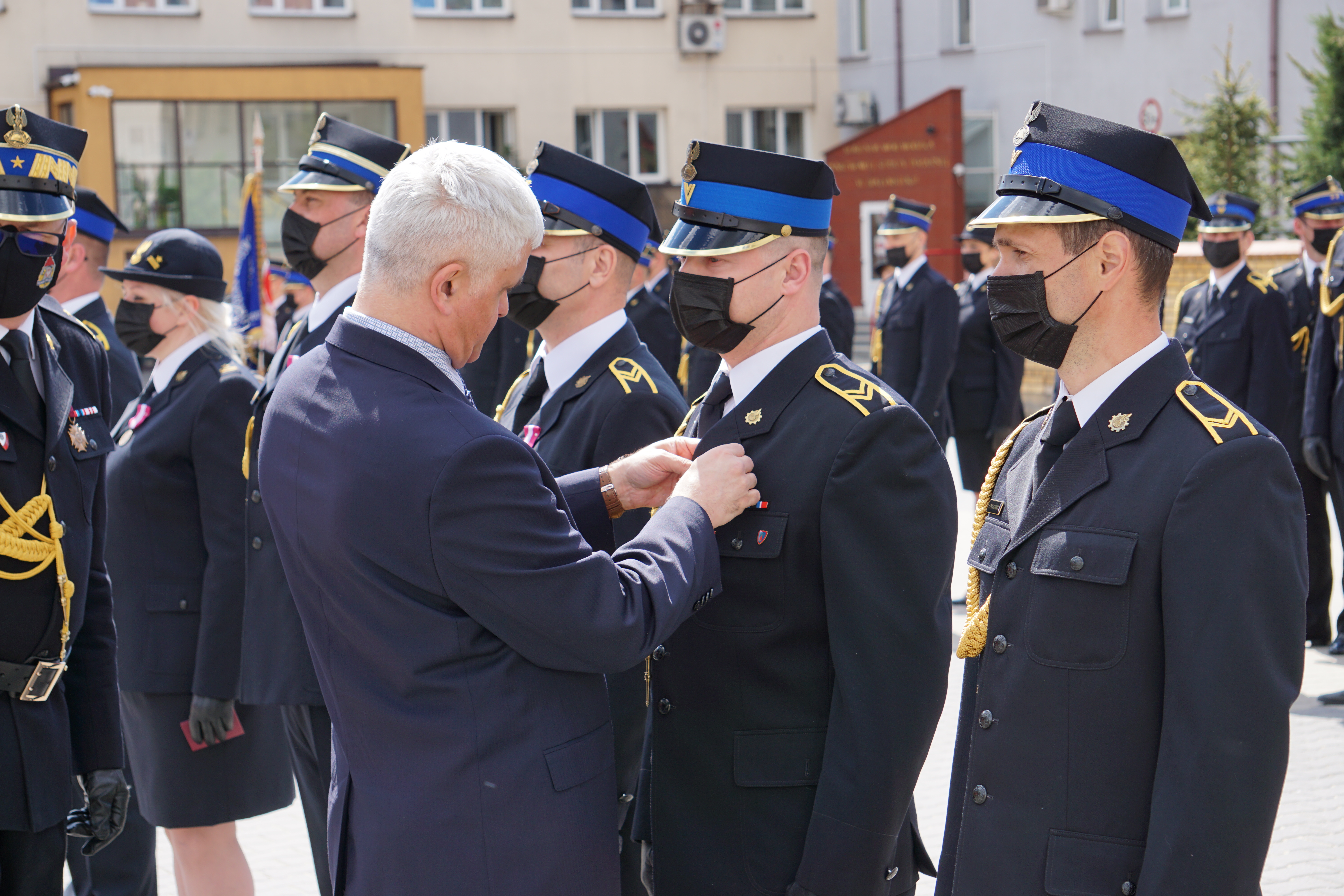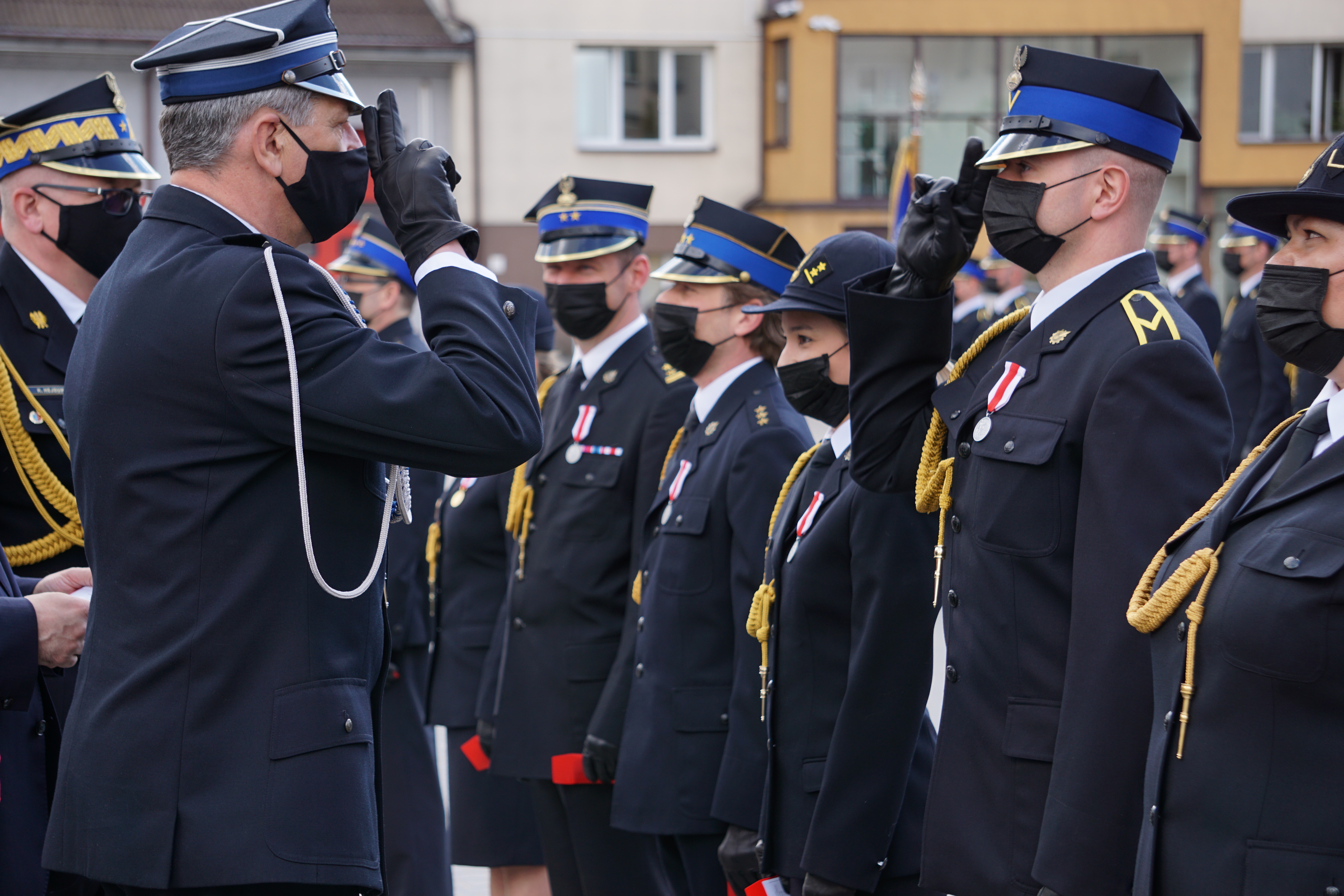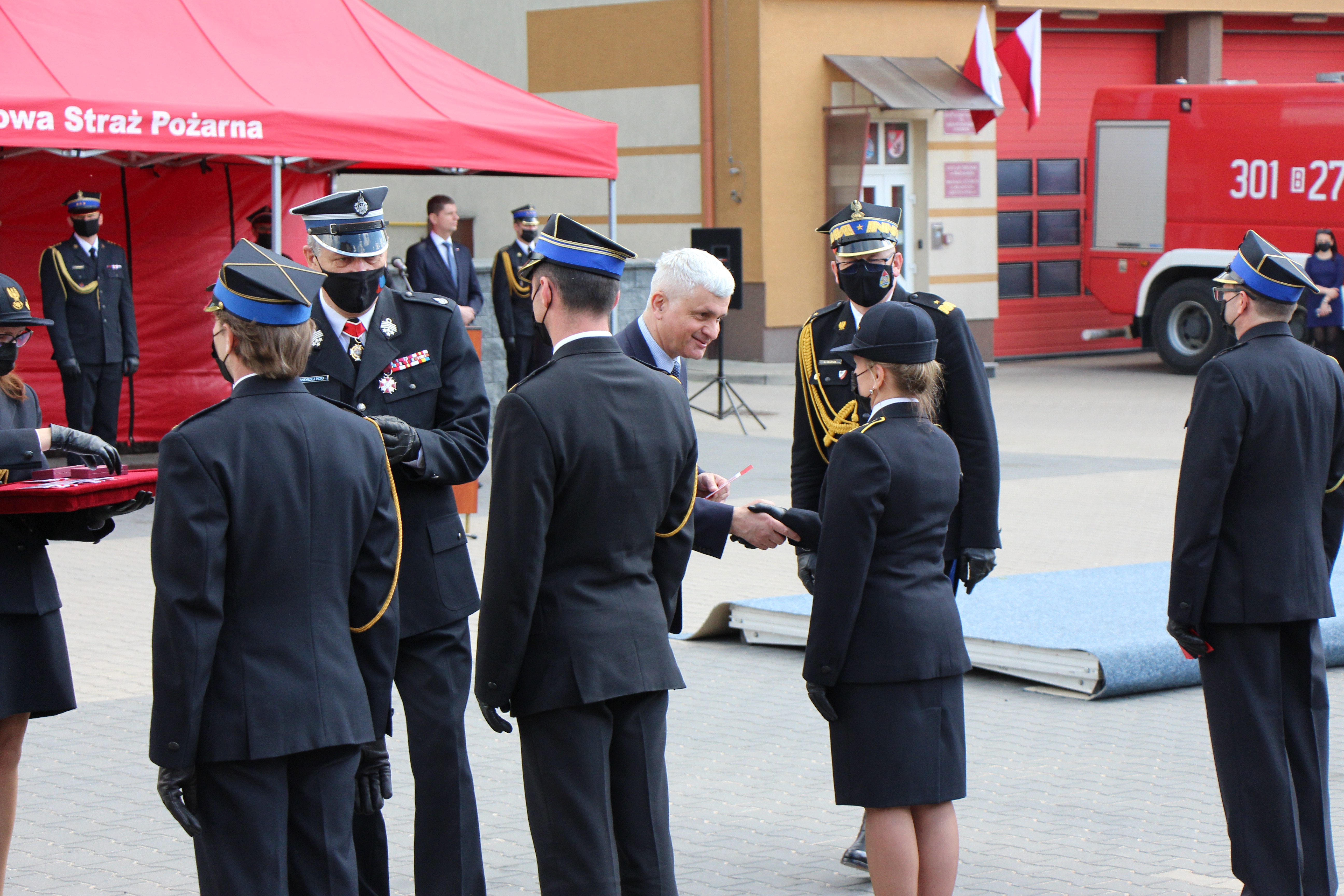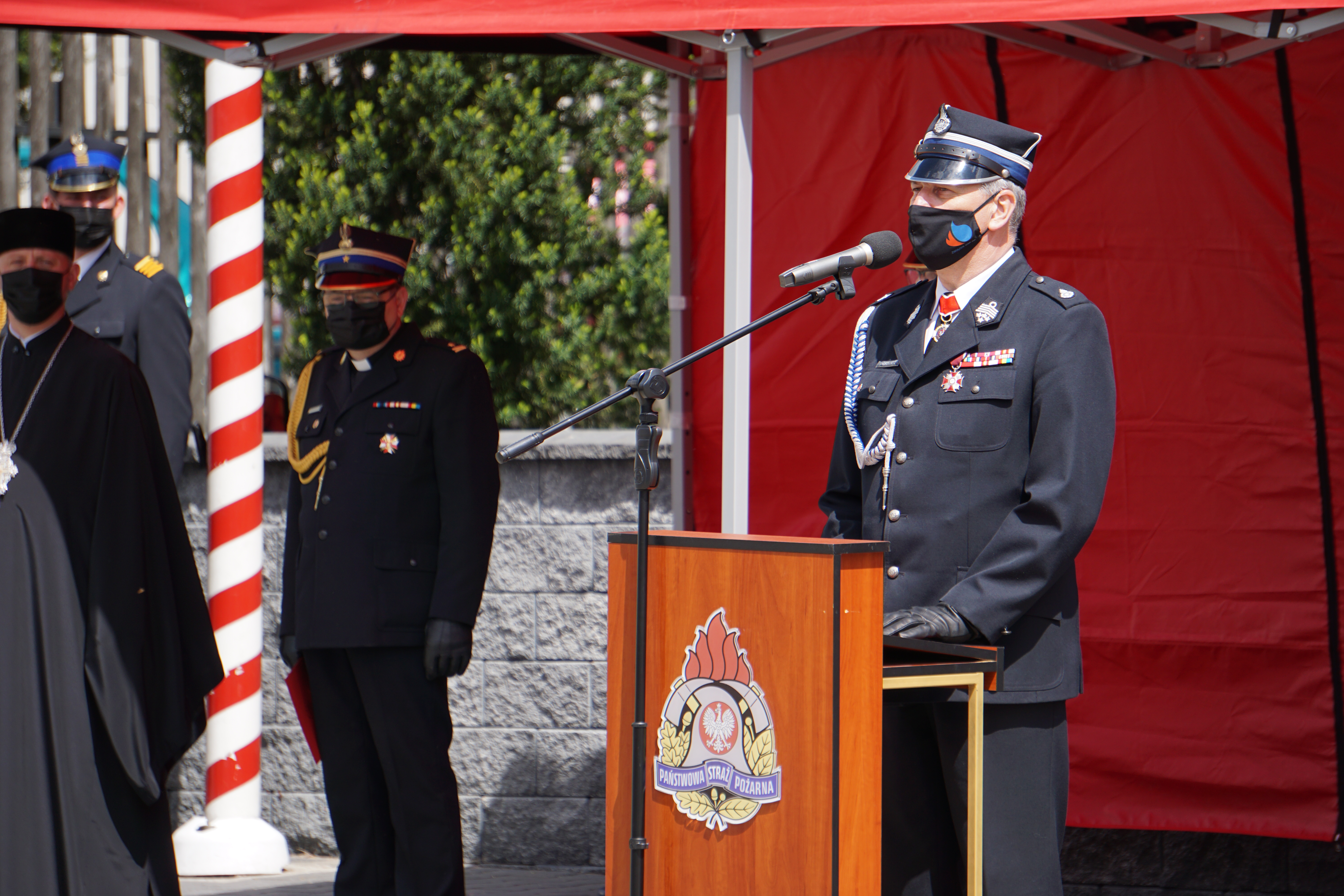 Obchody dnia Świętego Floriana – patrona strażaków - były wyjątkowe. Po raz pierwszy z uwagi na obostrzenia związane z trwającą pandemią odbyła się promocja na pierwszy stopień oficerski. W imieniu Ministra Spraw Wewnętrznych i Administracji aktu nadania stopnia młodszego kapitana 14 strażakom dokonał Zastępca Komendanta Głównego PSP, nadbryg. Krzysztof Hejduk.
