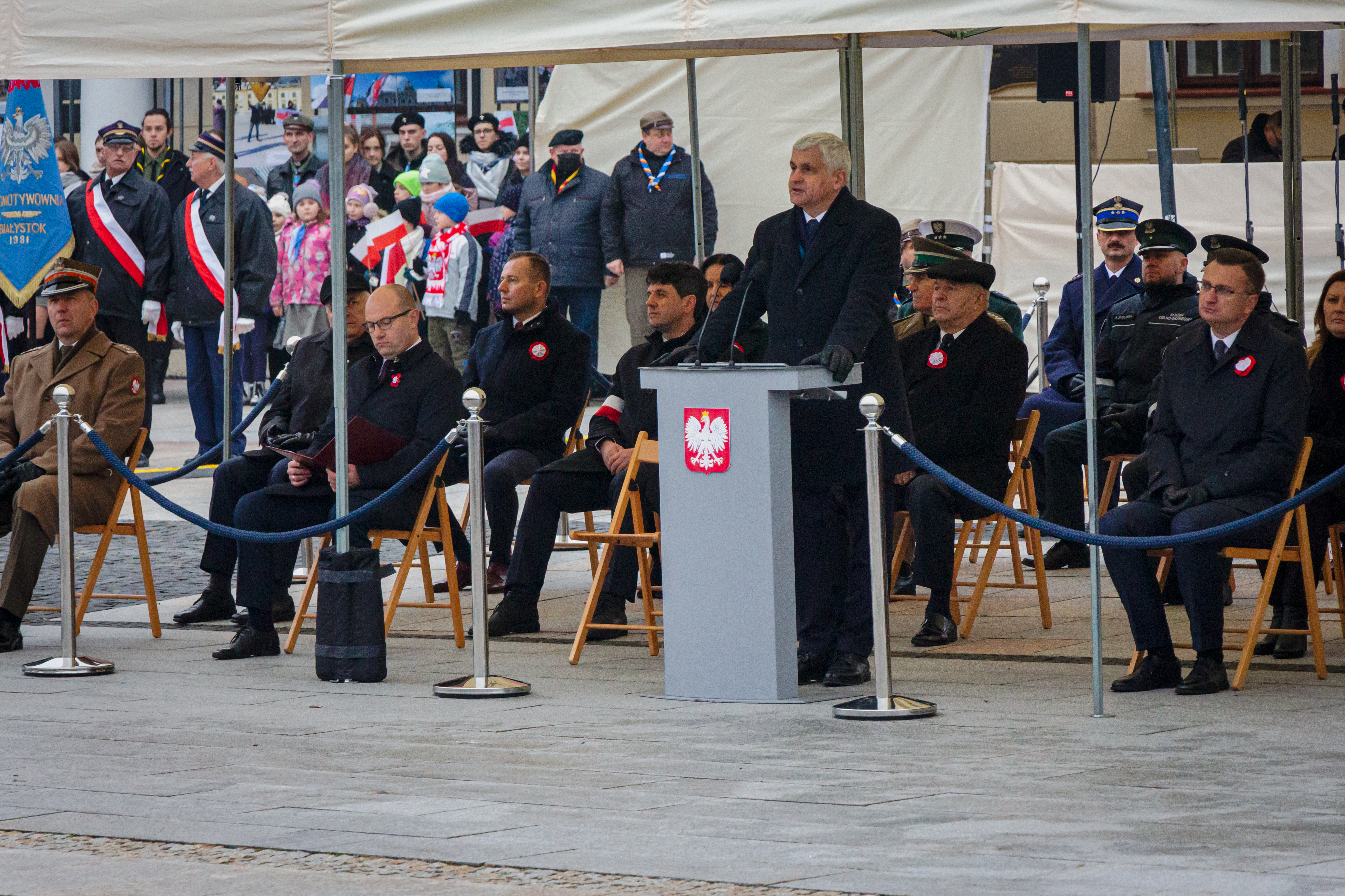 Główne obchody Narodowego Świąta Niepodległości 11 listopada poprzedziły nabożeństwa w cerkwi pw. św. Mikołaja i białostockiej archikatedrze. Na placu przed pomnikiem Marszałka Józefa Piłsudskiego zgromadzili się mieszkańcy, przedstawiciele władz państwowych, samorządowych, służby mundurowe, poczty sztandarowe, kombatanci i harcerze.