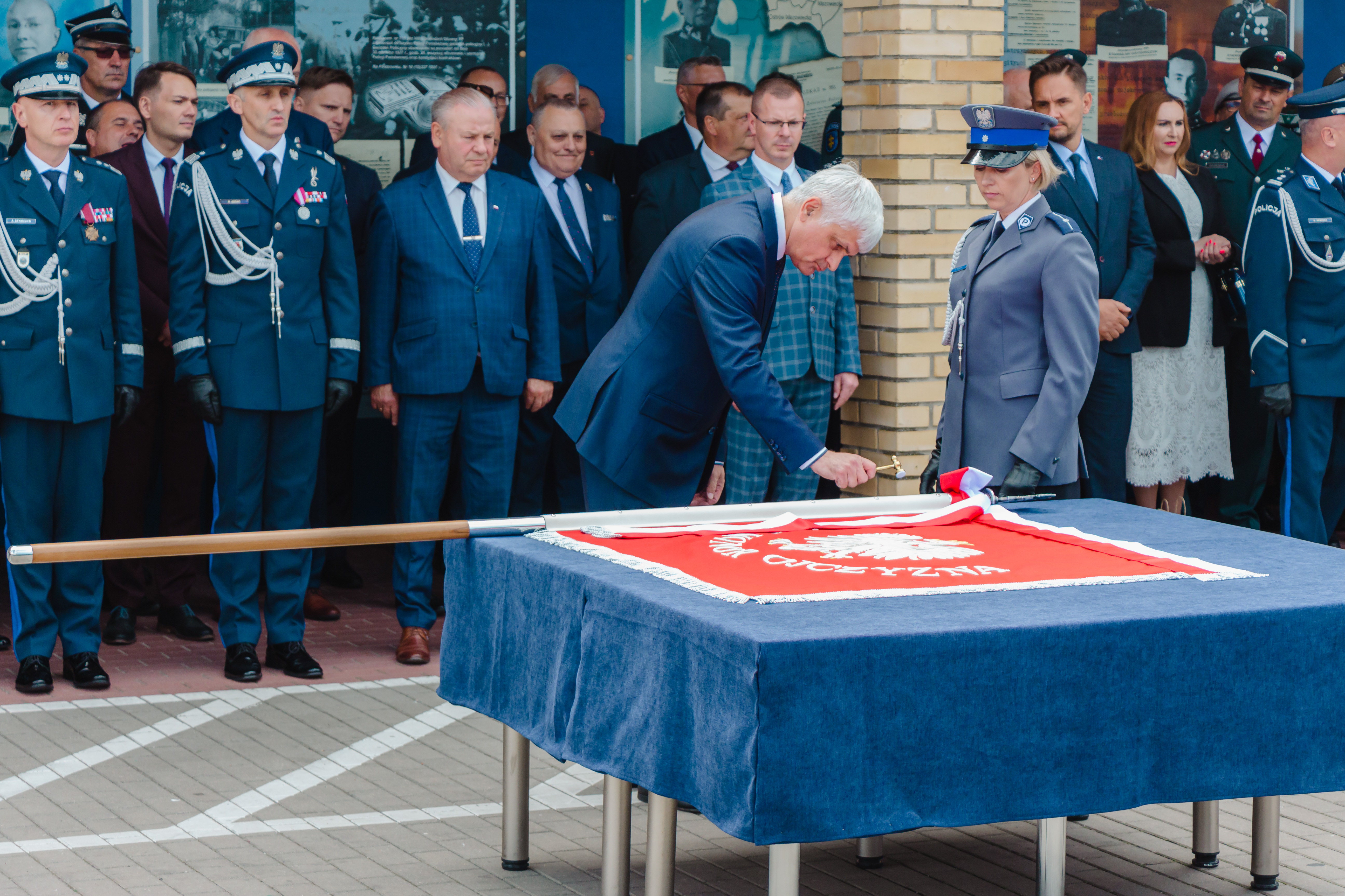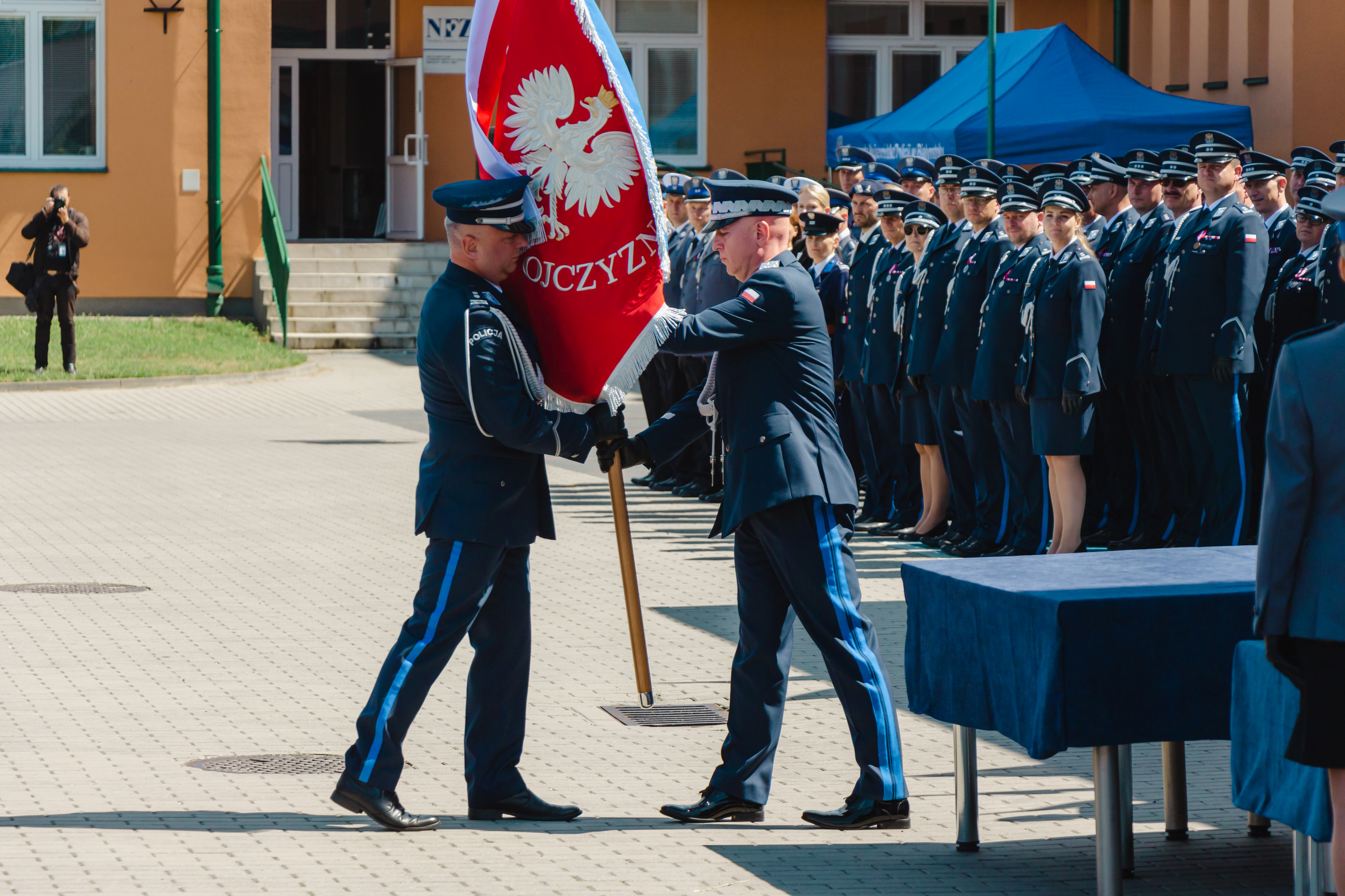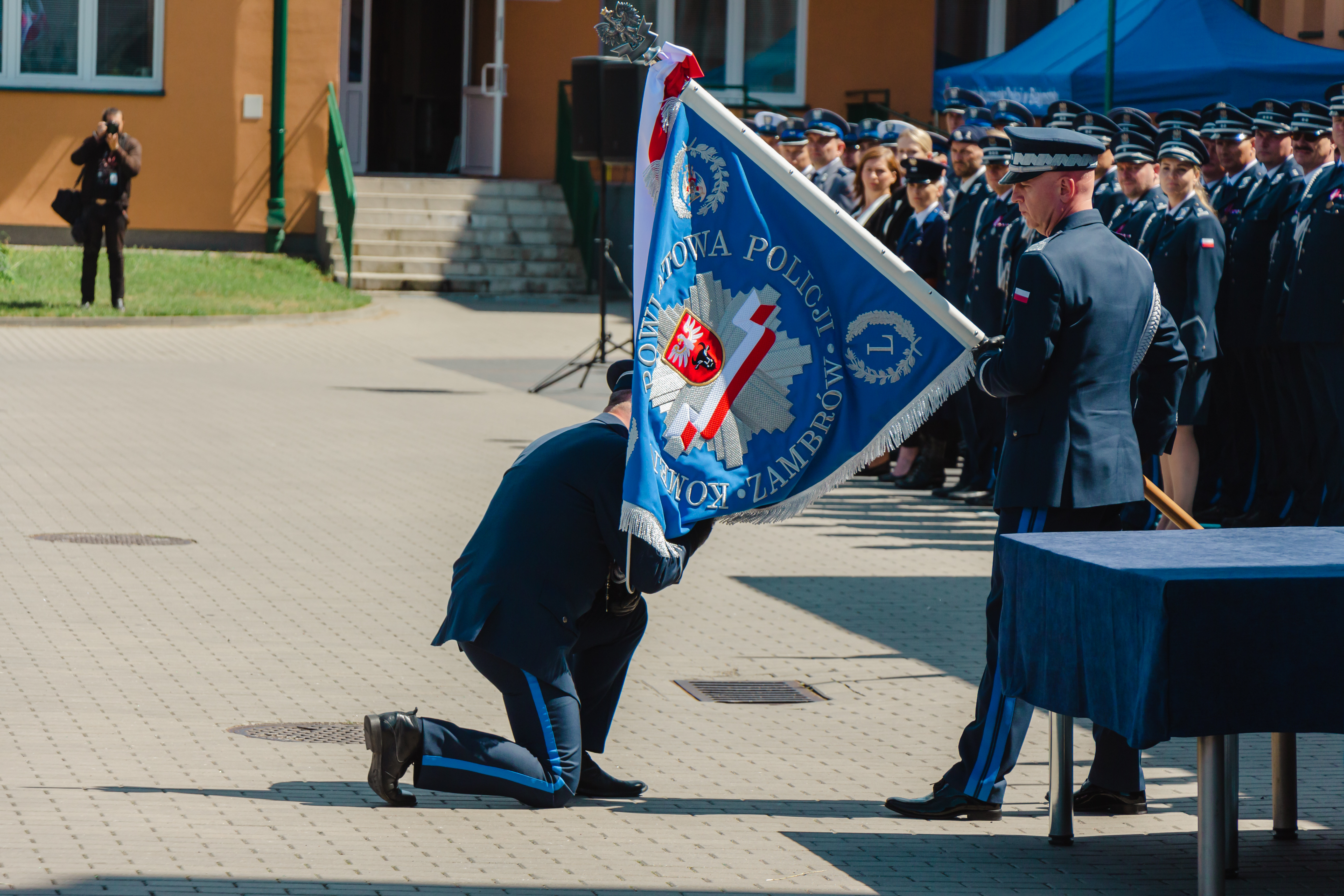 Zambrowska komenda pozostawała ostatnią jednostką w regionie bez własnego sztandaru. Wojewódzkie obchody Święta Policji - w tej formie po raz pierwszy od początku pandemii - były zatem właściwym momentem do jego przekazania. Dokonano tego podczas uroczystego apelu. Po odczytaniu aktu nadania, nastąpiło symboliczne wbicie gwoździ honorowych, a następnie wręczono go zambrowskiej komendzie.