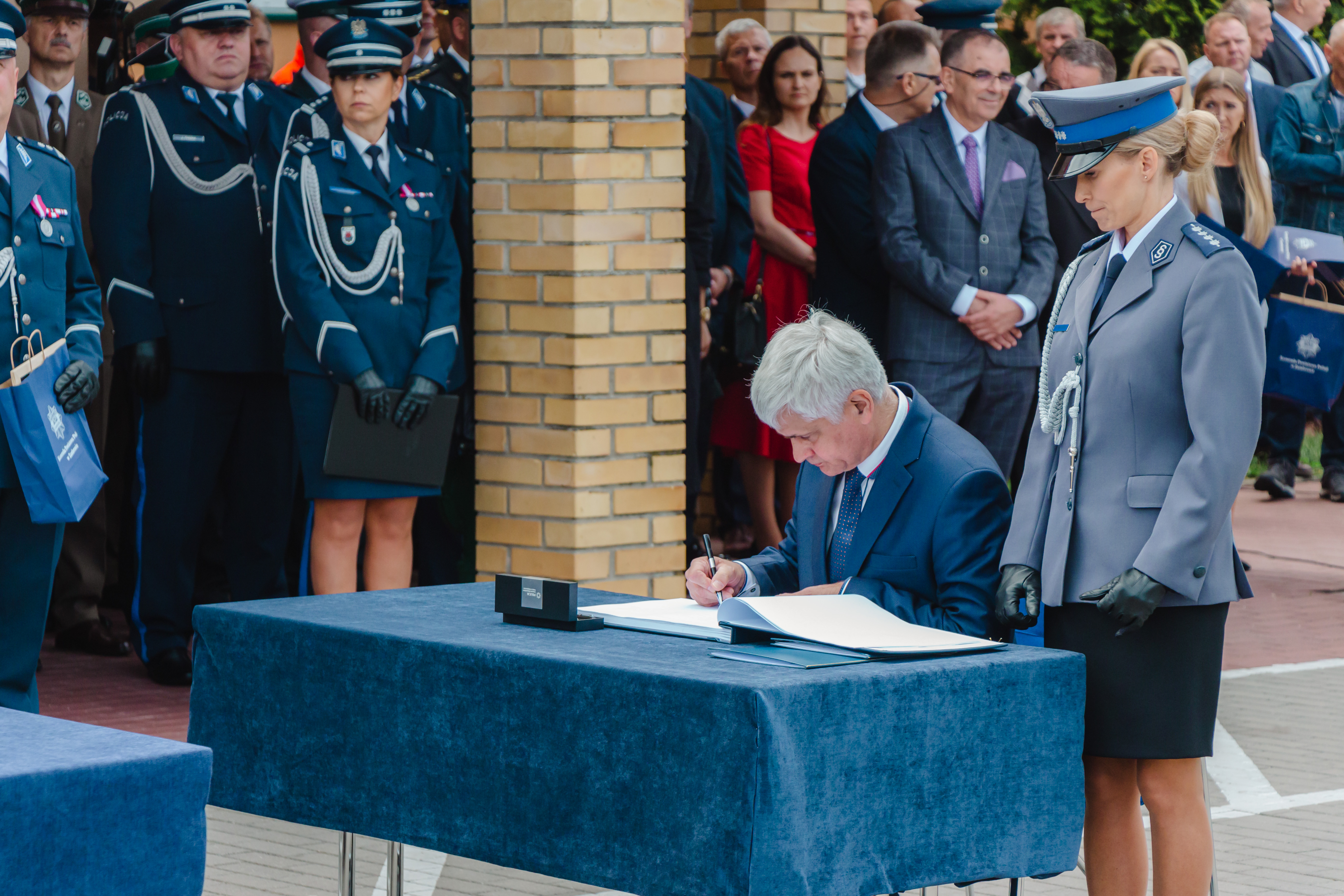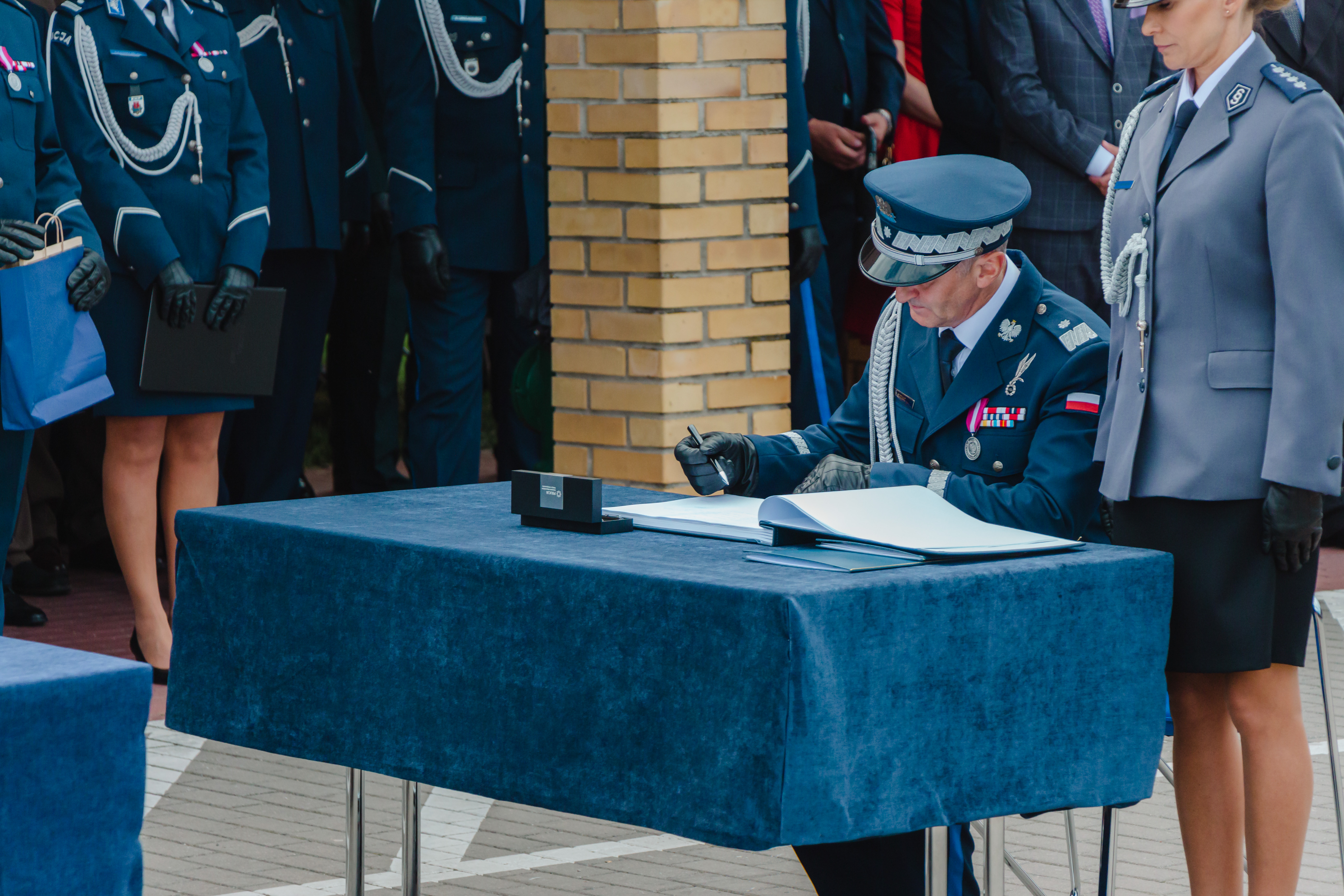 "Nadanie sztandaru Komendzie Powiatowej Policji w Zambrowie jest podsumowaniem dotychczasowych działań na rzecz bezpieczeństwa mieszkańców powiatu zambrowskiego. (...) To także jeden z najważniejszych momentów w życiu każdej komendy. Sztandar symbolizuje honor, męstwo, dumę i etos w policyjnej służbie. " - zaczął swój wpis w księdze pamiątkowej wojewoda podlaski Bohdan Paszkowski po tym, jak wbił gwoźdź honorowy.