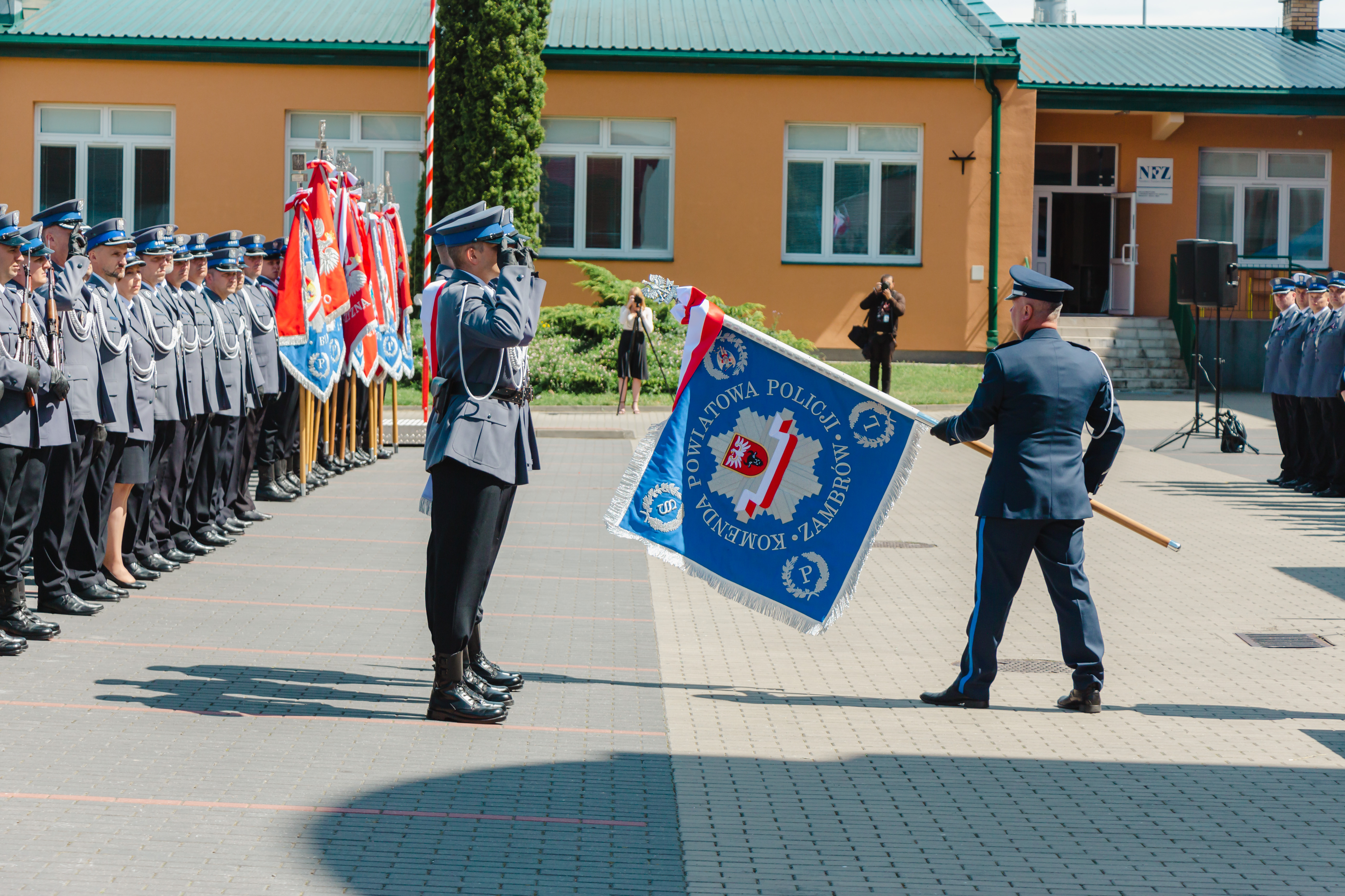 Głównym punktem niedzielnych (17.07) wojewódzkich obchodów Święta Policji była uroczystość wręczenia sztandaru Komendzie Powiatowej Policji w Zambrowie. "To uhonorowanie poświęcenia oraz zaangażowania w codzienną służbę i pracę wszystkich miejscowych funkcjonariuszy i pracowników Policji" - odnotował w księdze pamiątkowej sztandaru wojewoda podlaski Bohdan Paszkowski.